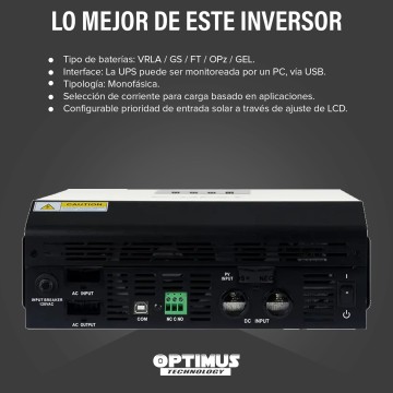 • Pantalla LCD que muestra estado, carga y parámetros del sistema