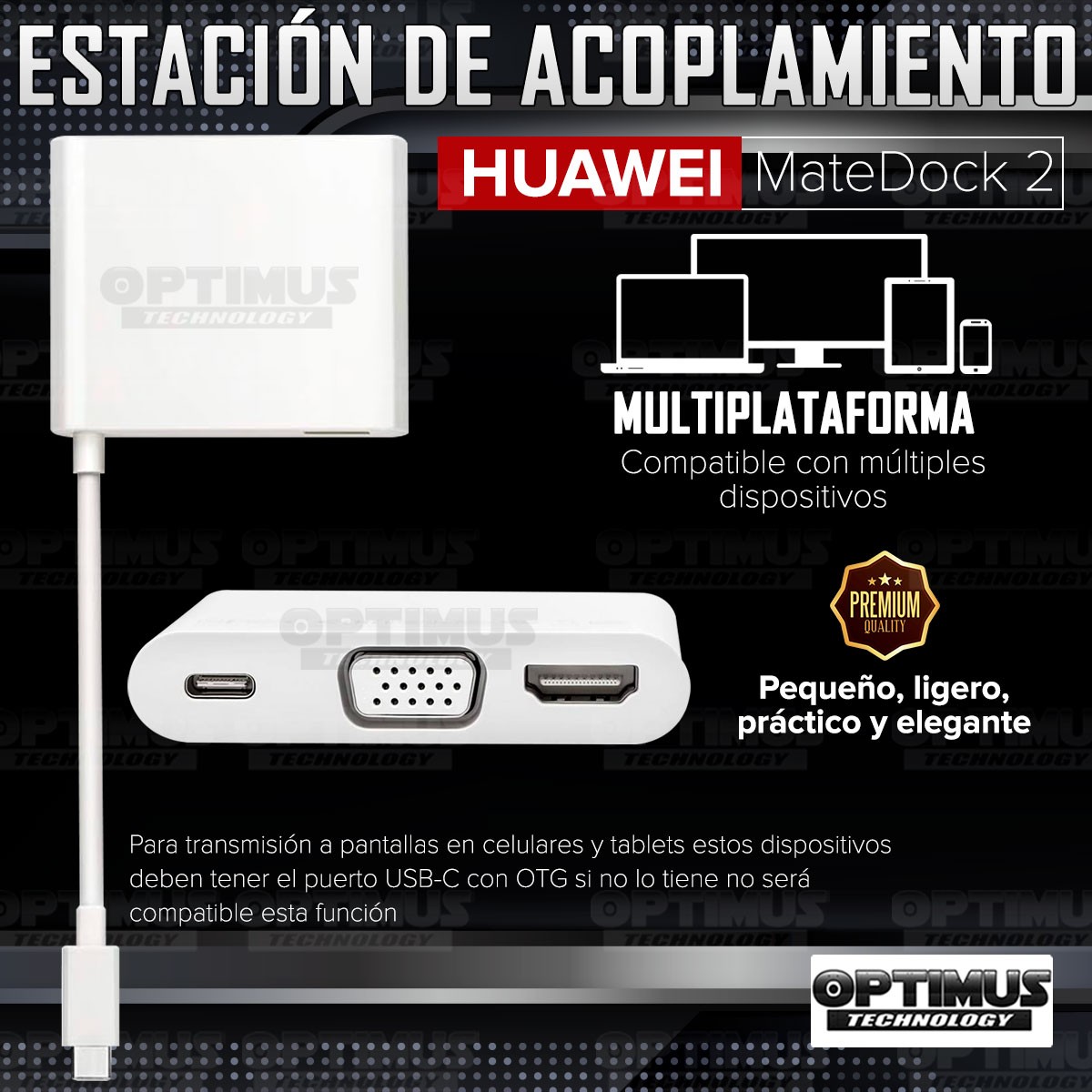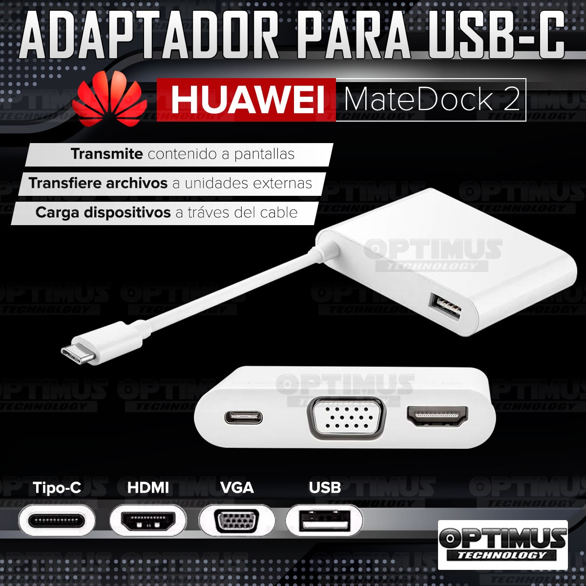 El Nuevo Huawei Matedock 2 de OPTIMUS™ es un adaptador de USB tipo-C que te permite transferir archivos a unidades externas o transmitir a pantallas desde tu celular o tablet!