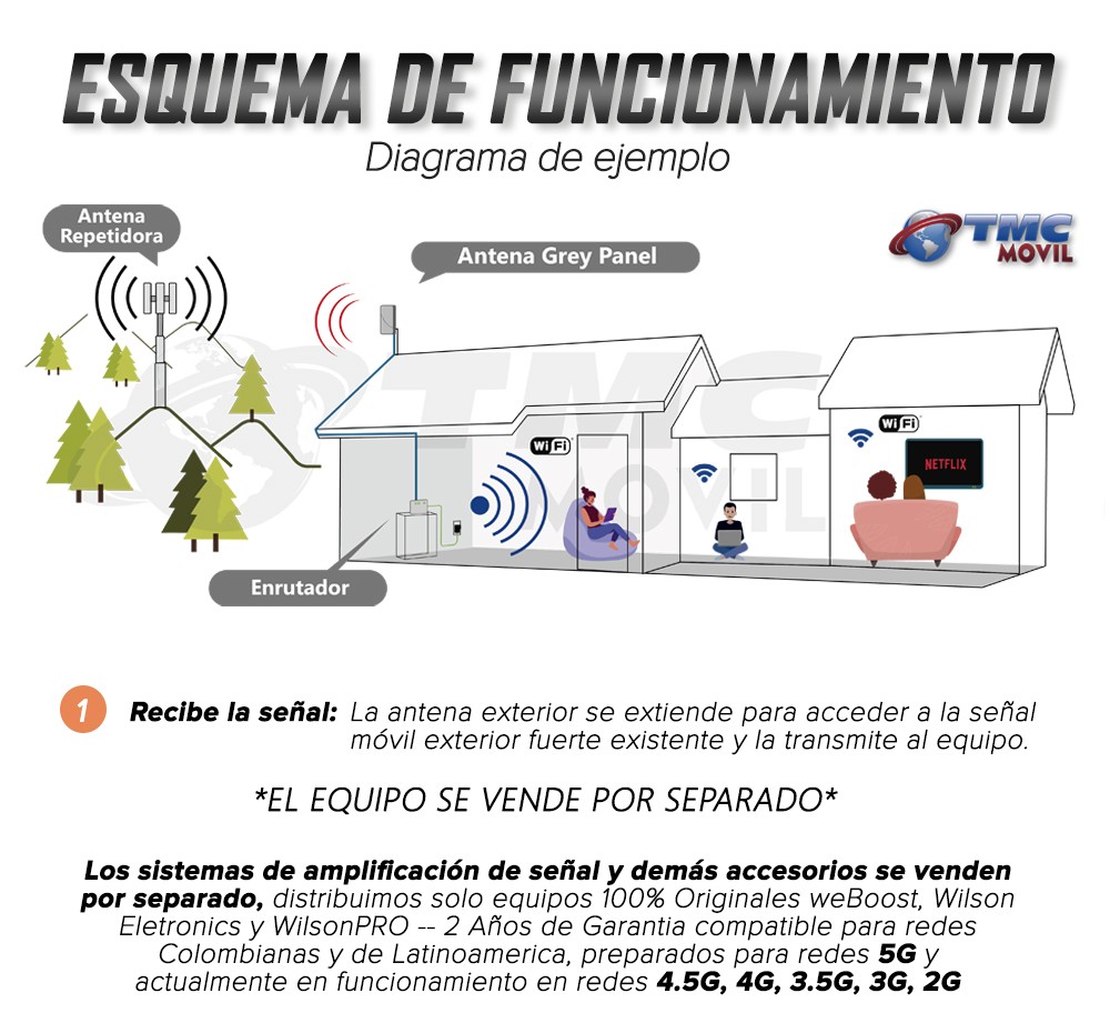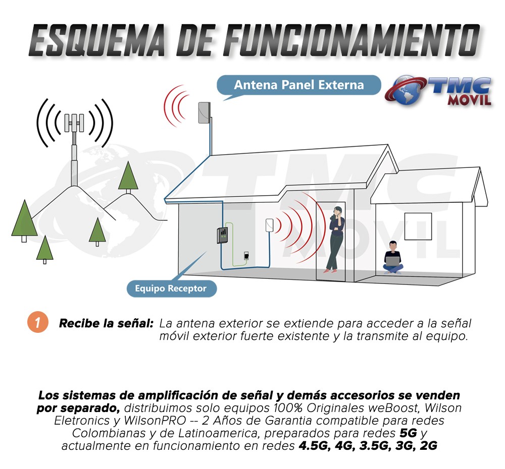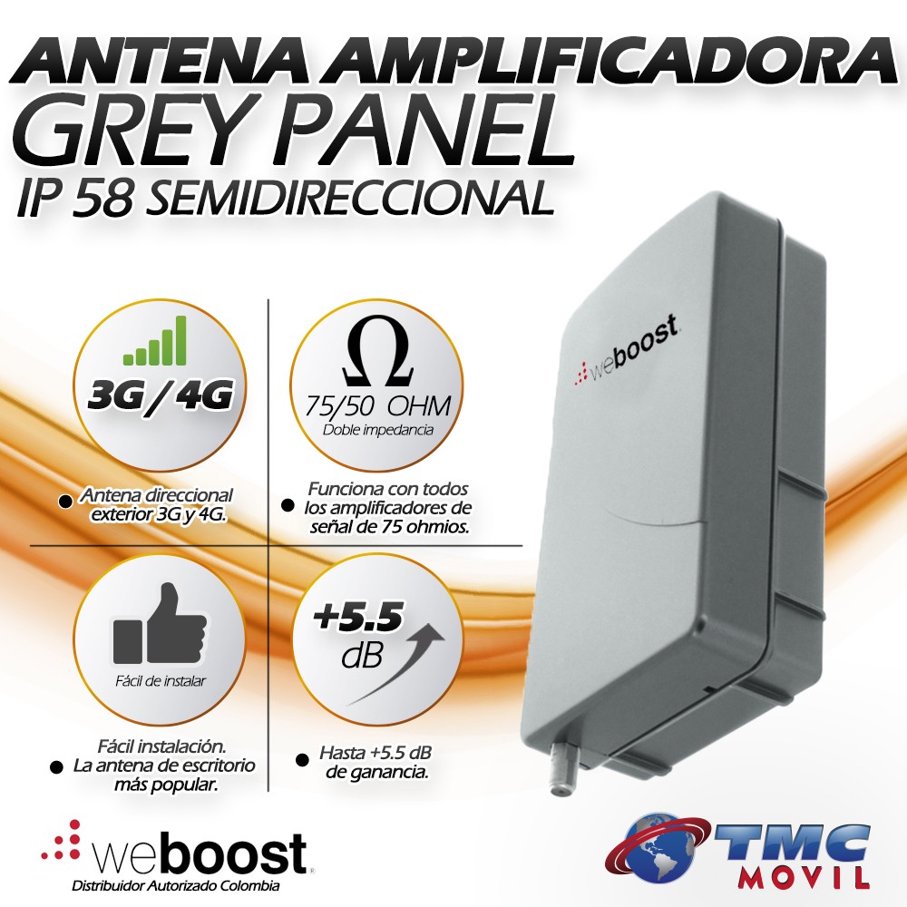 La compatibilidad de la Antena Grey Panel de WeBoost funcionará en las diferentes redes 2G,3G y 4G LTE con todos los operadores de Colombia y América Latina