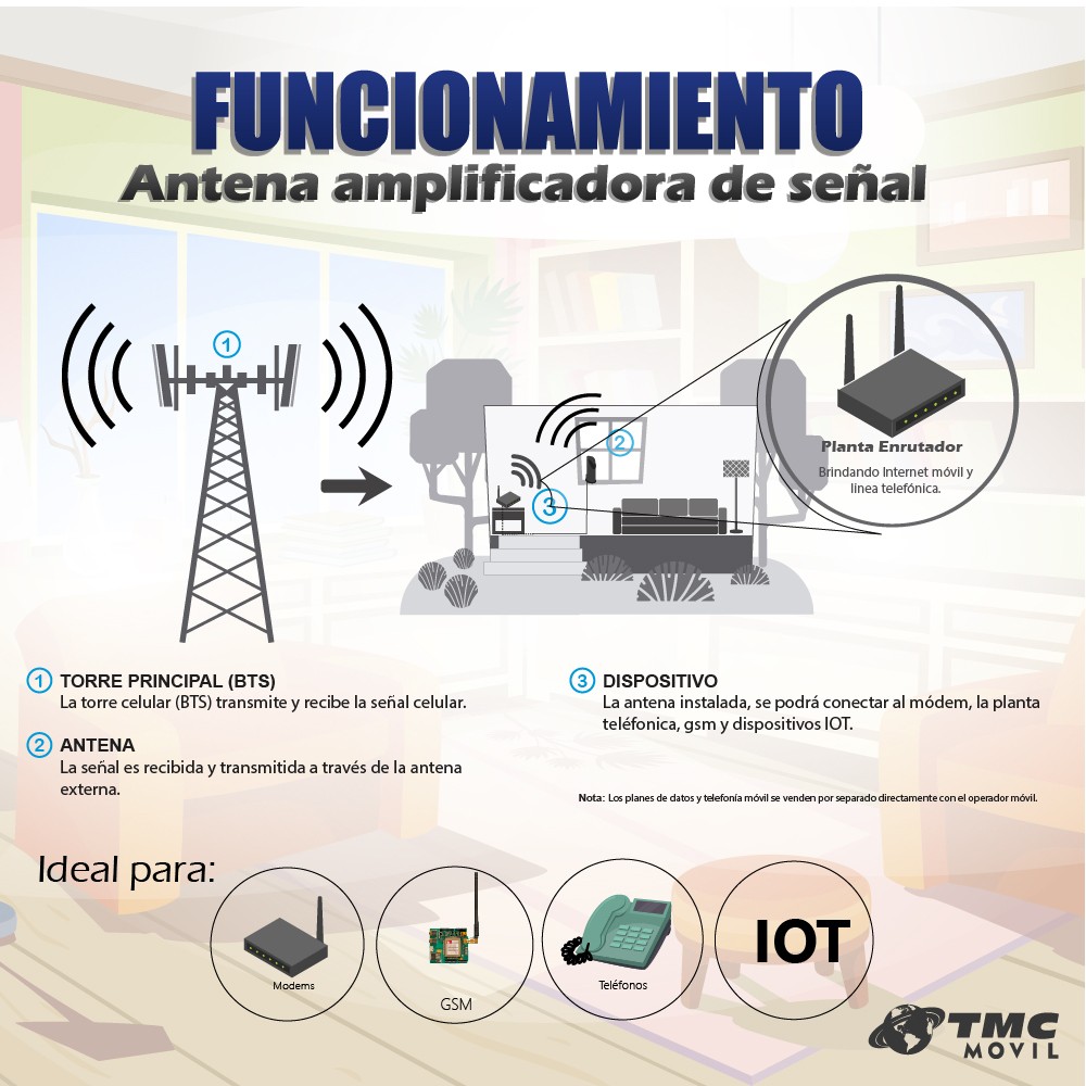 Antena amplificadora de señal 2G, 3G, 3.75, 4G, 4GLTE alámbrica para Enrutadores, Modems de internet y equipos de IOT