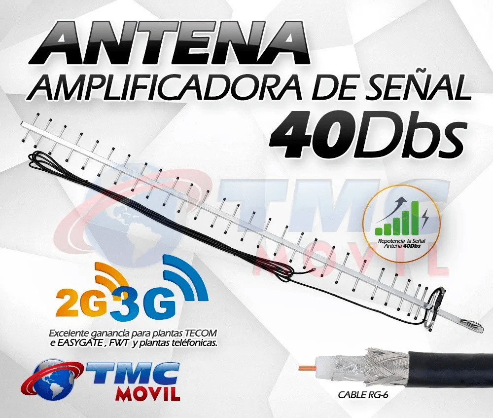 +40 dB de ganancia, para una mejor recepción de señal en plantas telefónicas, equipos de telemetría (…)