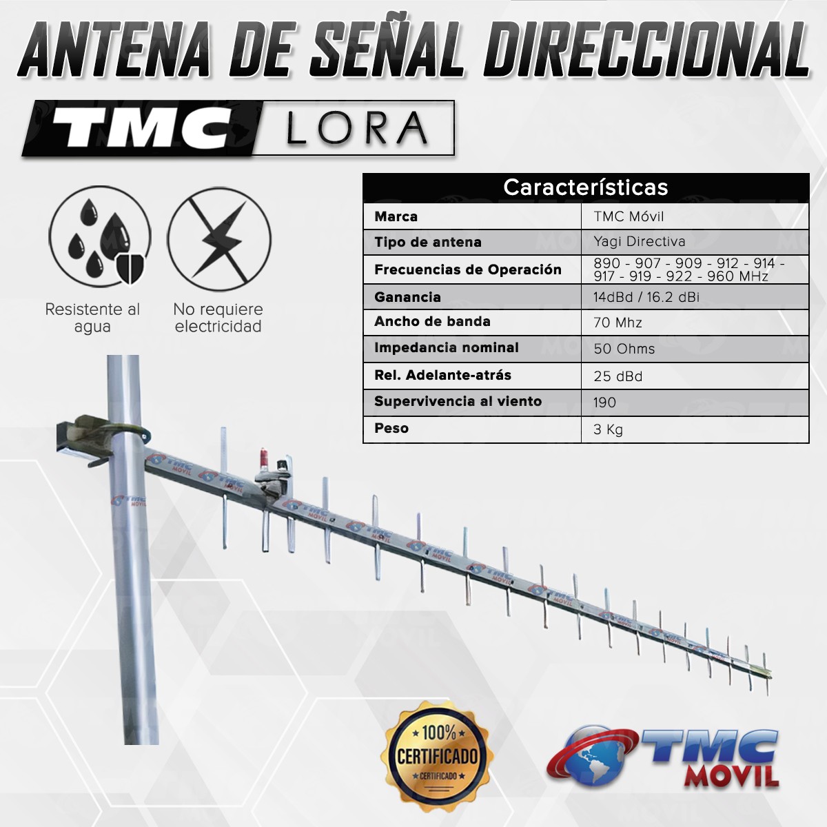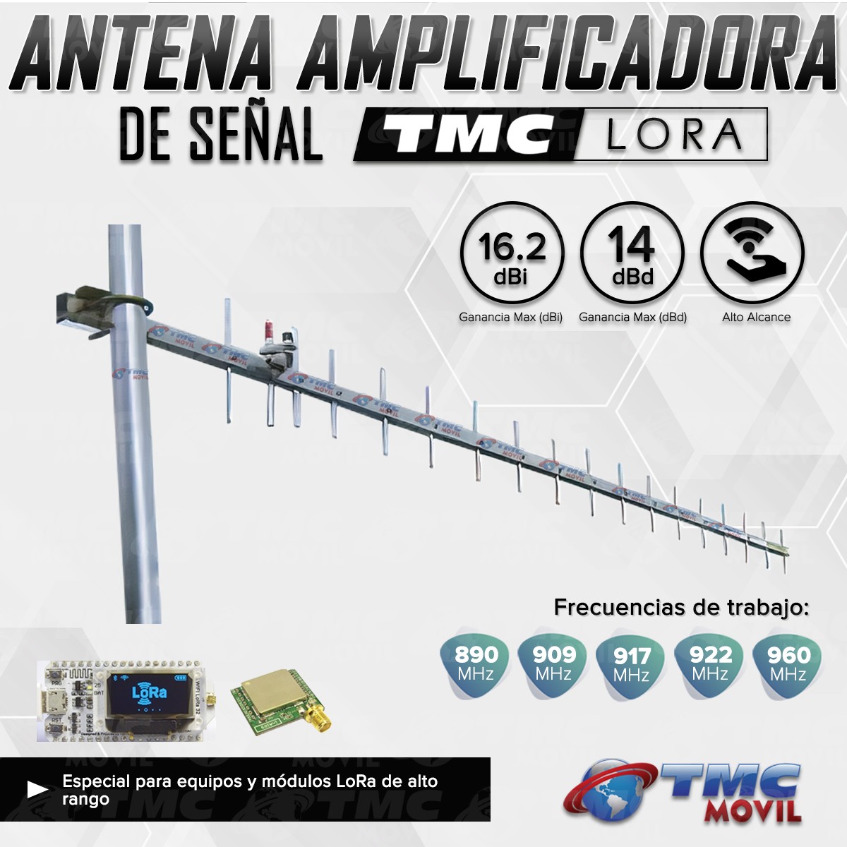 Antena Amplificadora de señal TMC 16.2dBi LORA™ para aumentar la señal (Sin cable)