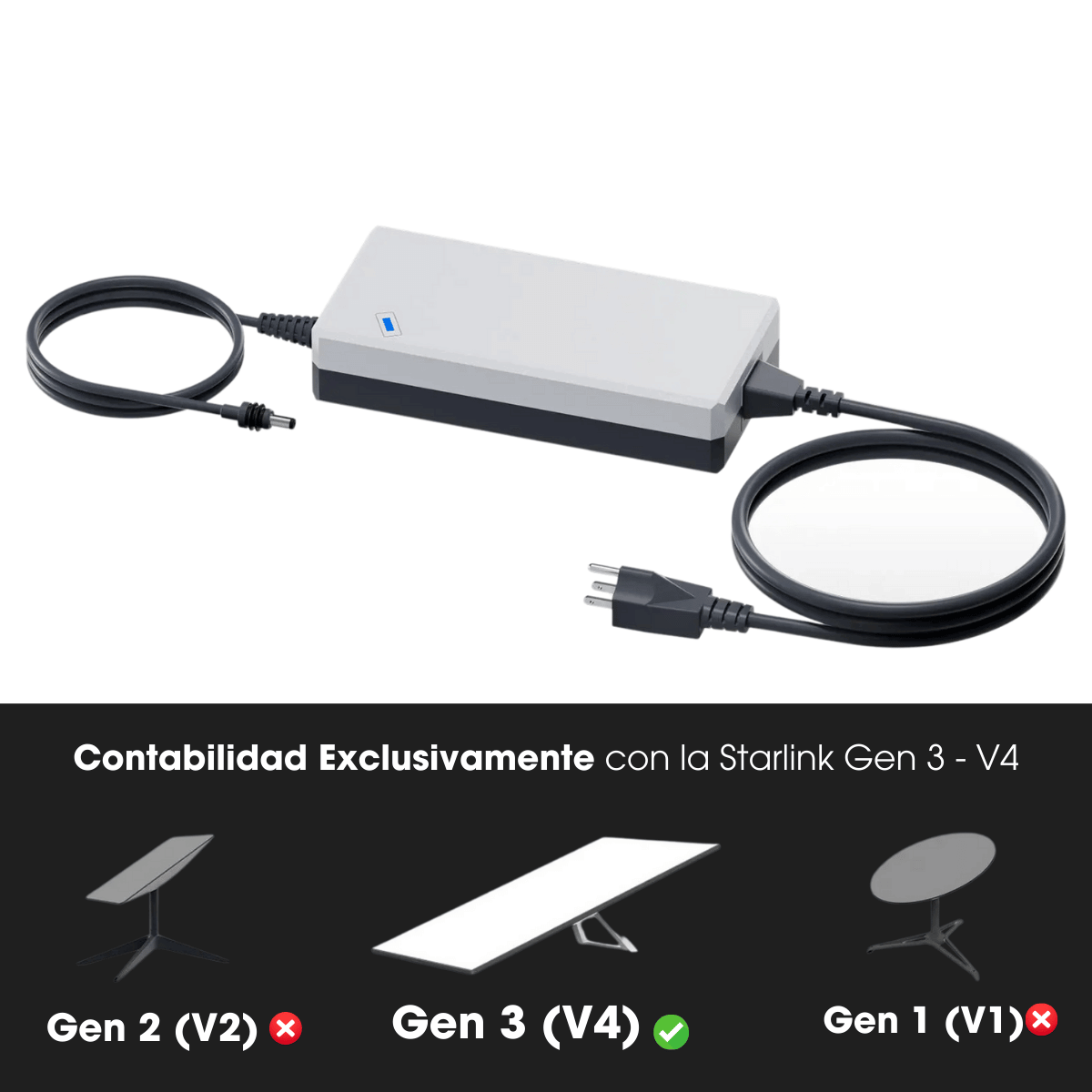 • Verifica la compatibilidad: Asegúrate de que tu sistema Starlink es 月 de tercera generación (Gen 3) antes de adquirir este cargador, ya que no es compatible con otros modelos como Starlink Mini o generaciones anteriores.