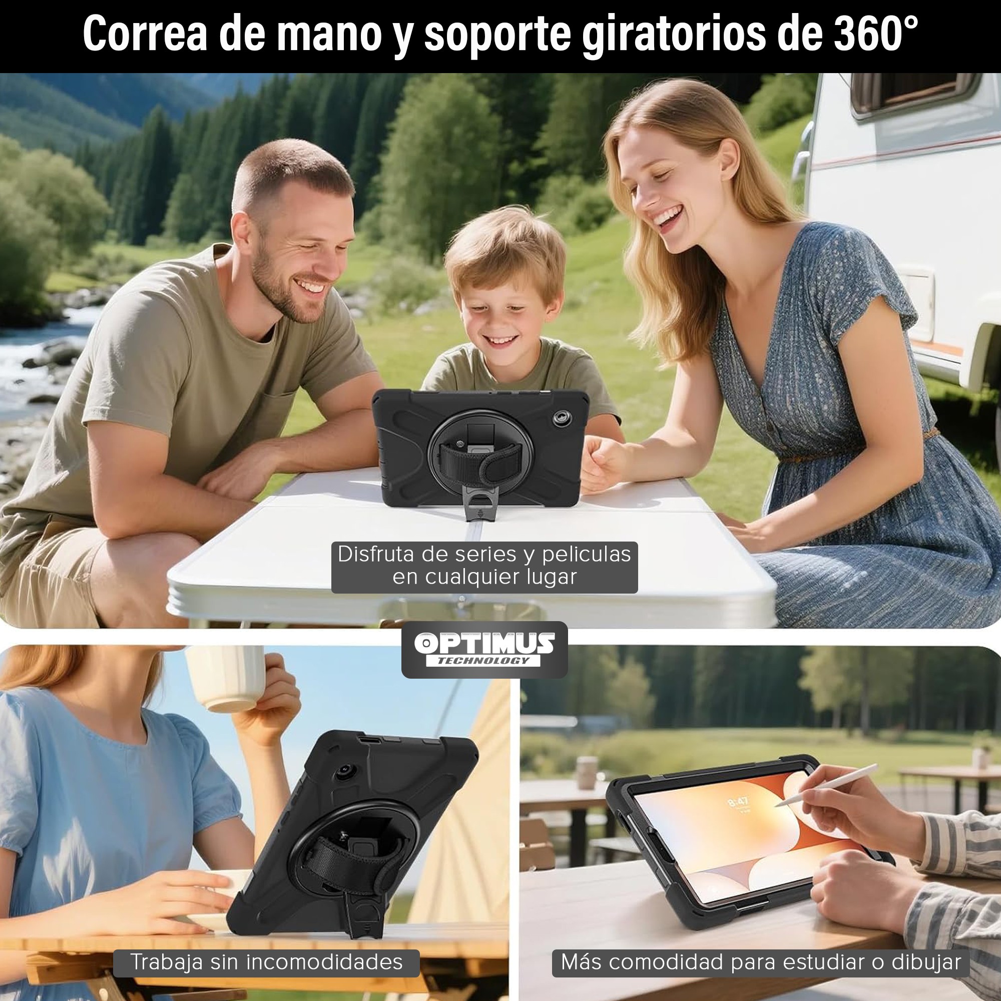 – Soporte giratorio 360°: permite ver contenido en vertical u horizontal.