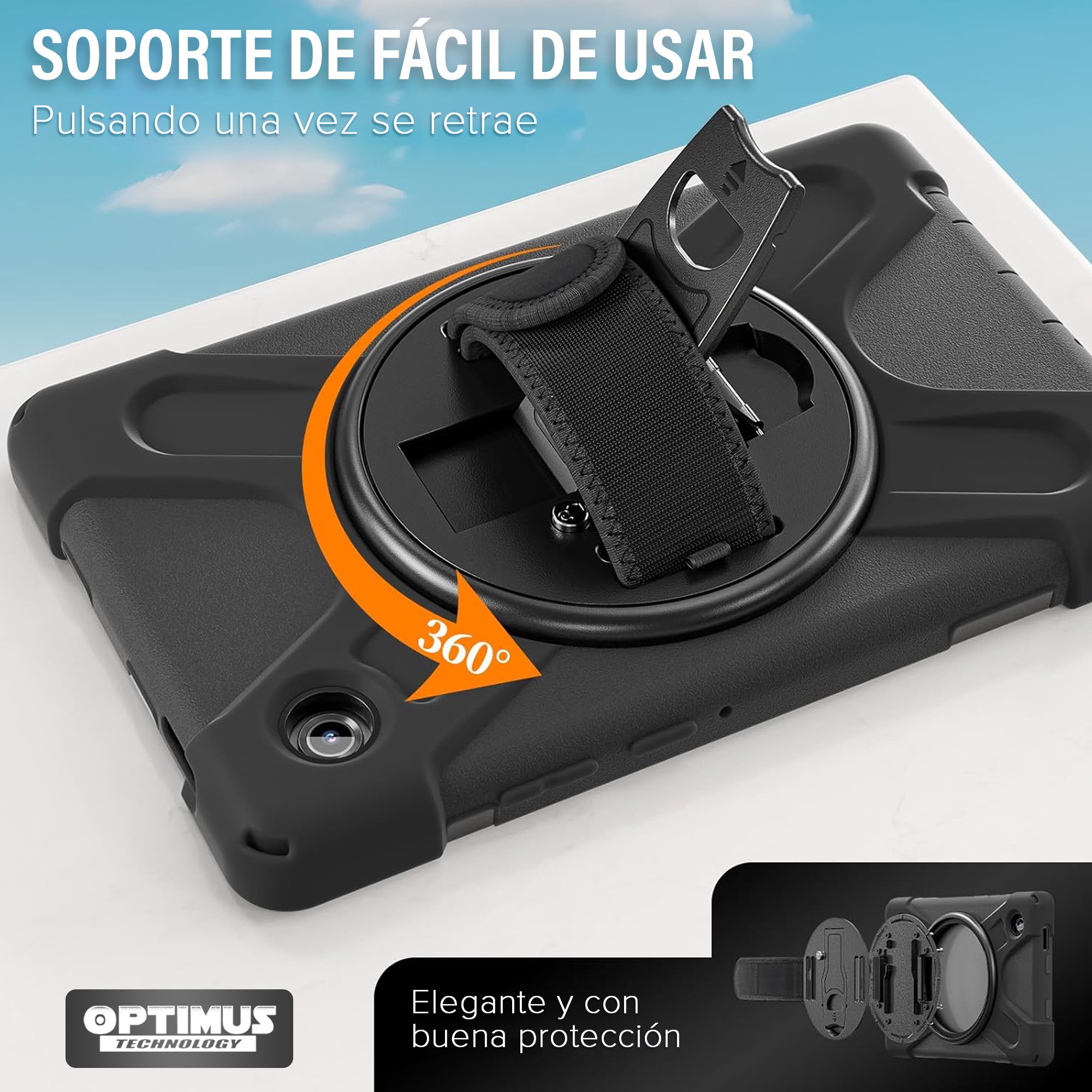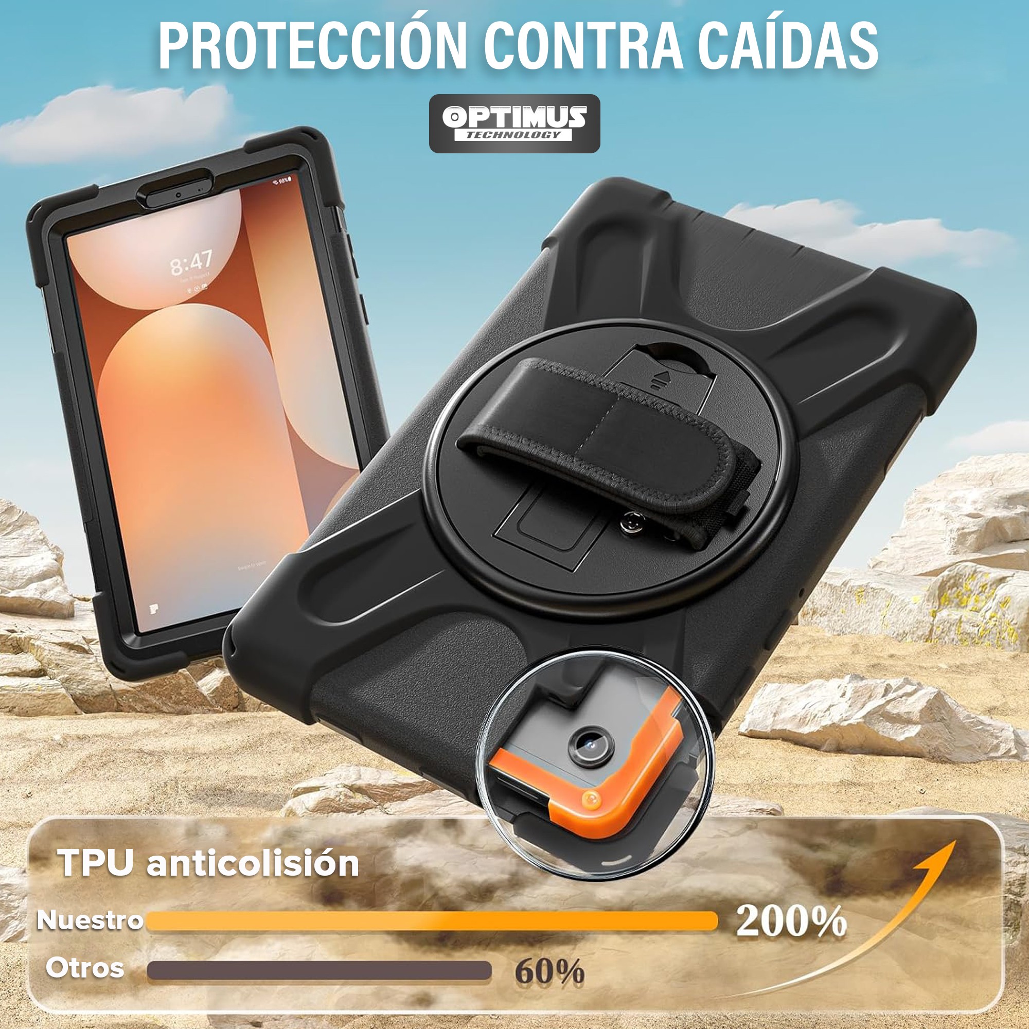 Protege tu Samsung Galaxy Tab A11 8.7” (2025) con este Estuche Antishock Premium, diseñado para brindar resistencia extrema, agarre firme y soporte giratorio 360°.