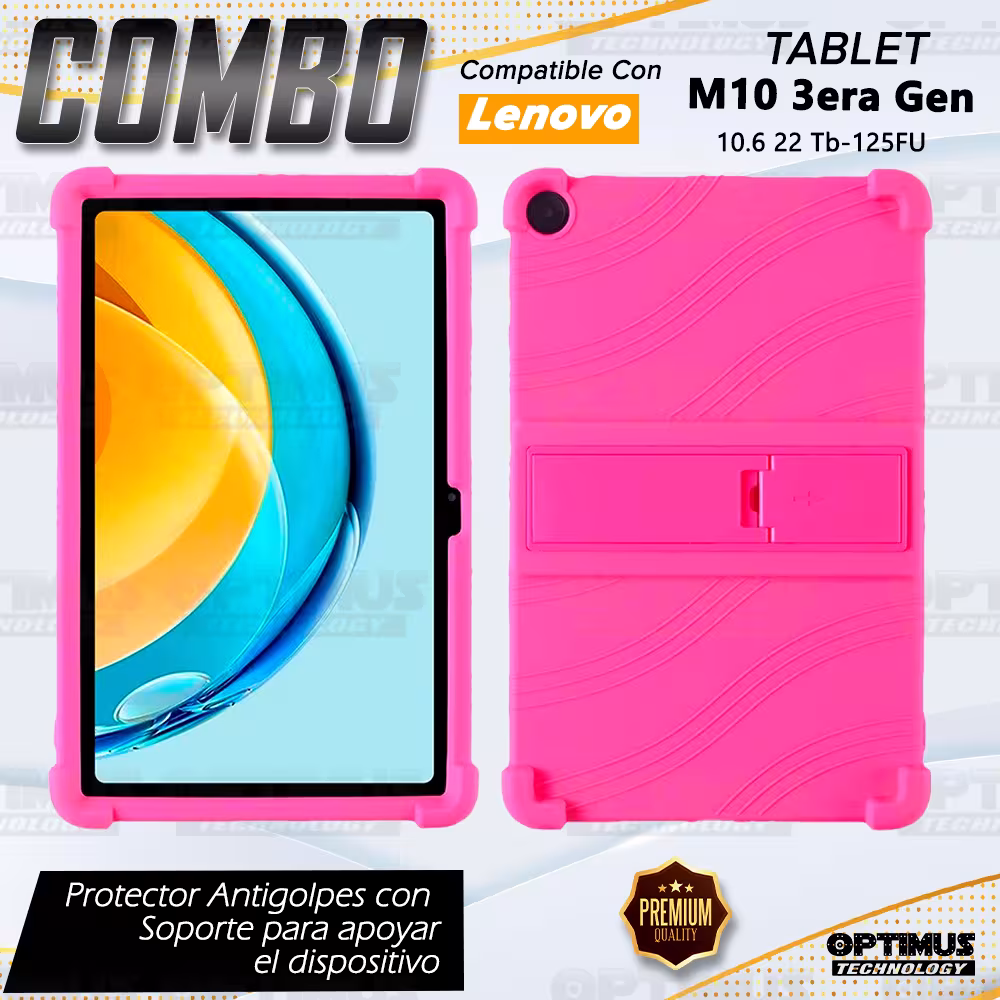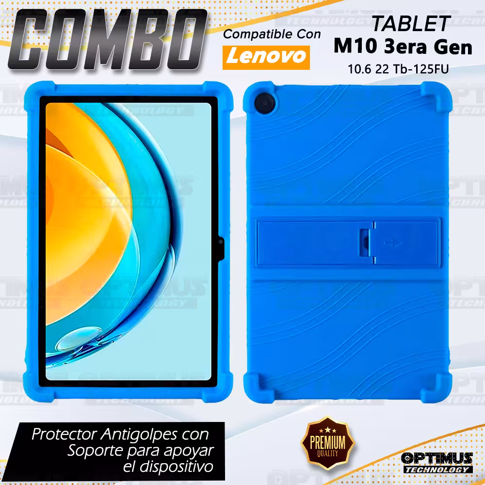Estuche Case protector de goma Tablet Lenovo M10 Plus 3era Gen 10.6 2022 TB-125FU / TB-128F Anti golpes con soporte