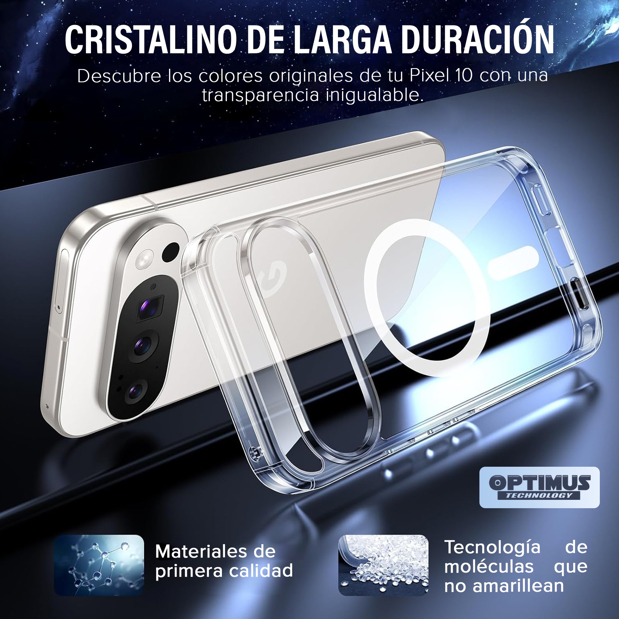 – Diseño transparente: muestra el color y estilo original del Pixel 10.