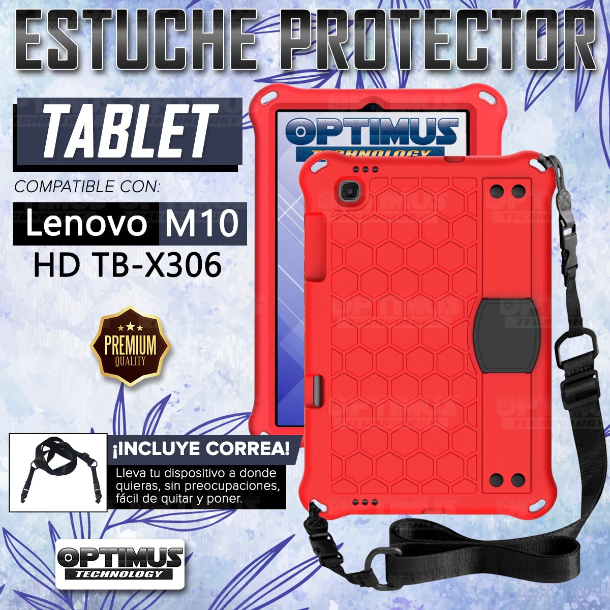 Estuche Protector con Correa Desmontable para Tablet Lenovo M10 HD TB-X306 Anti golpes con soporte