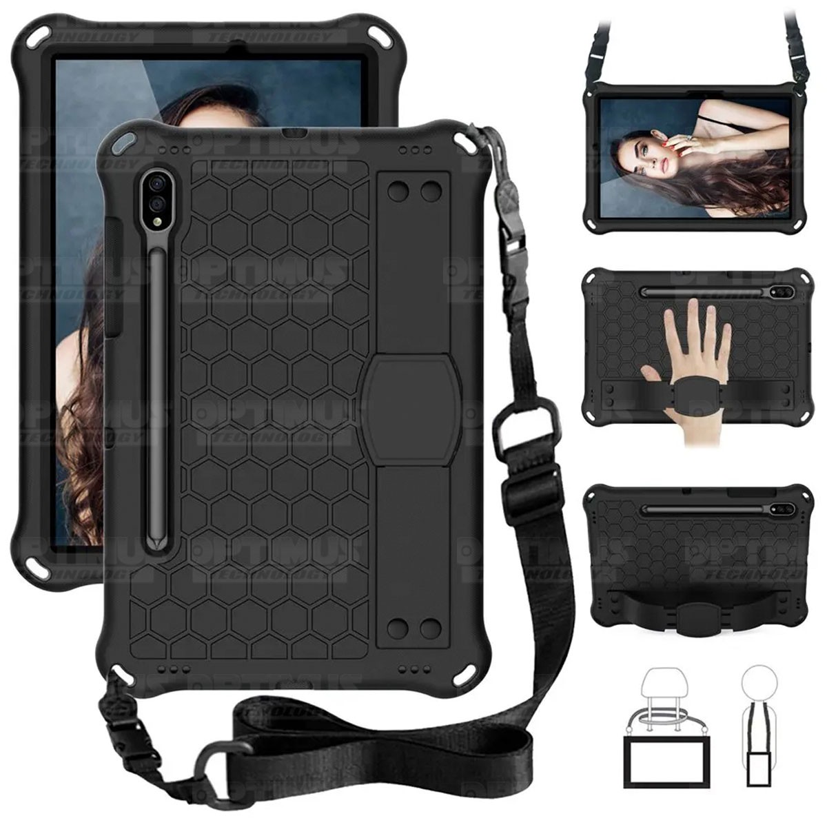 Estuche Protector con Correa Tablet Samsung Galaxy Tab S9 FE 10.9 Pulgadas 2023 SM-X510 SM-X516B Anti golpes con soporte