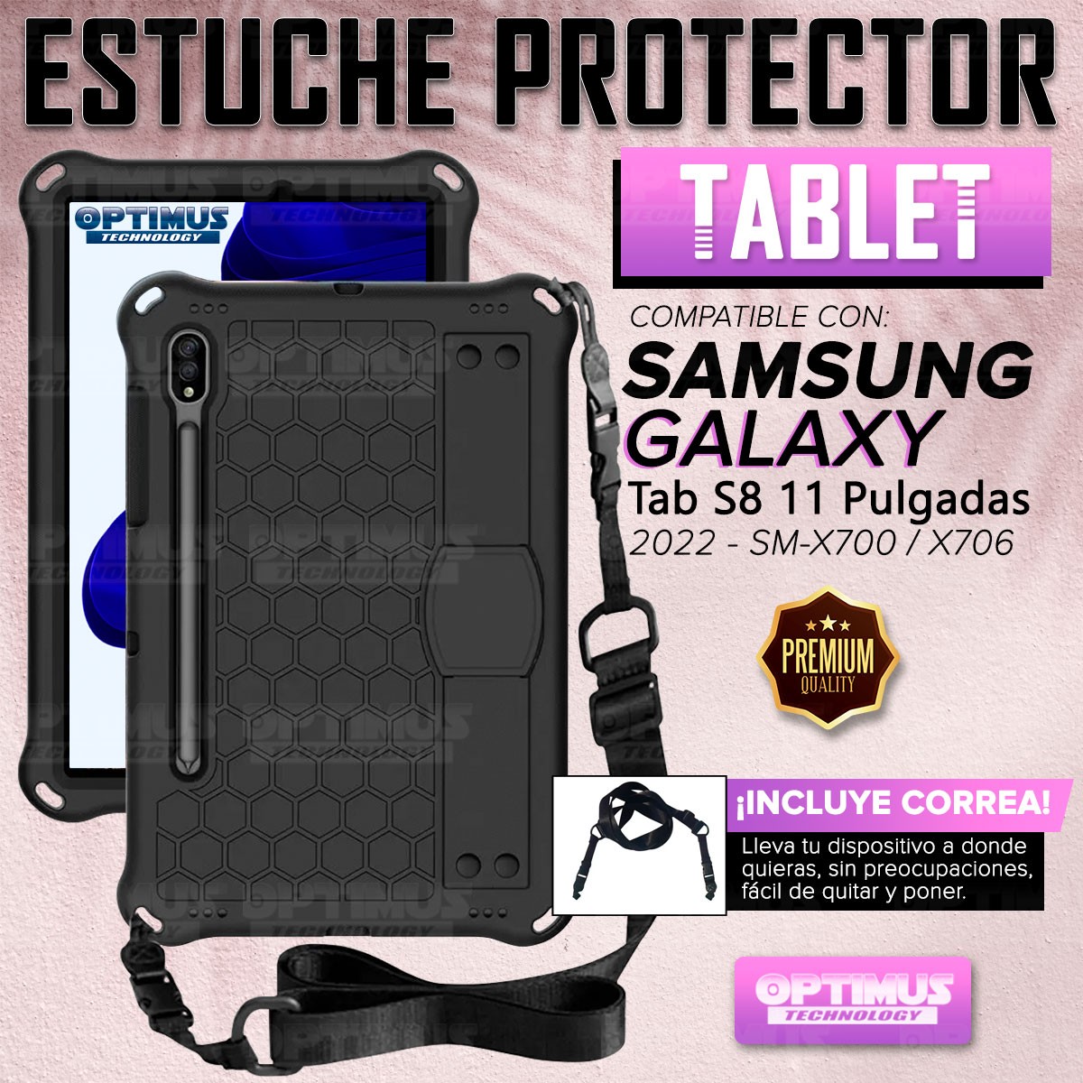 Estuche Protector con Correa Tablet Samsung Galaxy Tab S8 11 Pulgadas Wifi 2022 SM-X700 / SM-X706 Anti golpes con soporte