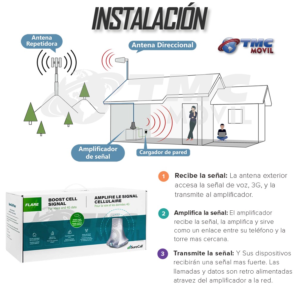 Kit Amplificador Antena repetidora de señal Surecall Flare 3.0 CO Fincas 4G LTE Entrega Inmediata