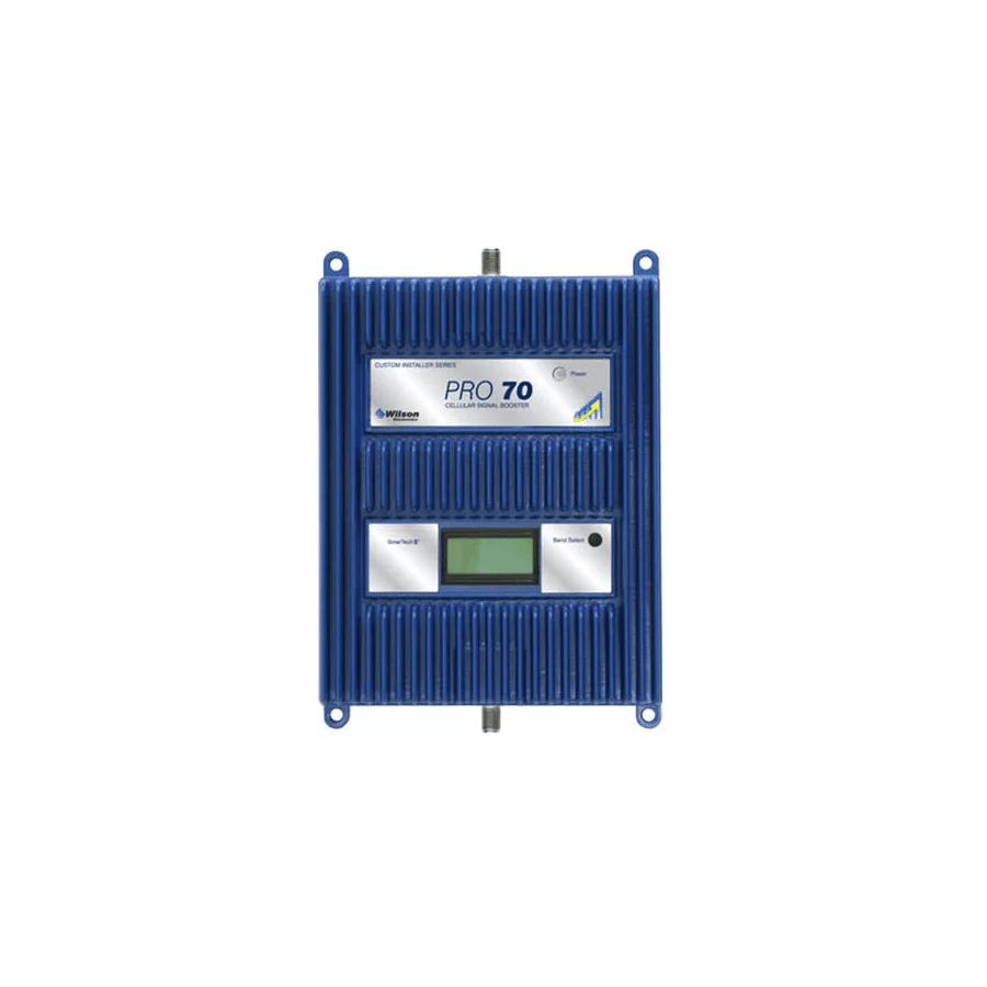 El Wilson Pro 70 toma la señal exterior celular existente y la amplifica hasta 32X con la tecnología patentada de refuerzo de señal de Wilson Electronics. Con una ganancia de potencia de hasta +70 dB, la señal amplificada se retransmite dentro del edificio para un servicio celular mucho mejor.