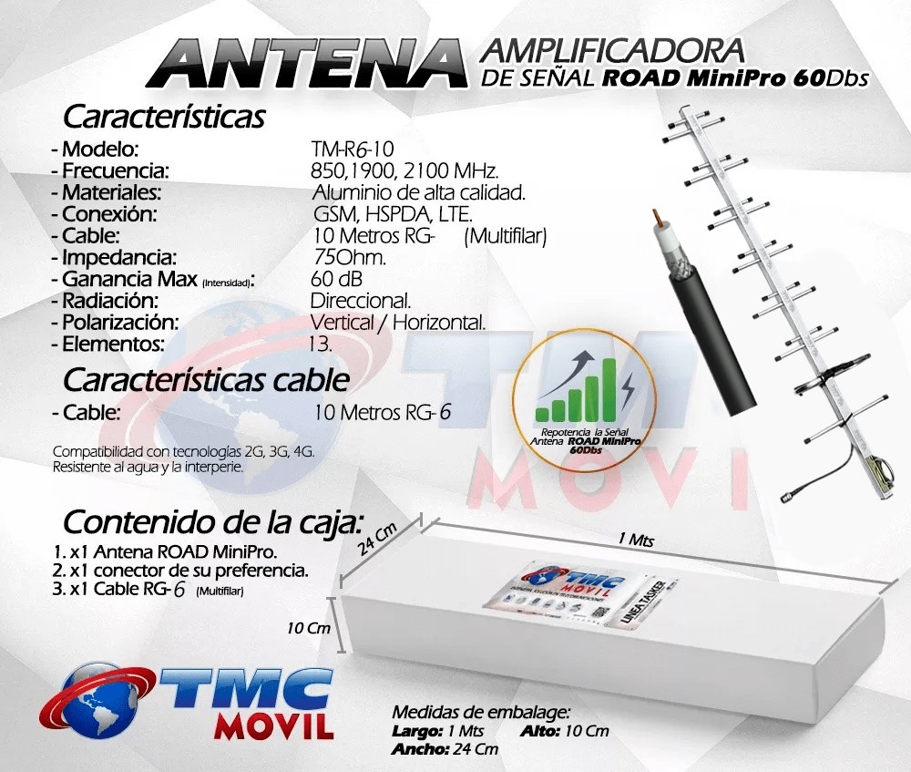 La nueva antena ROAD™ Mini PRO es una antena amplificadora de señal para todos los dispositivos móviles que tengan problemas de señal celular con datos móviles y recepción de llamadas en su finca, casa o apartamento en zonas rurales, excelente para zonas Boscosas, Quebradas y zonas complicadas.
