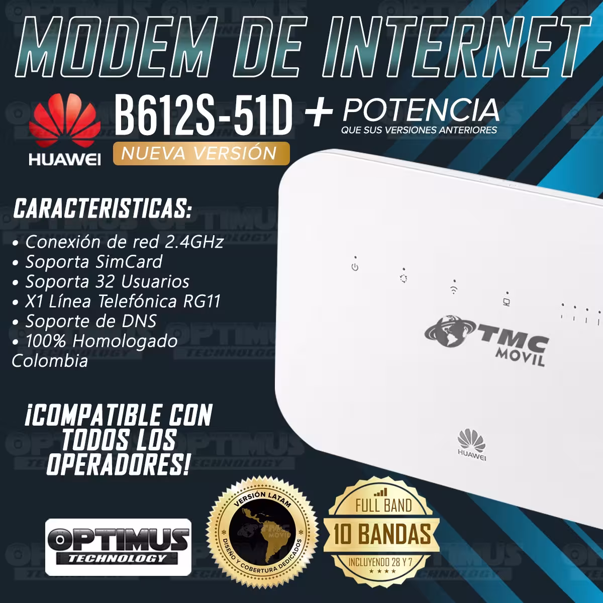 MÓDEM HUAWEI B612 COMPATIBLE CON TODOS LOS OPERADORES MOVILES EN COLOMBIA Y LATAM (COMPATIBLIDAD EN RED 4.5G) 2G, 3G, 3.5G, LTE, 4G, 4.5G