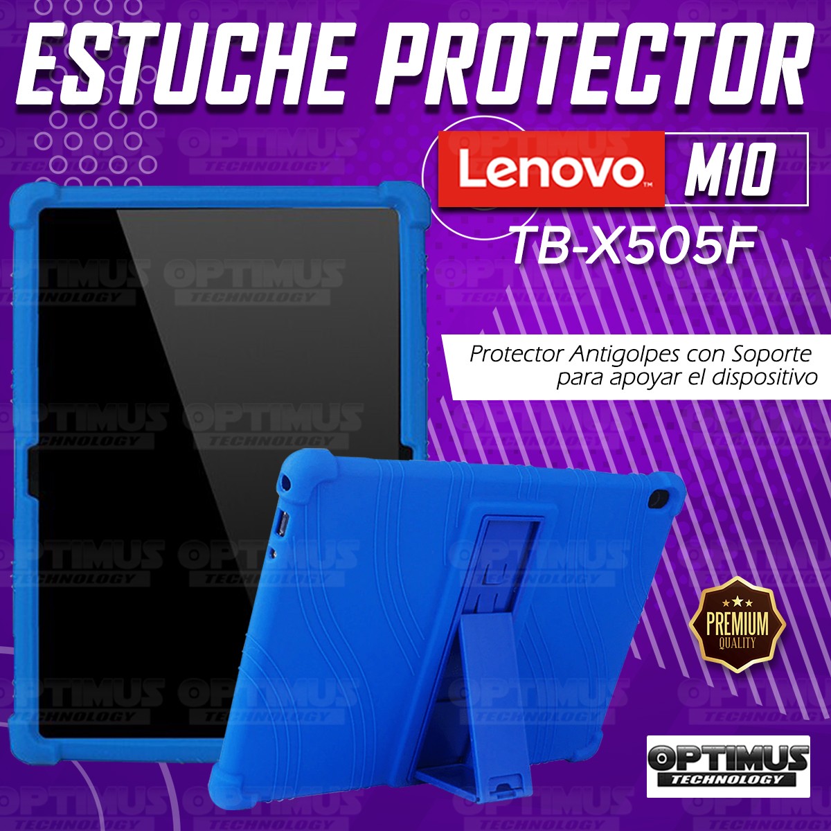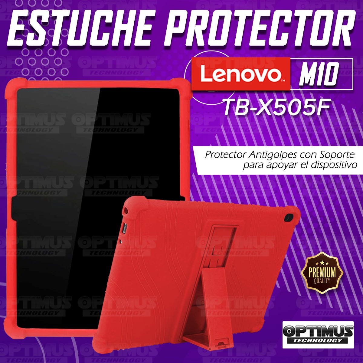 Kit Vidrio templado y Estuche Protector de goma antigolpes con soporte Tablet Lenovo Tab M10 Tb-x505f OPTIMUS TECHNOLOGY™ - 1