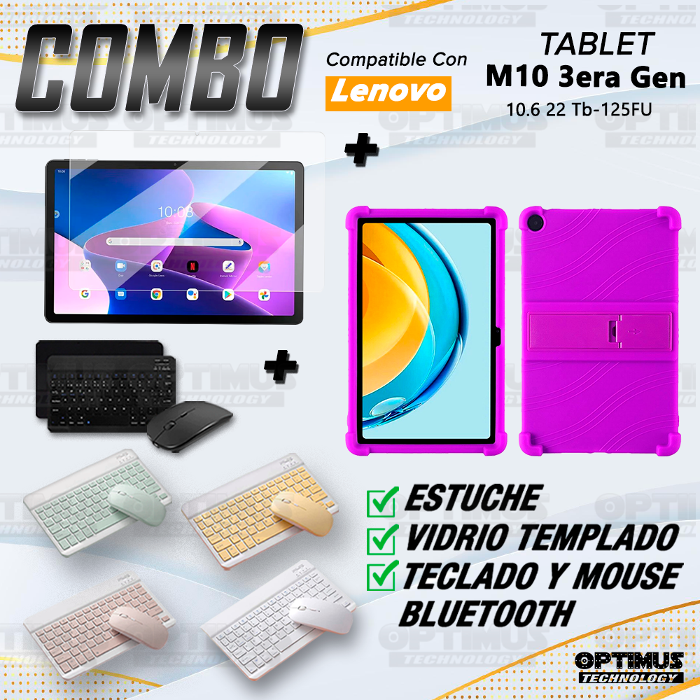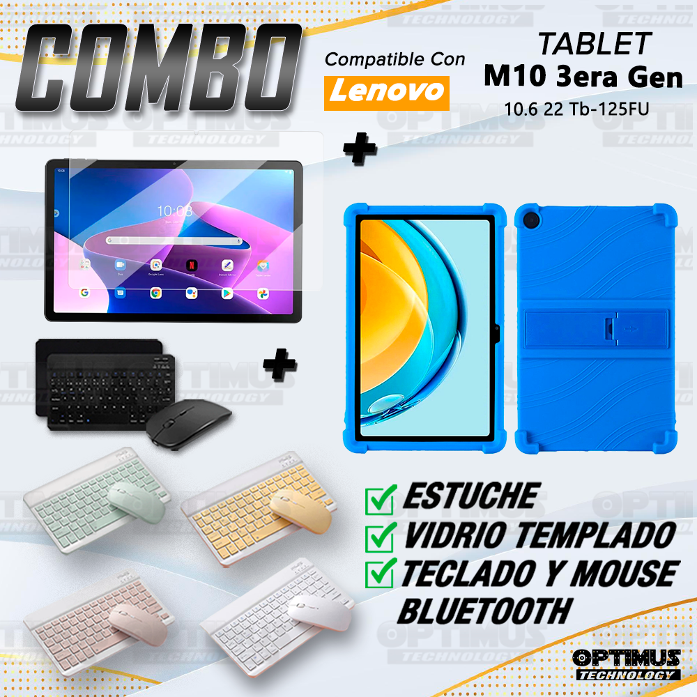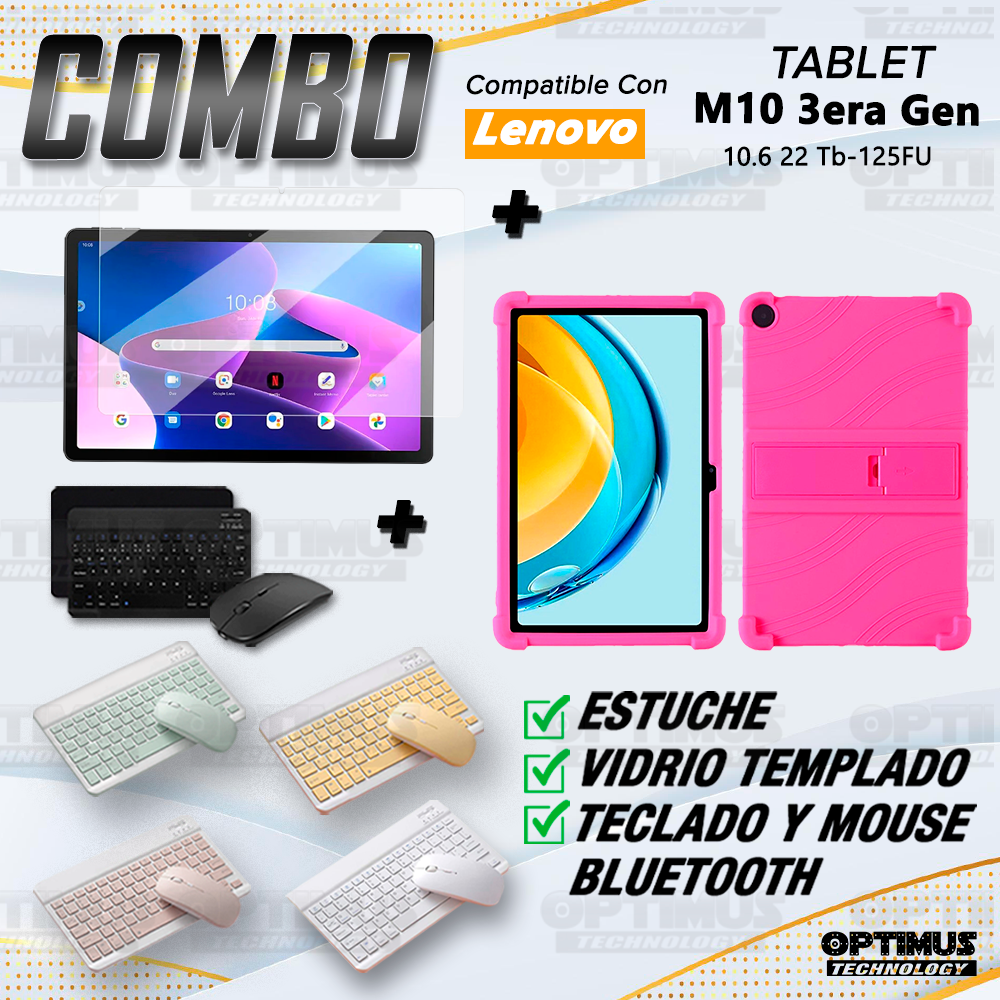 Kit Forro Protector Antigolpes + Teclado y Mouse Bluetooth para Tablet Lenovo Tab M10 Plus 3era Gen 10.6 2022 TB-125FU