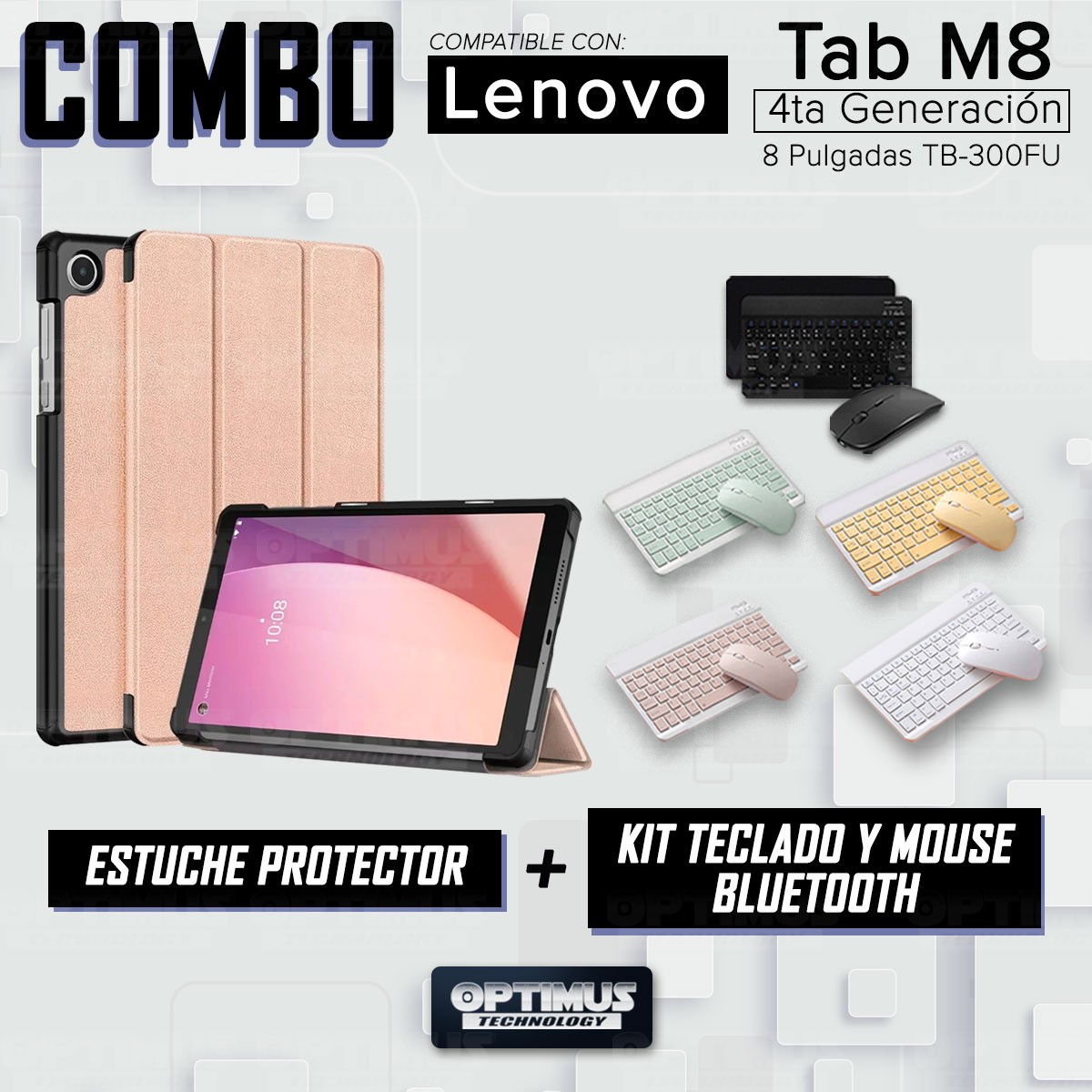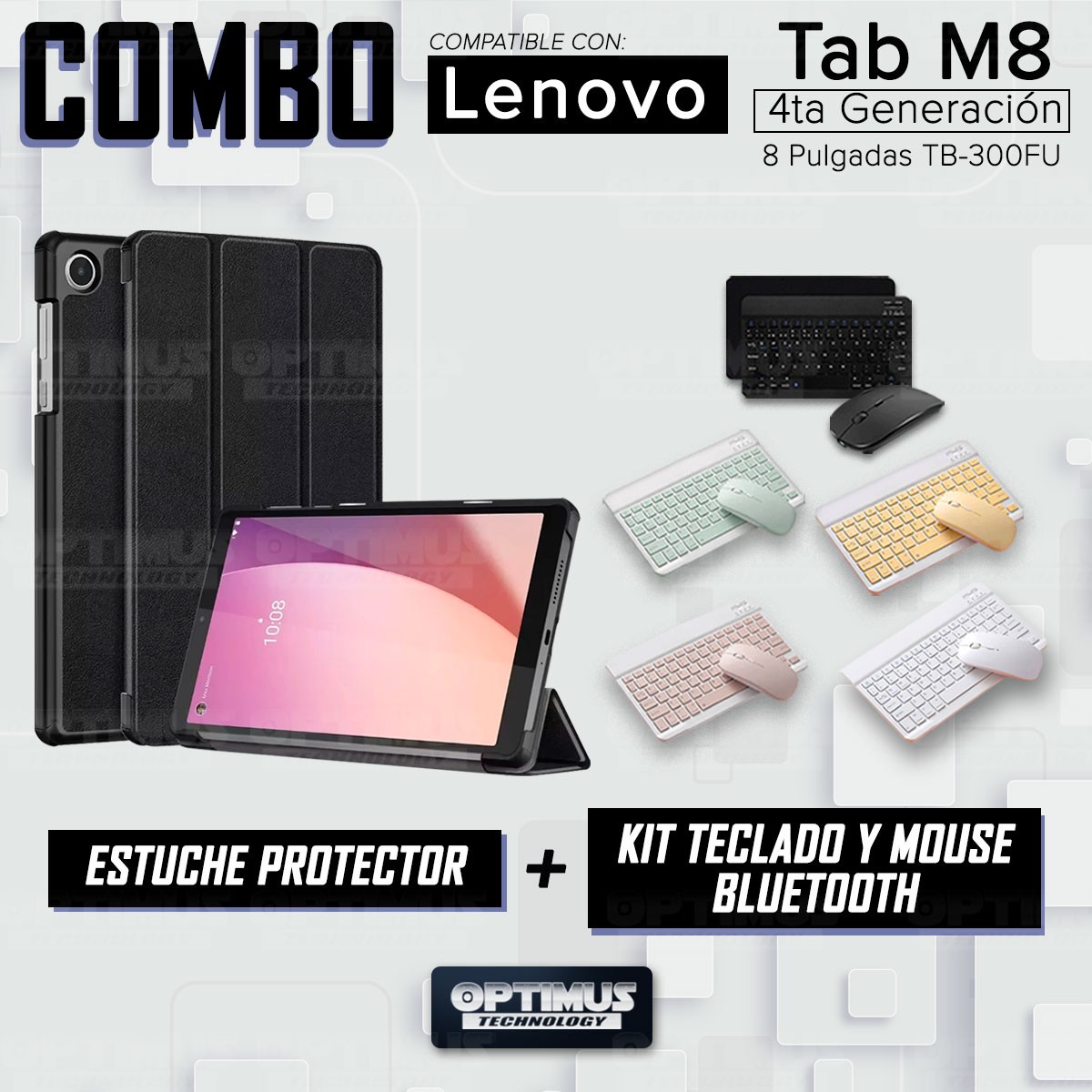 Kit Case Forro Protector + Teclado y Mouse Ratón Bluetooth para Tablet Lenovo Tab M8 4ta Generación TB-300FU 8 Pulgadas 2023