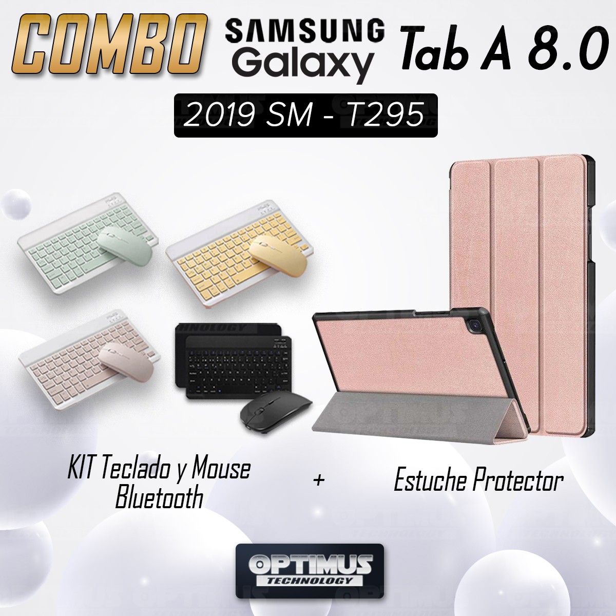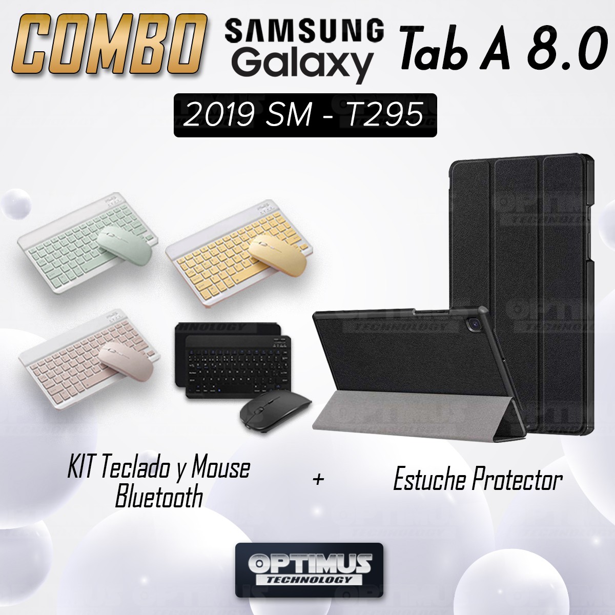 Kit Case Forro Protector + Teclado y Mouse Ratón Bluetooth para Tablet Samsung Galaxy Tab A8.0 2019 SM-T295