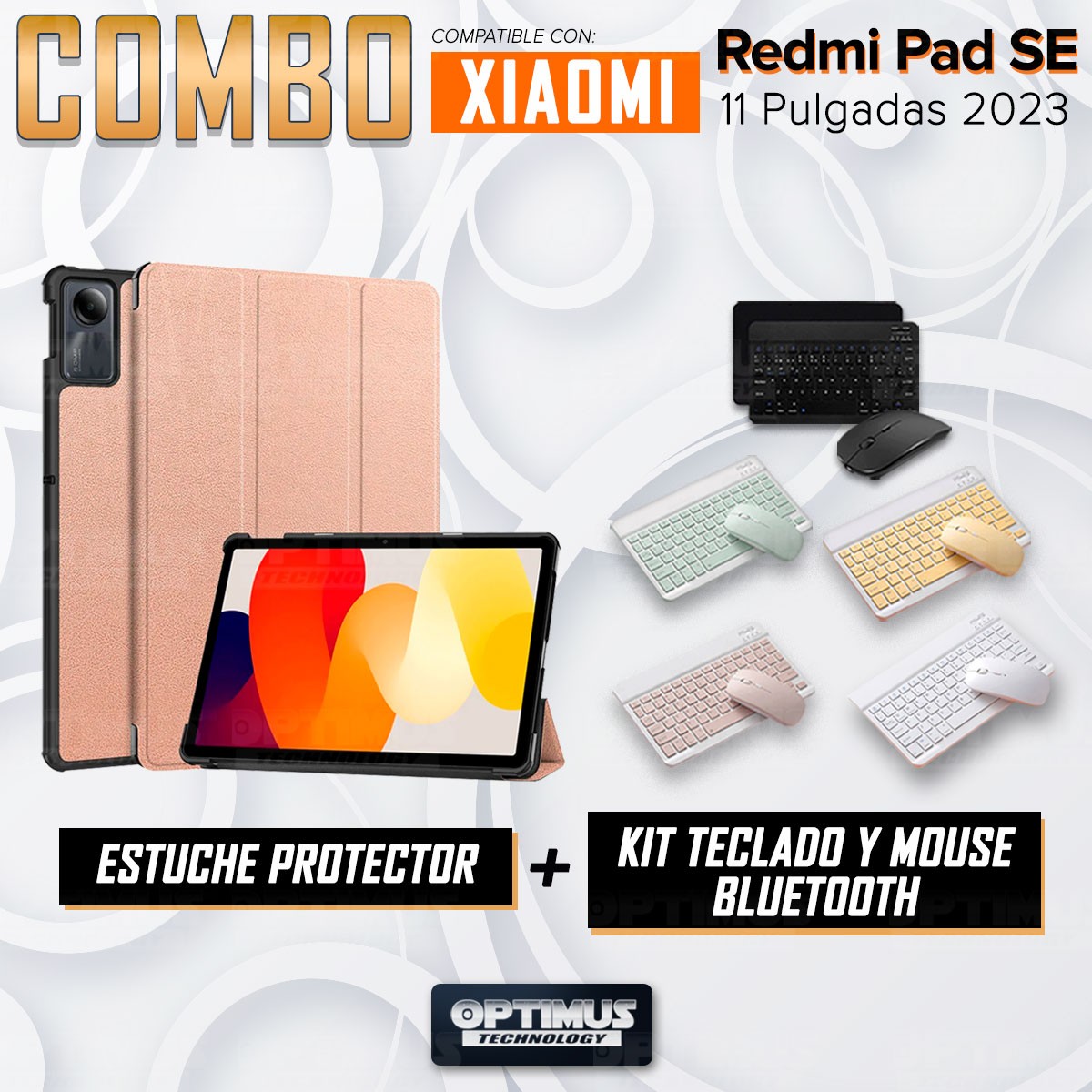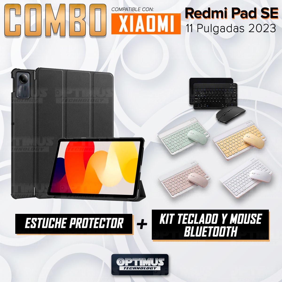Kit Case Forro Protector + Teclado y Mouse Ratón Bluetooth para Tablet Xiaomi Redmi Pad SE 11 Pulgadas 2023 Wifi