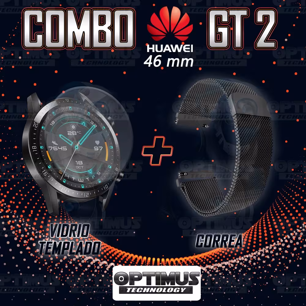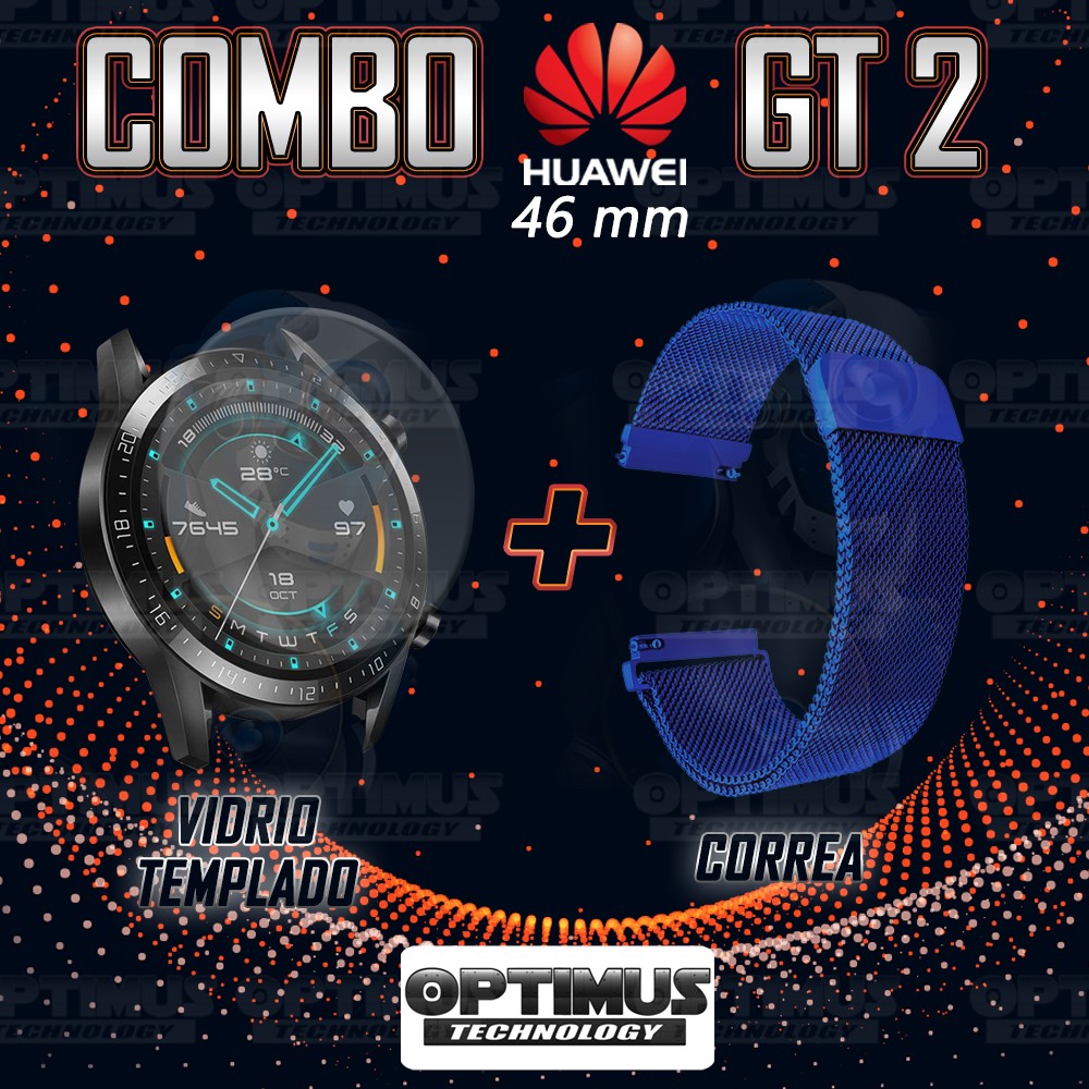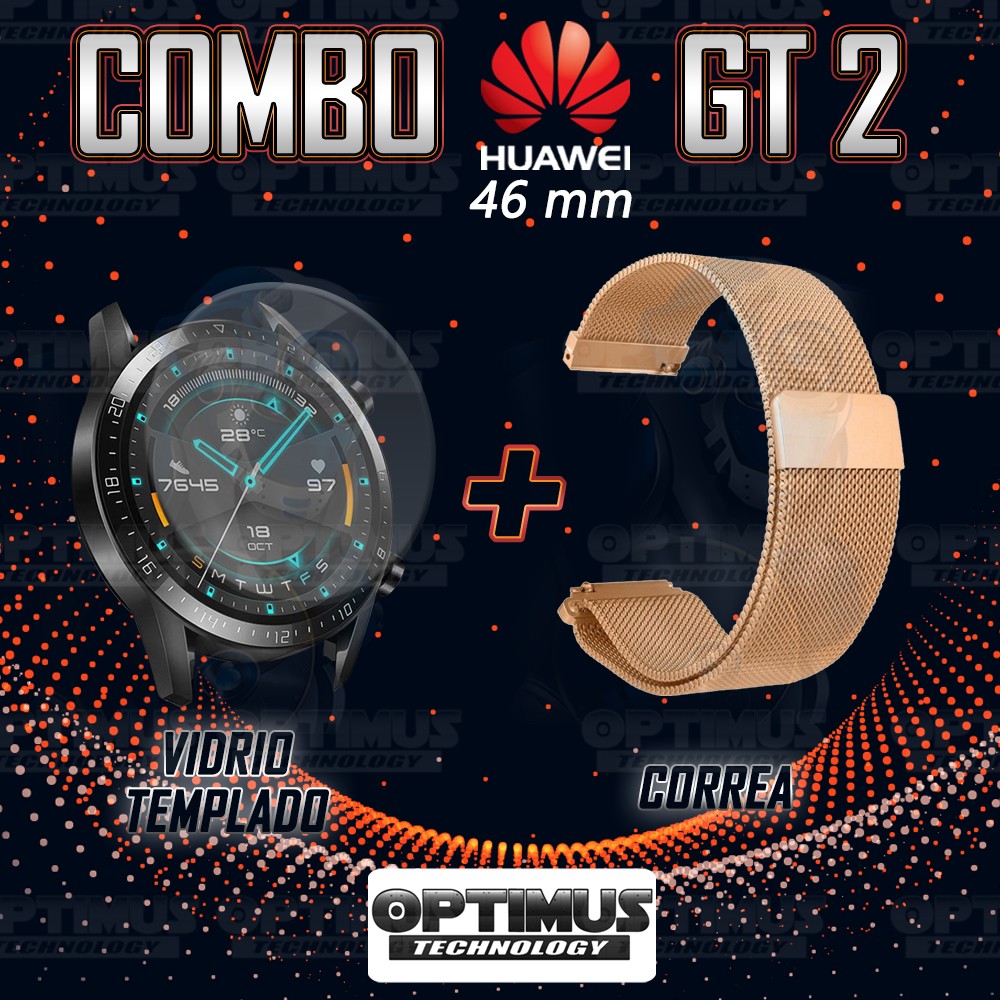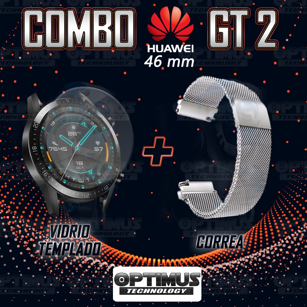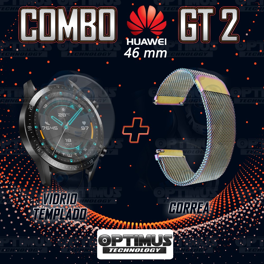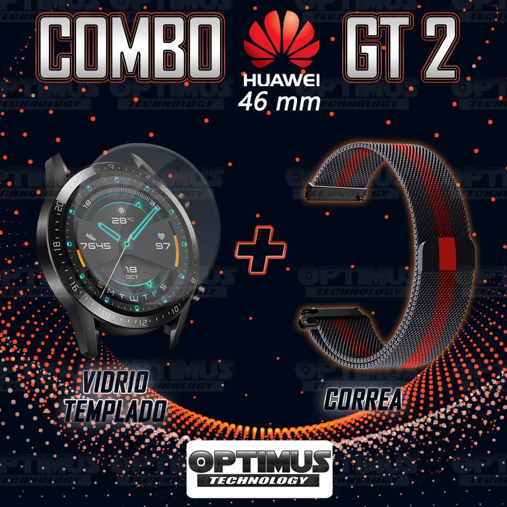 Kit Correa Pulso Manilla de Goma Y Vidrio Templado Huawei Gt 2 46mm | OPTIMUS TECHNOLOGY™ | CRRY-VTP-HW-GT2-46 |