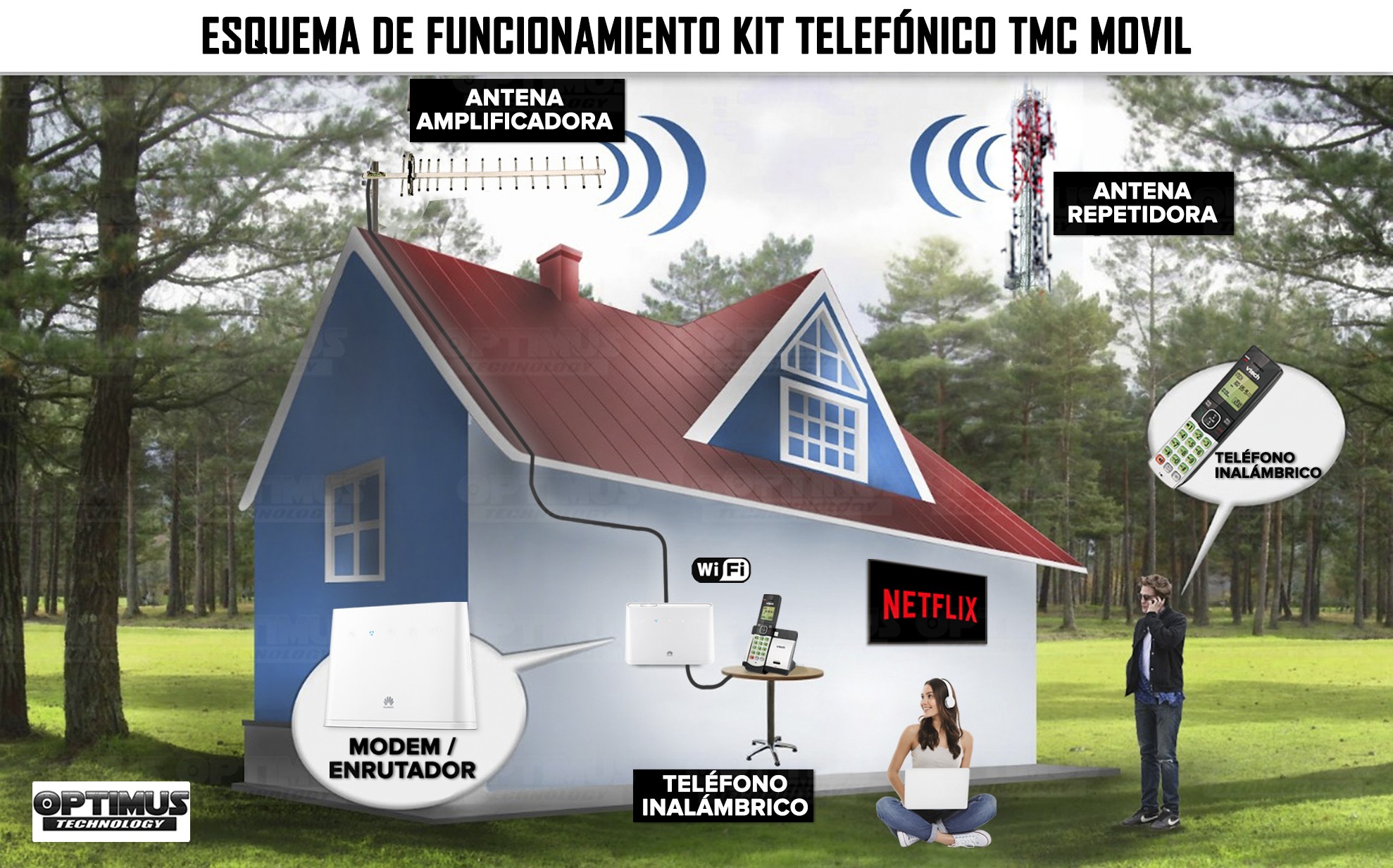 Kit Rural Router Modem Inalámbrico HUAWEI B311 SIMCARD 4G + Teléfono Inalámbrico de mesa + Antena amplificadora de señal TasKer™ 17 DB