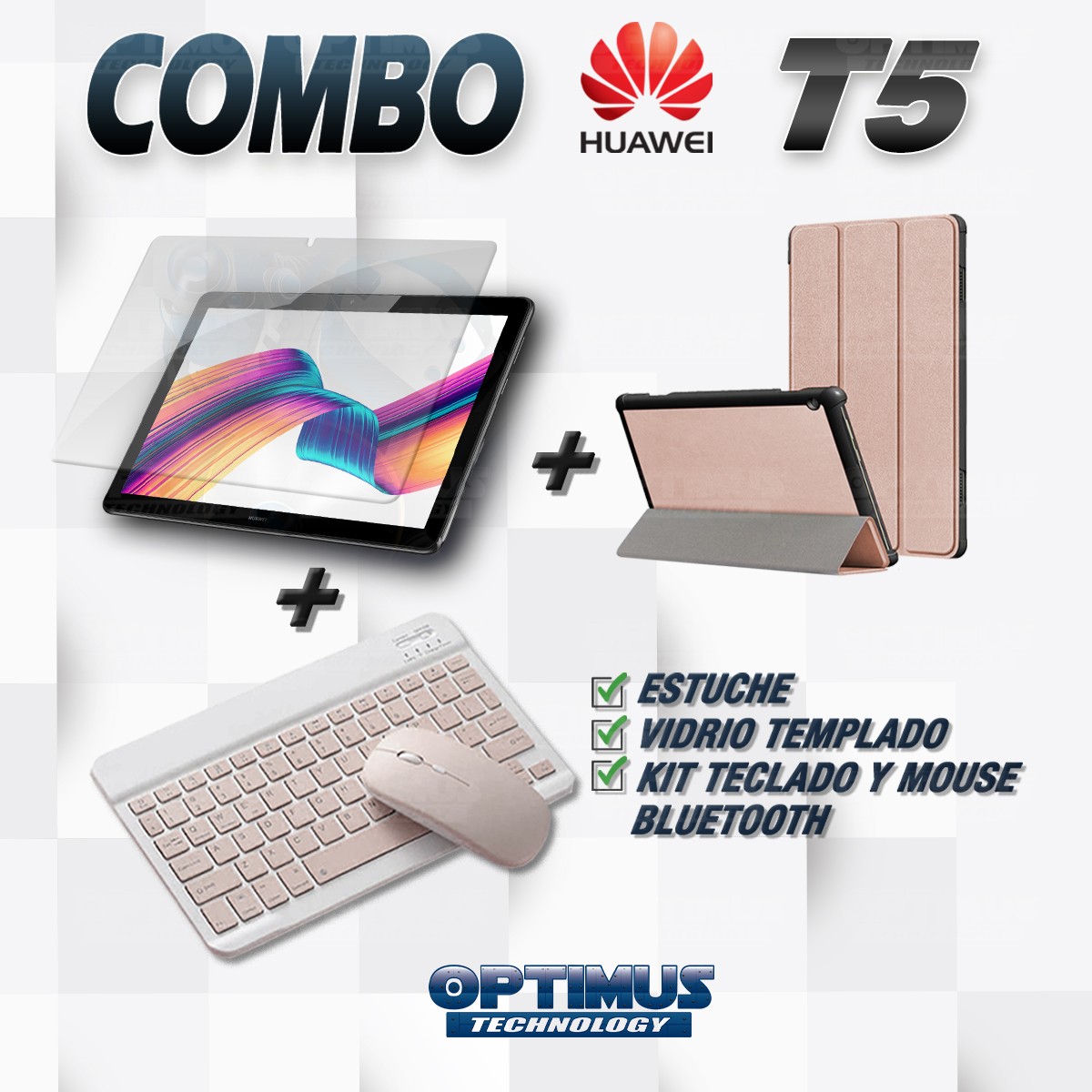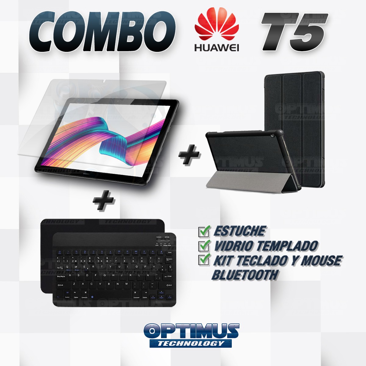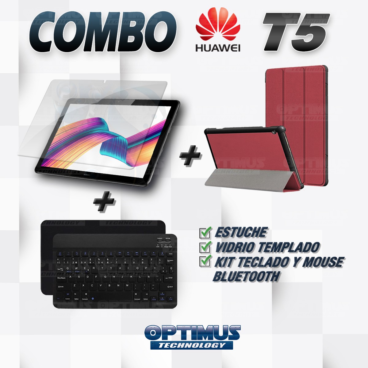 Los ¡Nuevos Kits de Estuche + Vidrio + Teclado + Mouse Bluetooth de OPTIMUS™ Le brindan a tu Tablet una alta protección y funcionalidad completa!