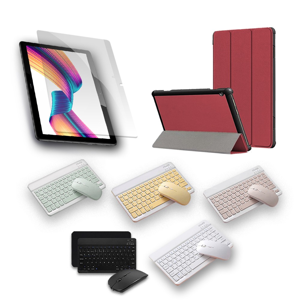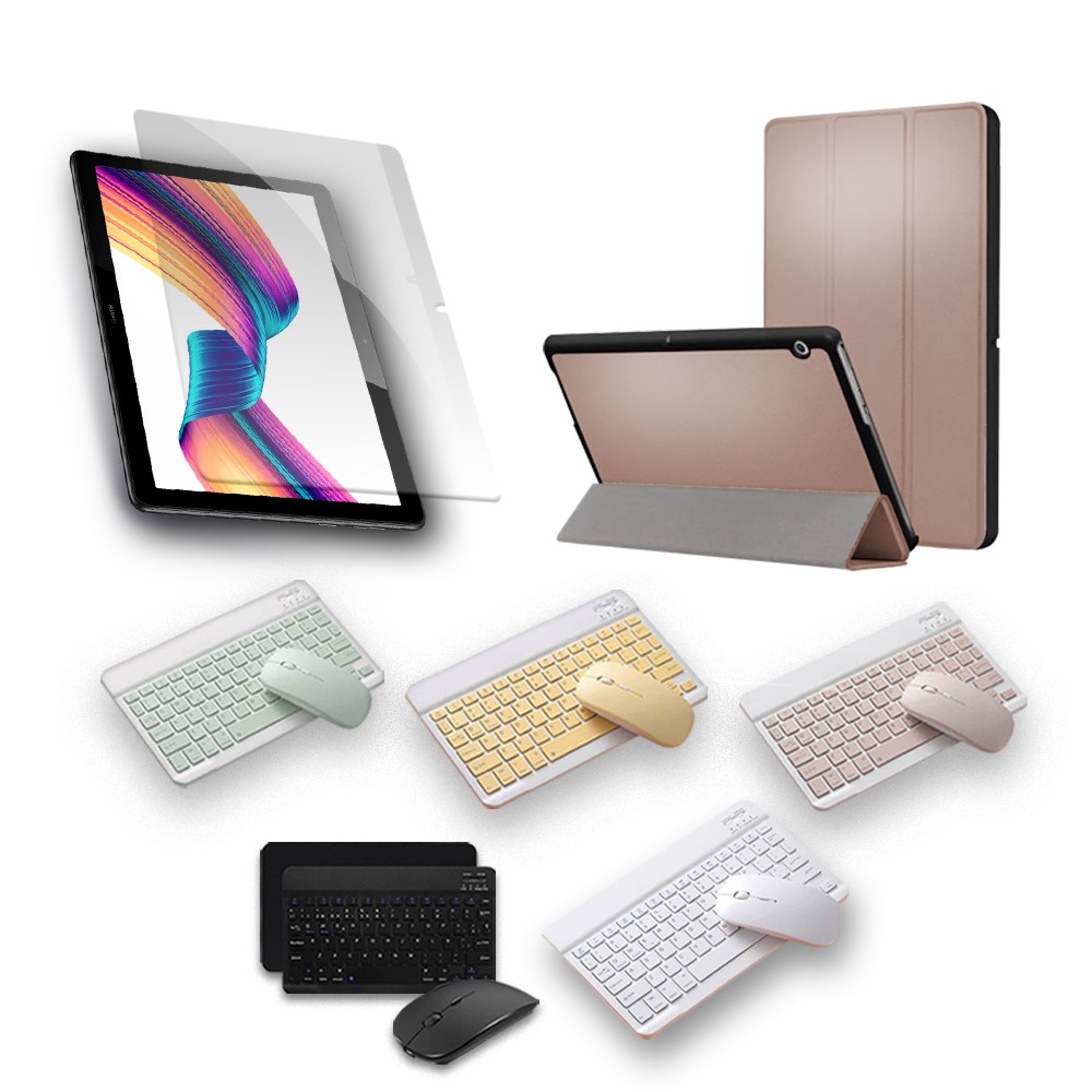 Kit Vidrio templado + Case Forro Protector + Teclado y Mouse Ratón Bluetooth para Tablet Huawei T3-10