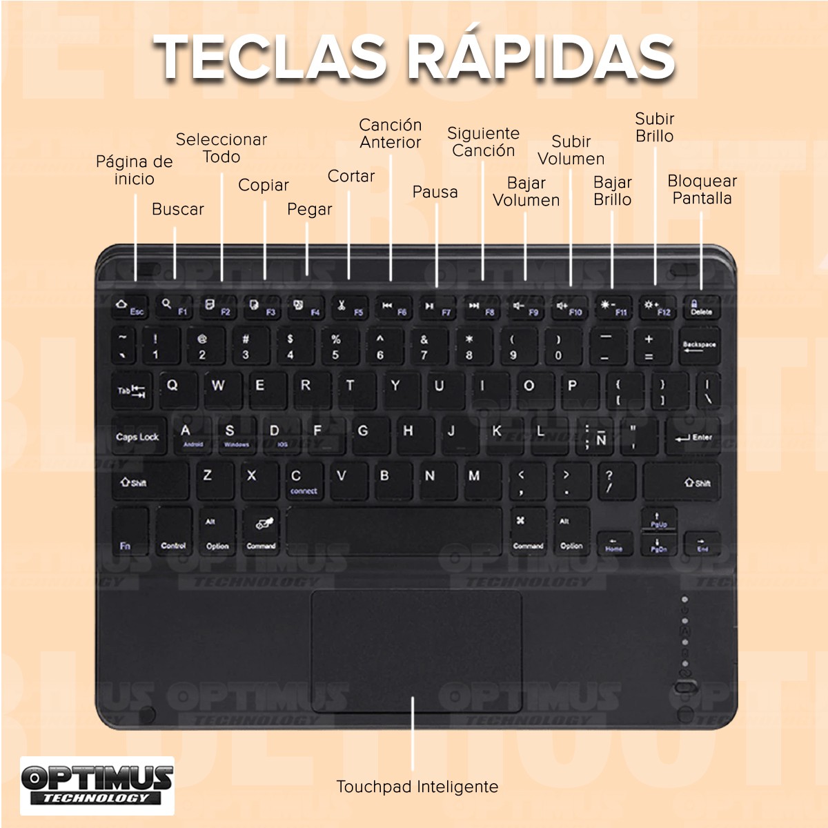 x1 Teclado Bluetooth con Mouse Touchpad y teclas de fácil acceso