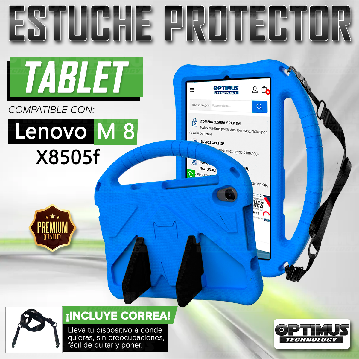 Kit Vidrio templado + Case Protector con correa + Teclado Touchpad Bluetooth Tablet Lenovo M8 X8505f