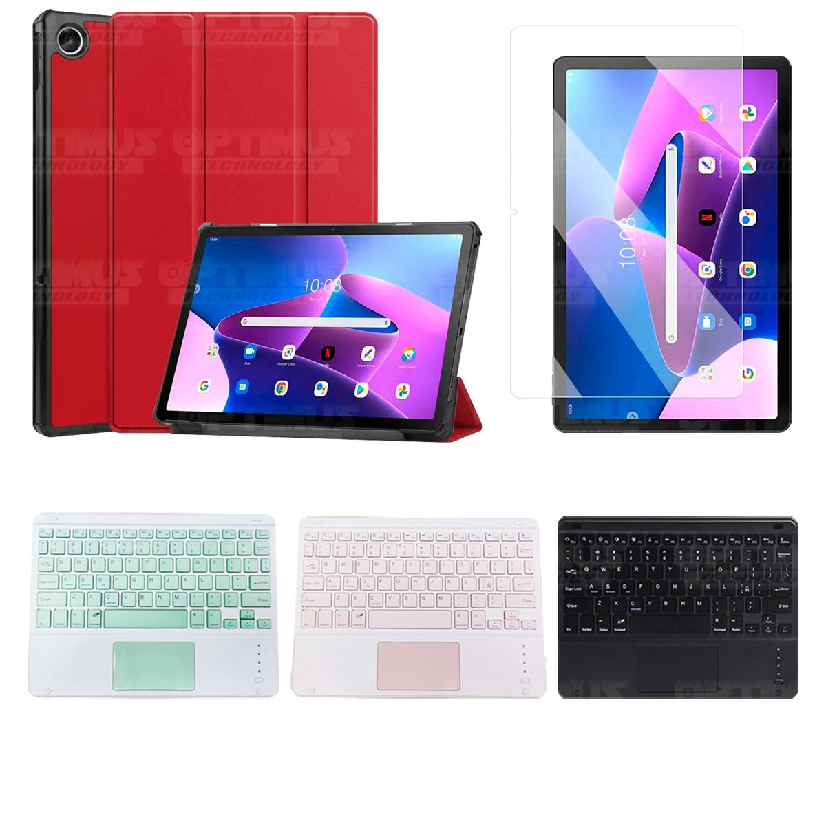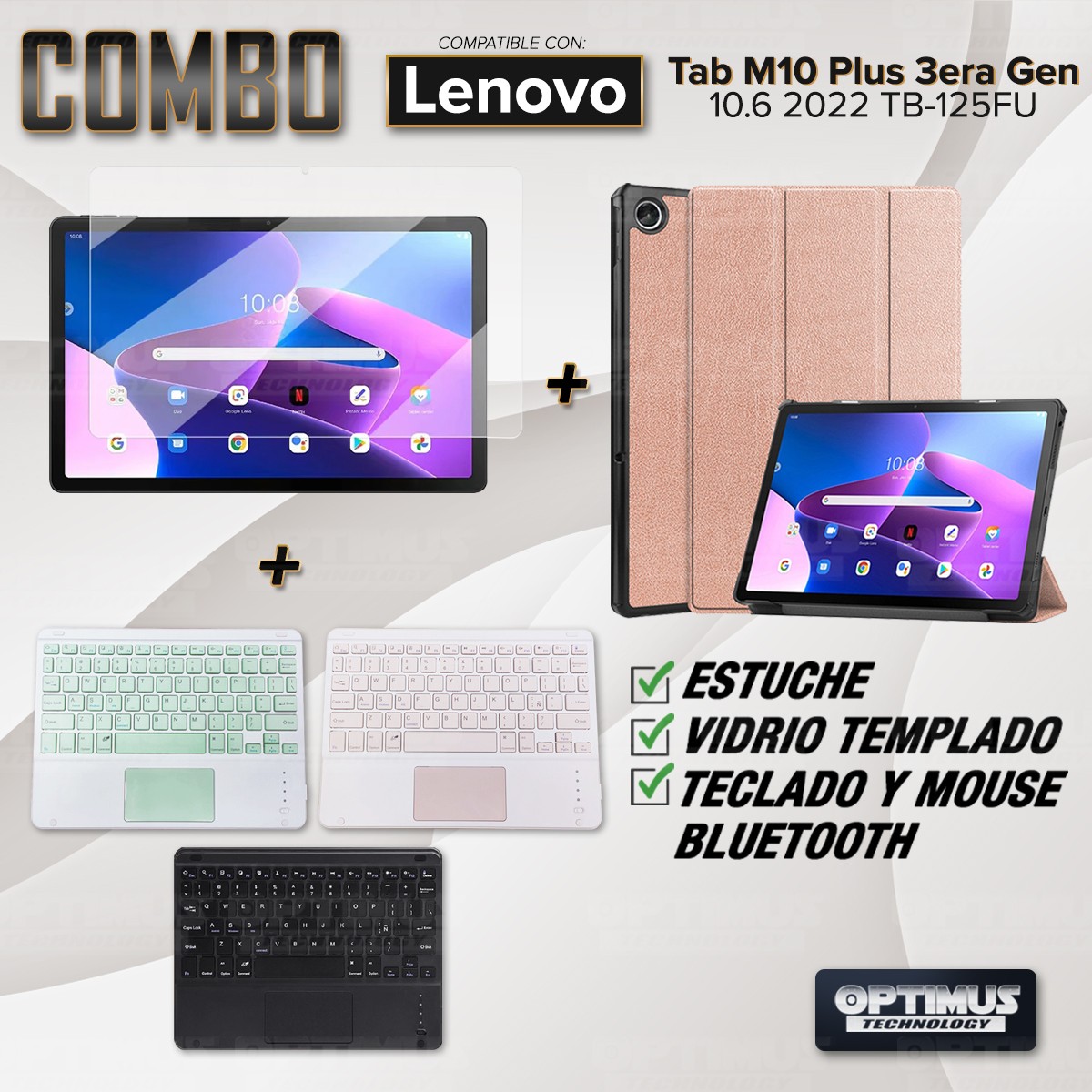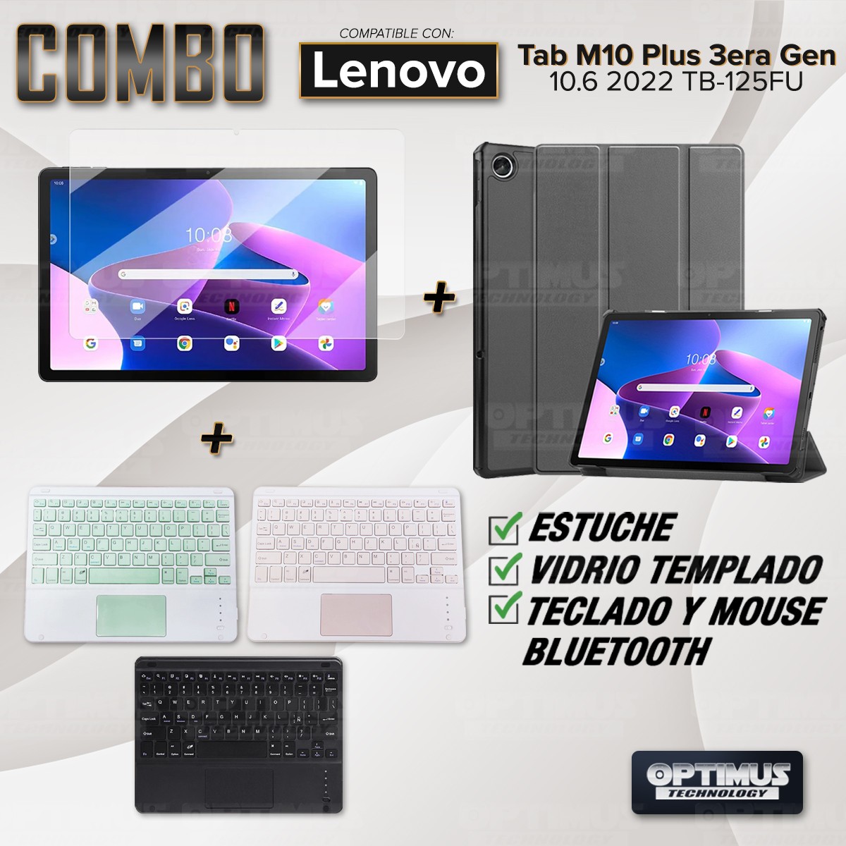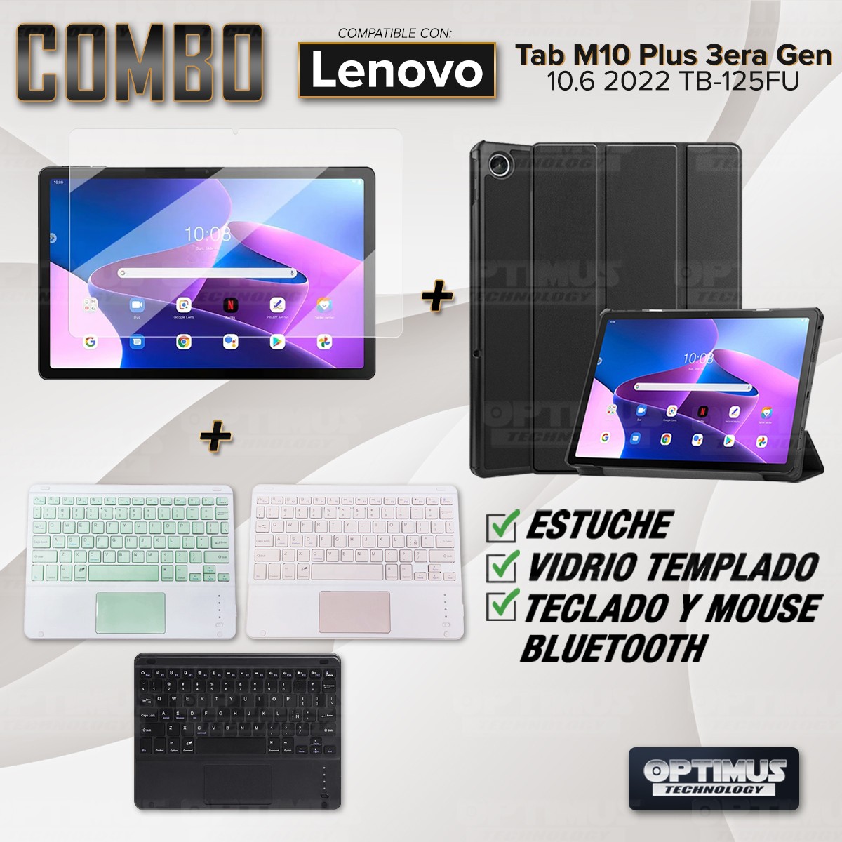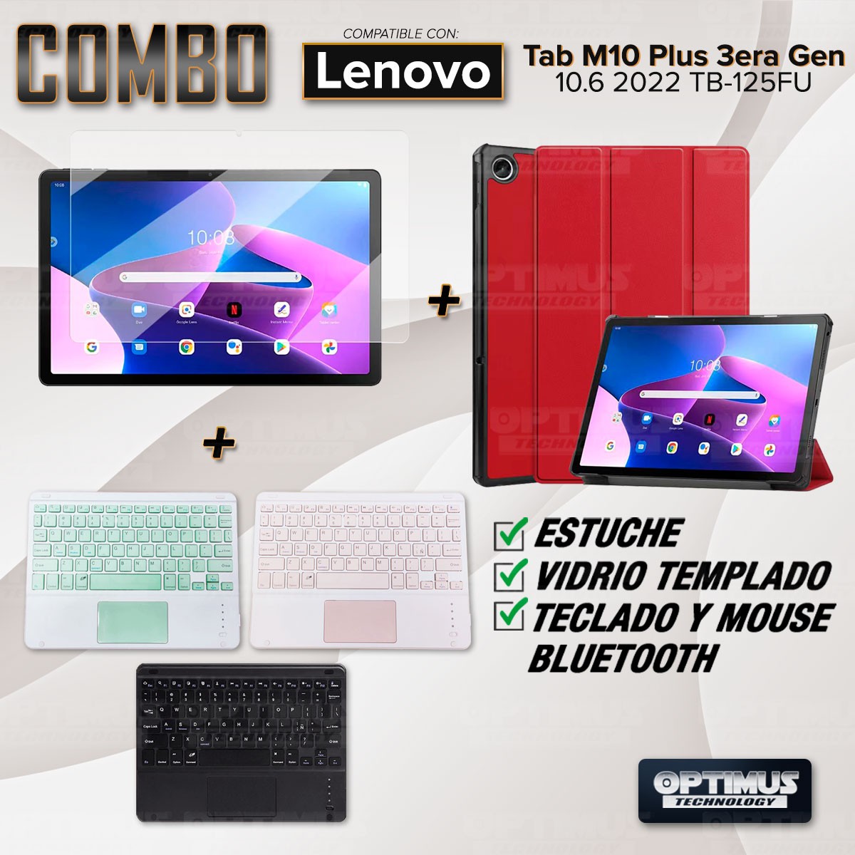 Los ¡Nuevos Kits de Estuche + Vidrio + Teclado + Mouse Touchpad Bluetooth de OPTIMUS™ Le brindan a tu Tablet una alta protección y funcionalidad completa!