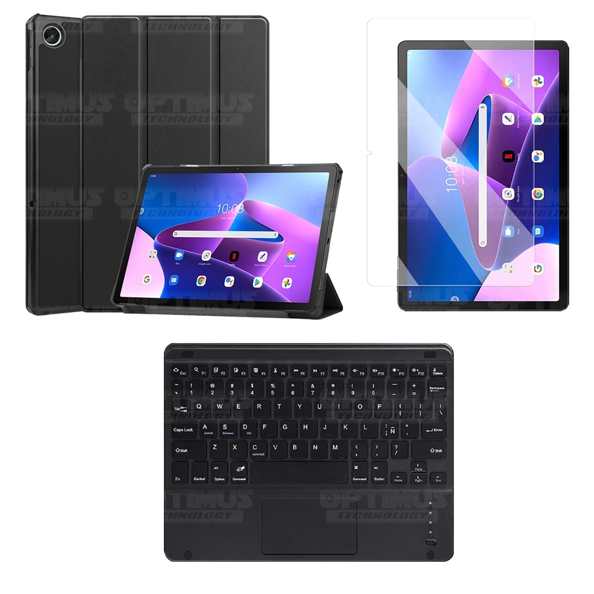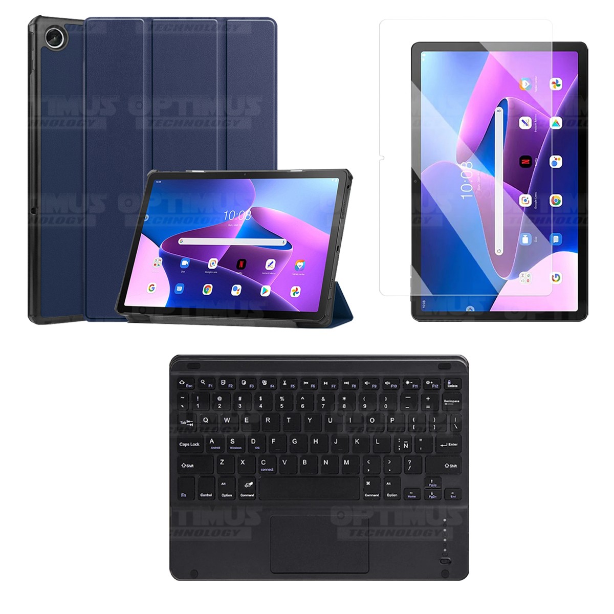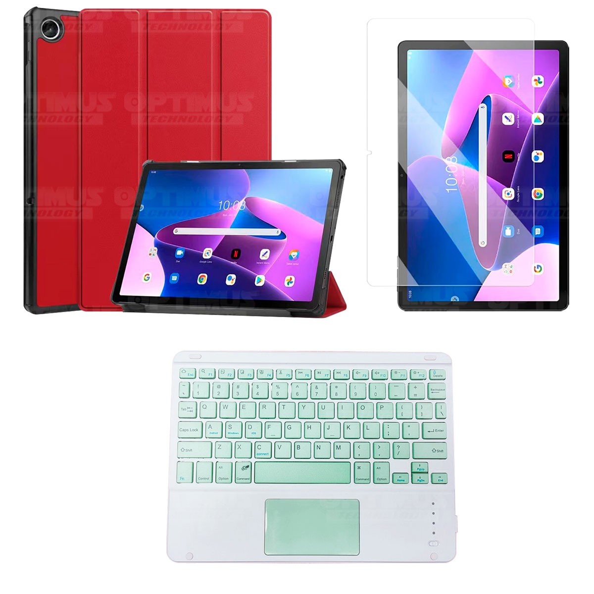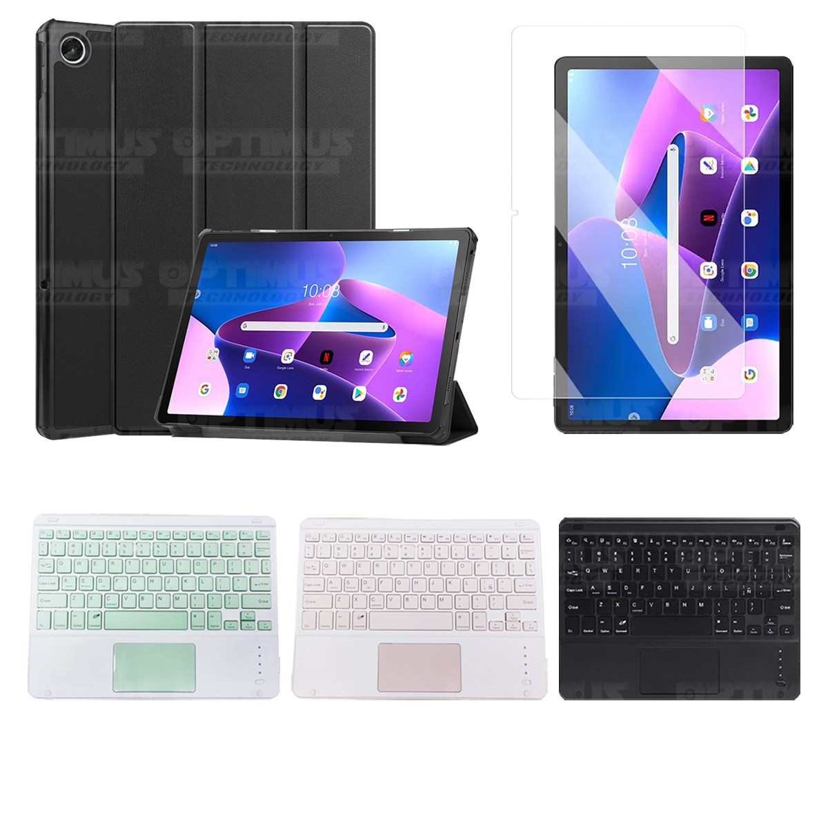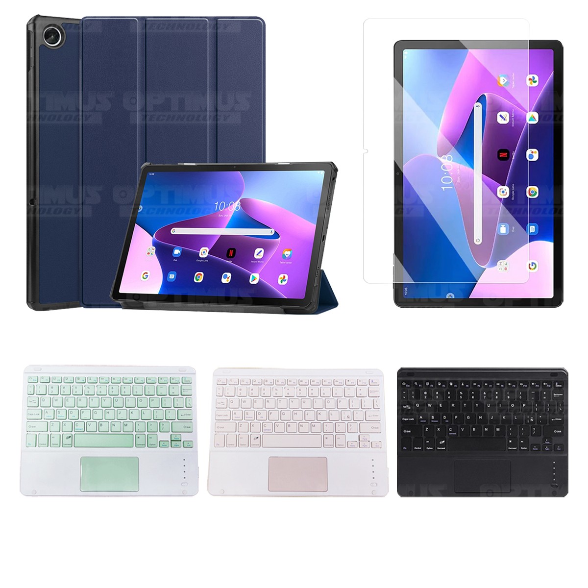 Los ¡Nuevos Kits de Estuche + Vidrio + Teclado + Mouse Touchpad Bluetooth de OPTIMUS™ Le brindan a tu Tablet una alta protección y funcionalidad completa!