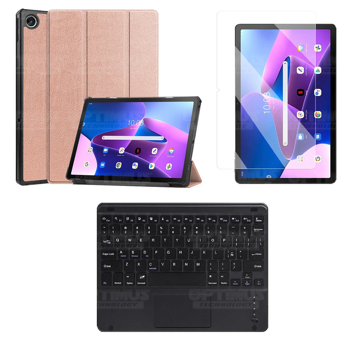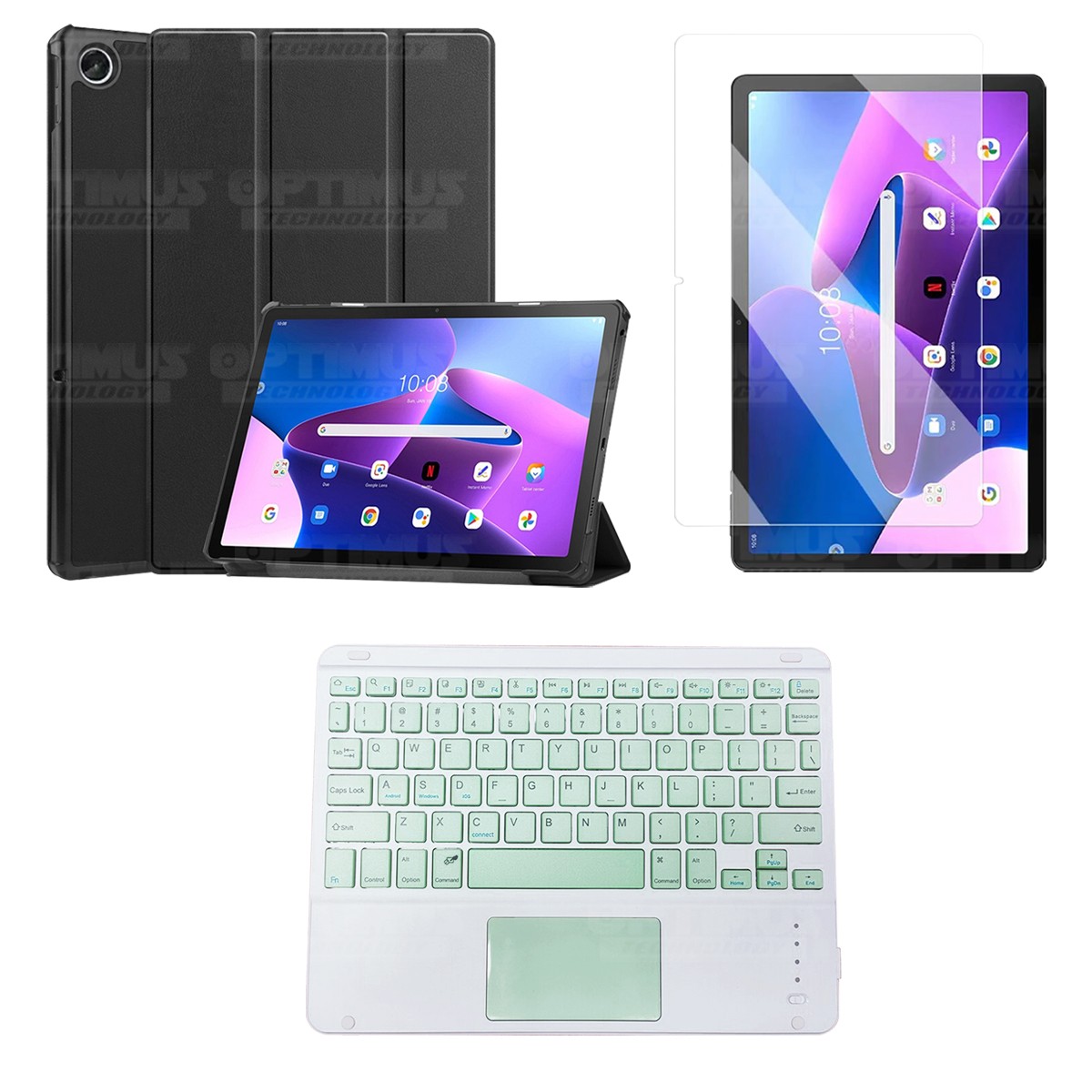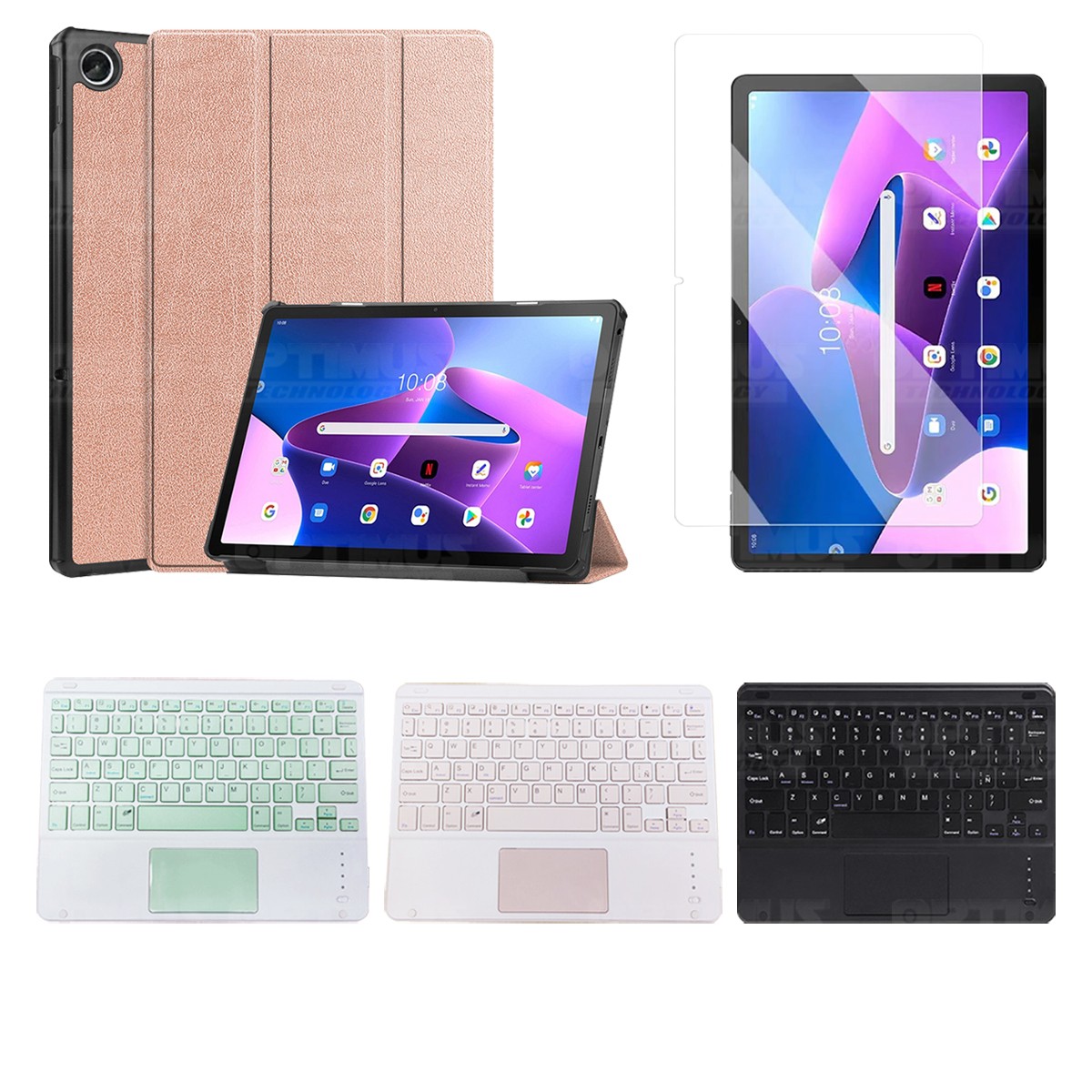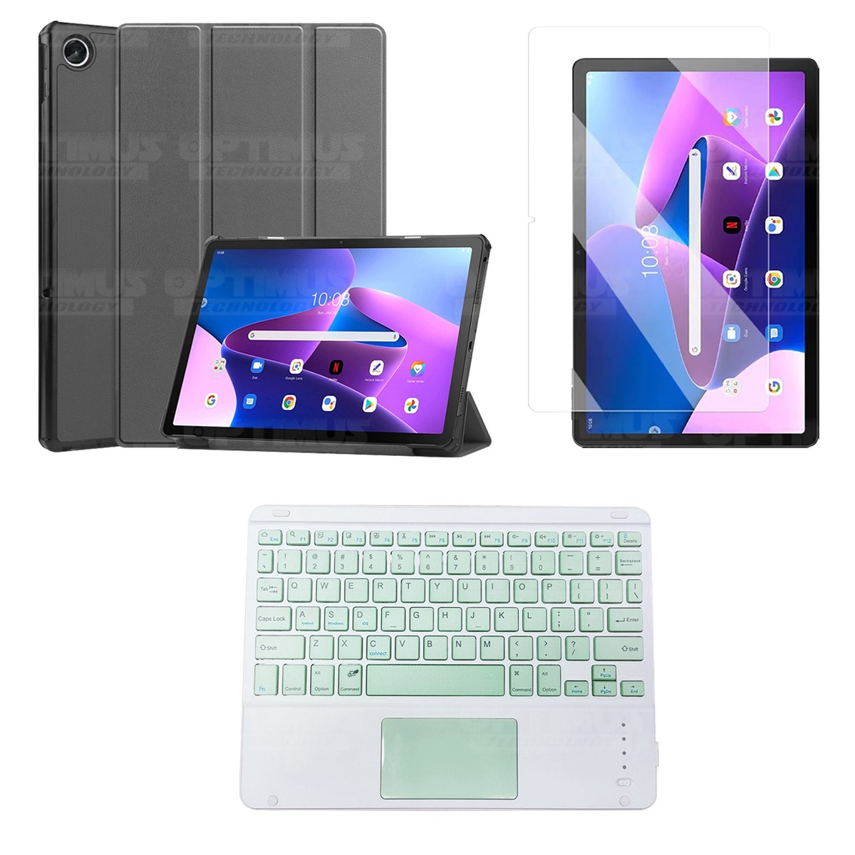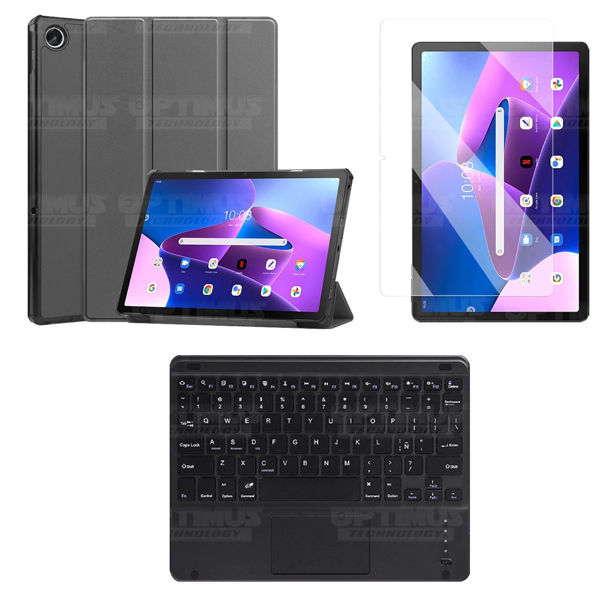 Los ¡Nuevos Kits de Estuche + Vidrio + Teclado + Mouse Touchpad Bluetooth de OPTIMUS™ Le brindan a tu Tablet una alta protección y funcionalidad completa!