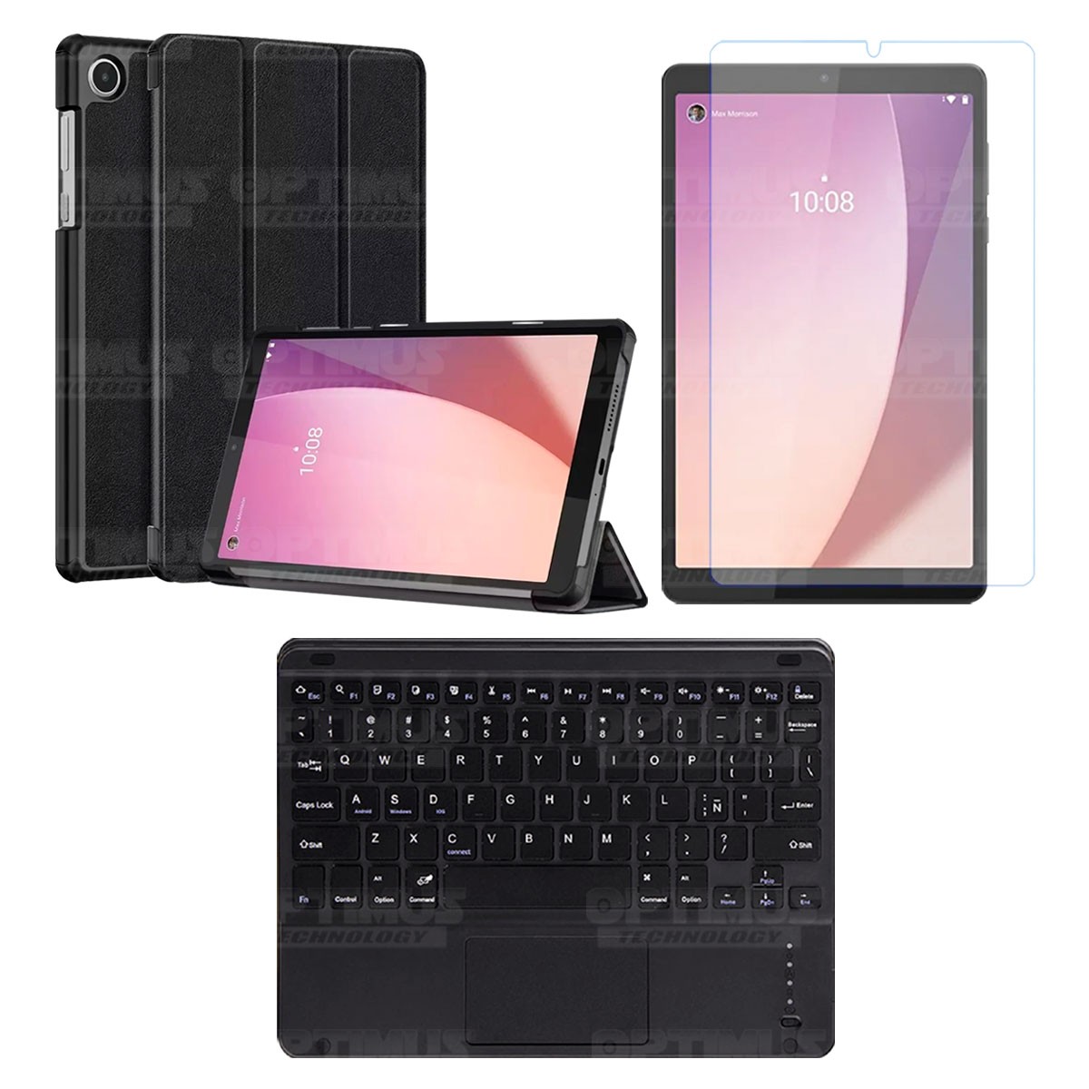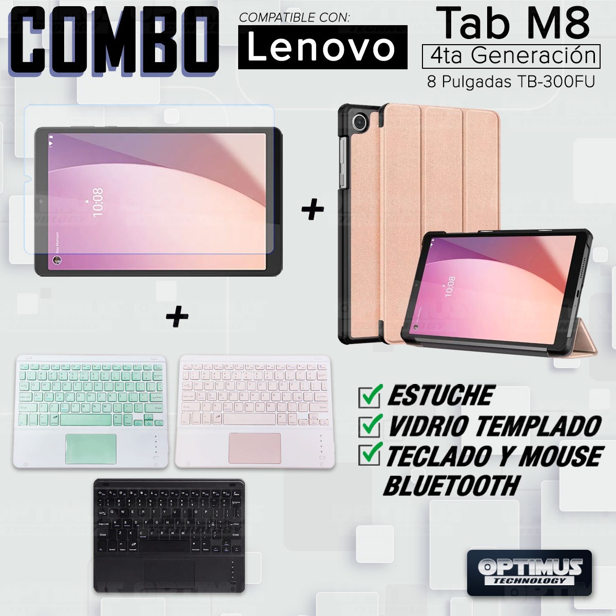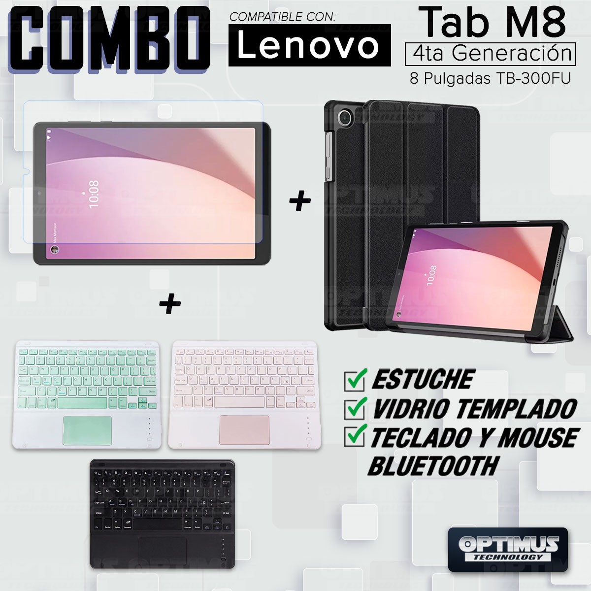 Los ¡Nuevos Kits de Estuche + Vidrio + Teclado + Mouse Touchpad Bluetooth de OPTIMUS™ Le brindan a tu Tablet una alta protección y funcionalidad completa!