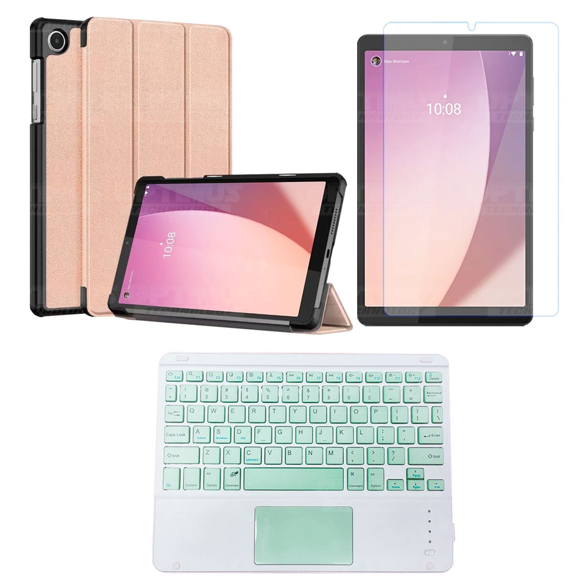 Kit Vidrio templado + Case Protector + Teclado Touchpad Bluetooth Tablet Lenovo Tab M8 4ta Generación TB-300FU 8 Pulgadas 2023