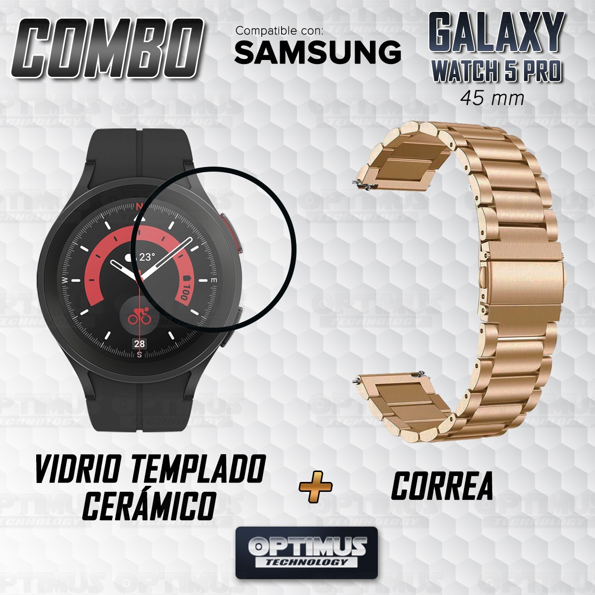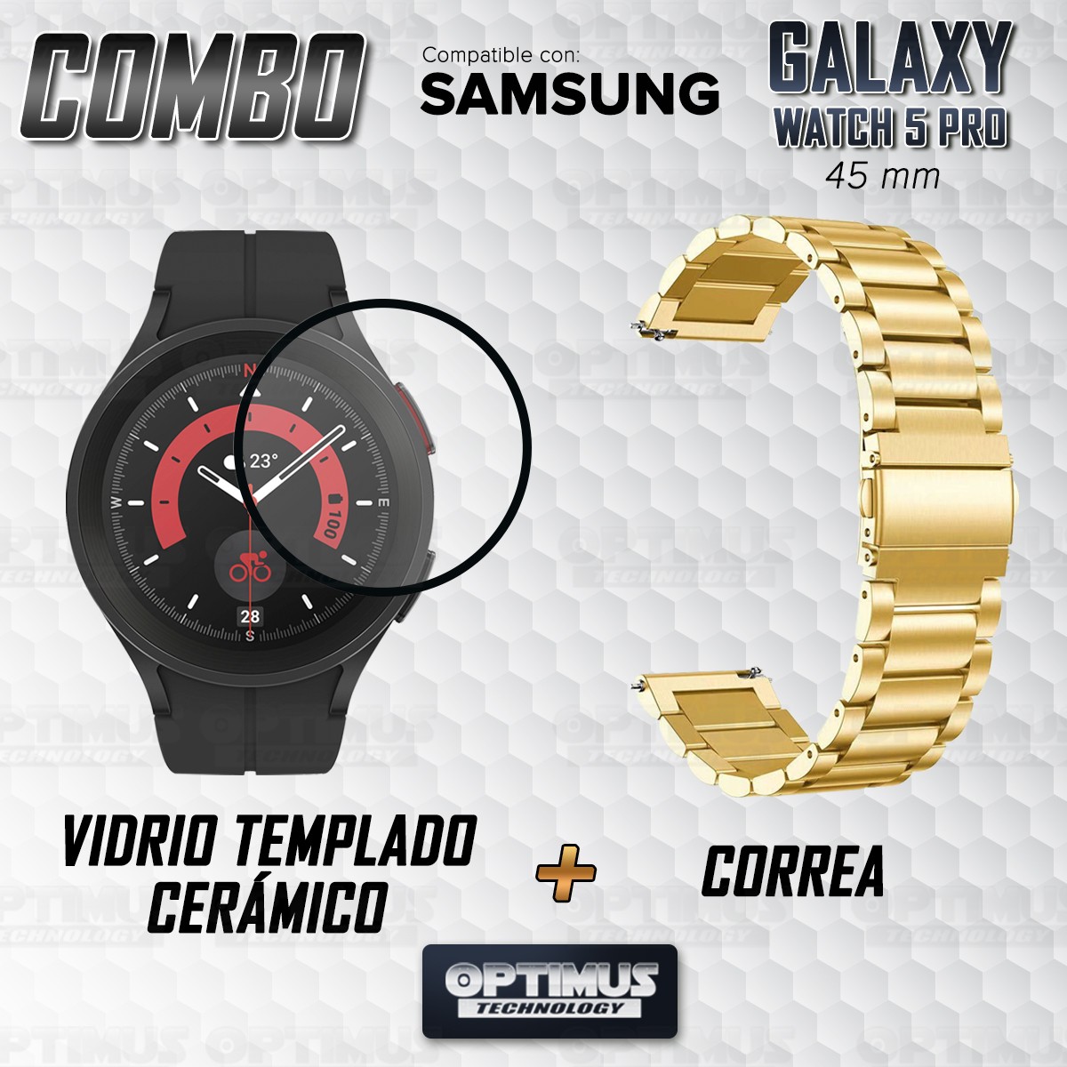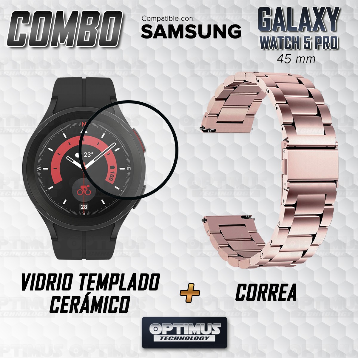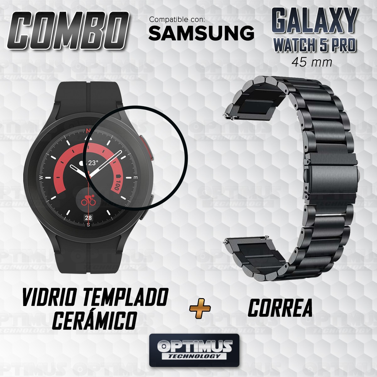 Kit Vidrio templado cerámico Y Correa De Metal Acero Inoxidable Smartwatch Reloj Inteligente Samsung Galaxy Watch 5 Pro 45mm