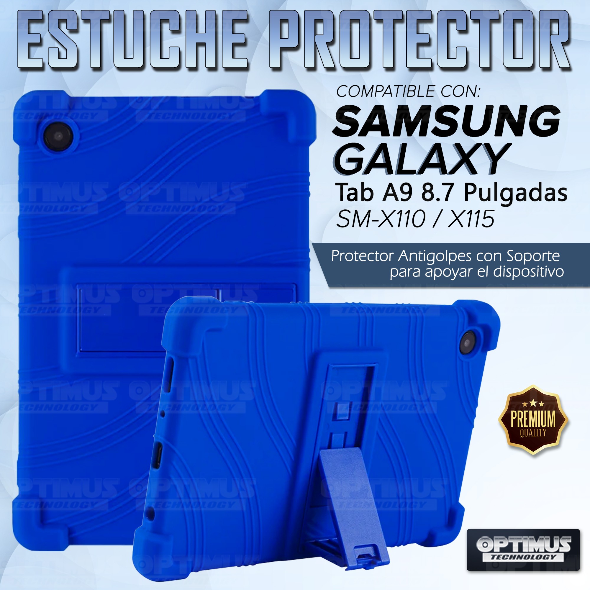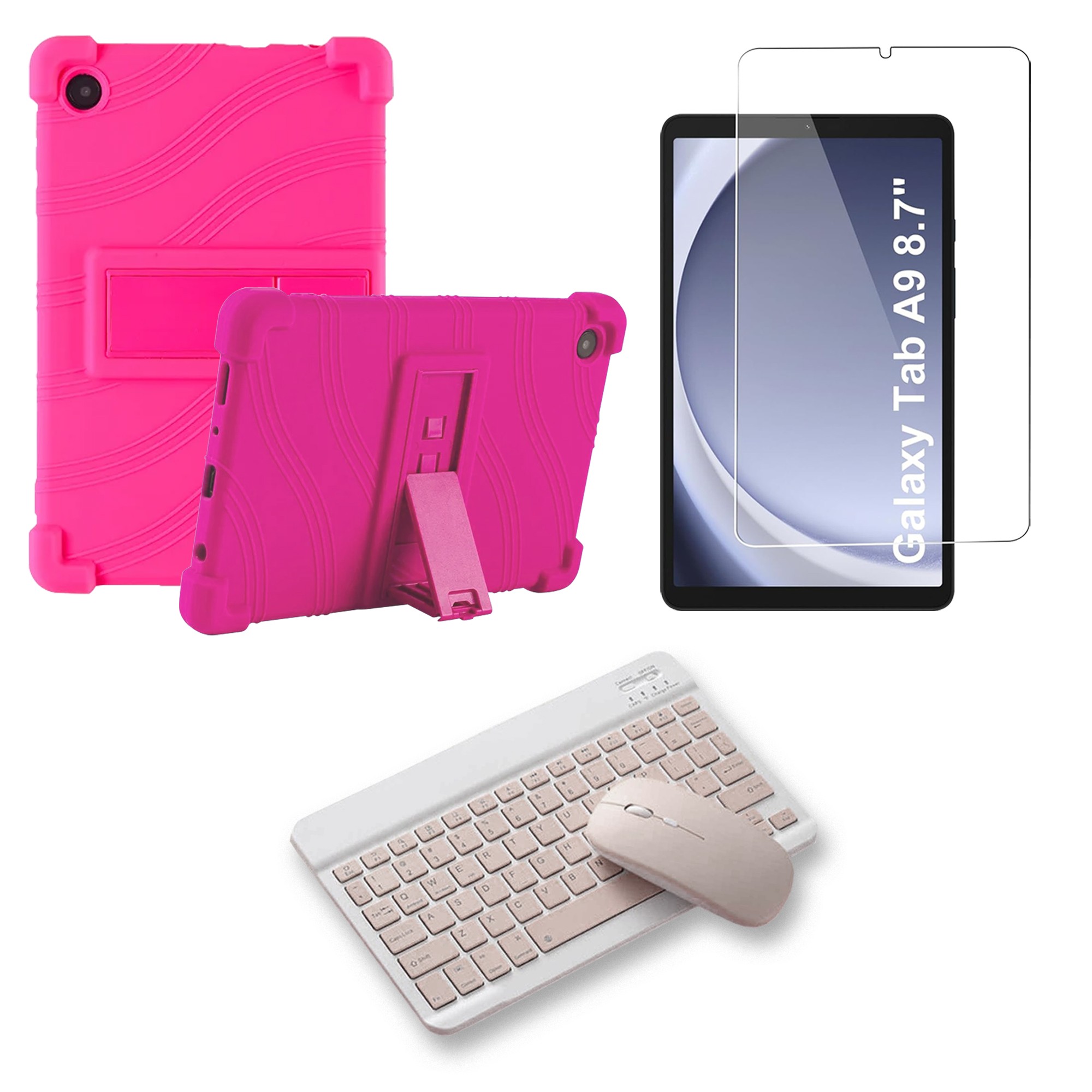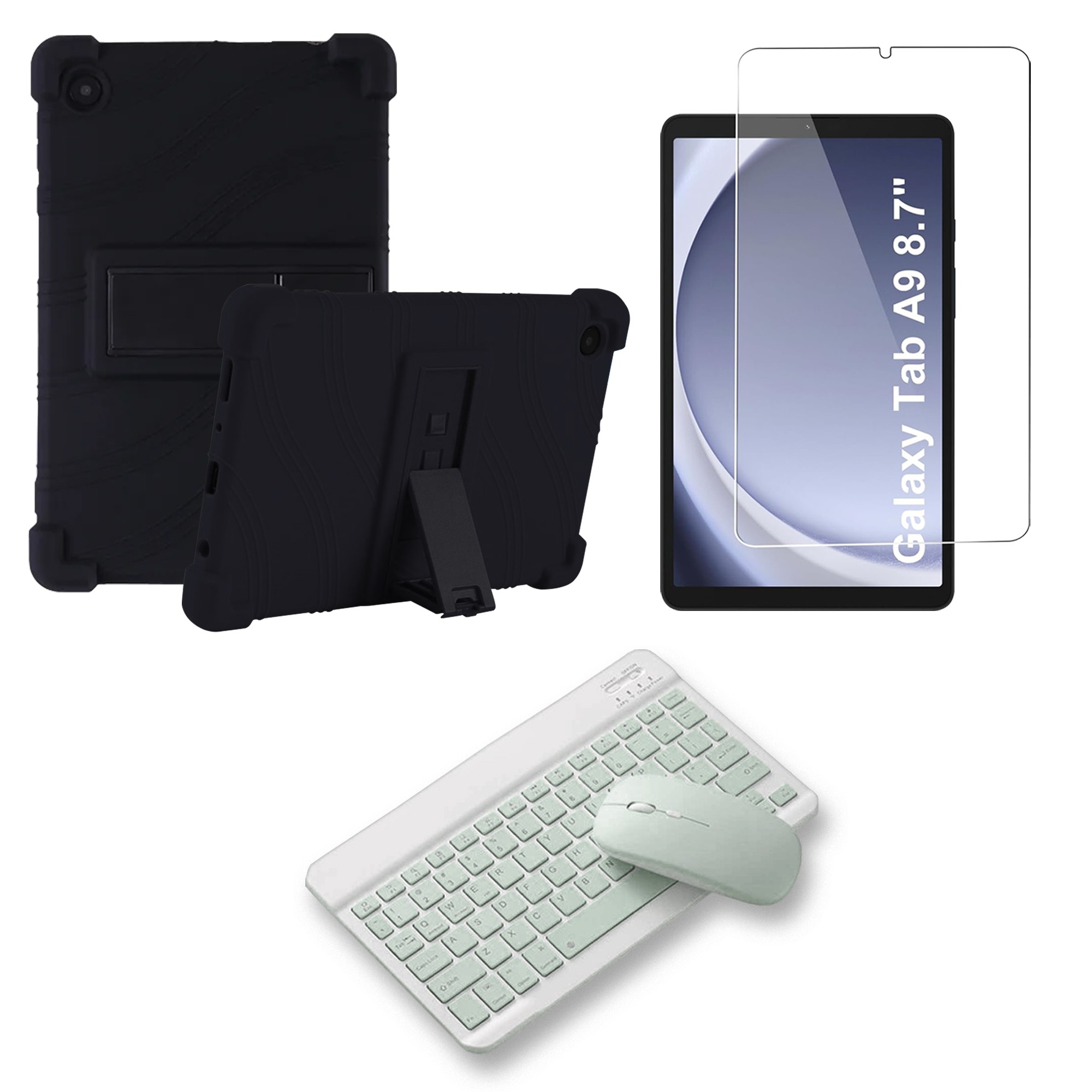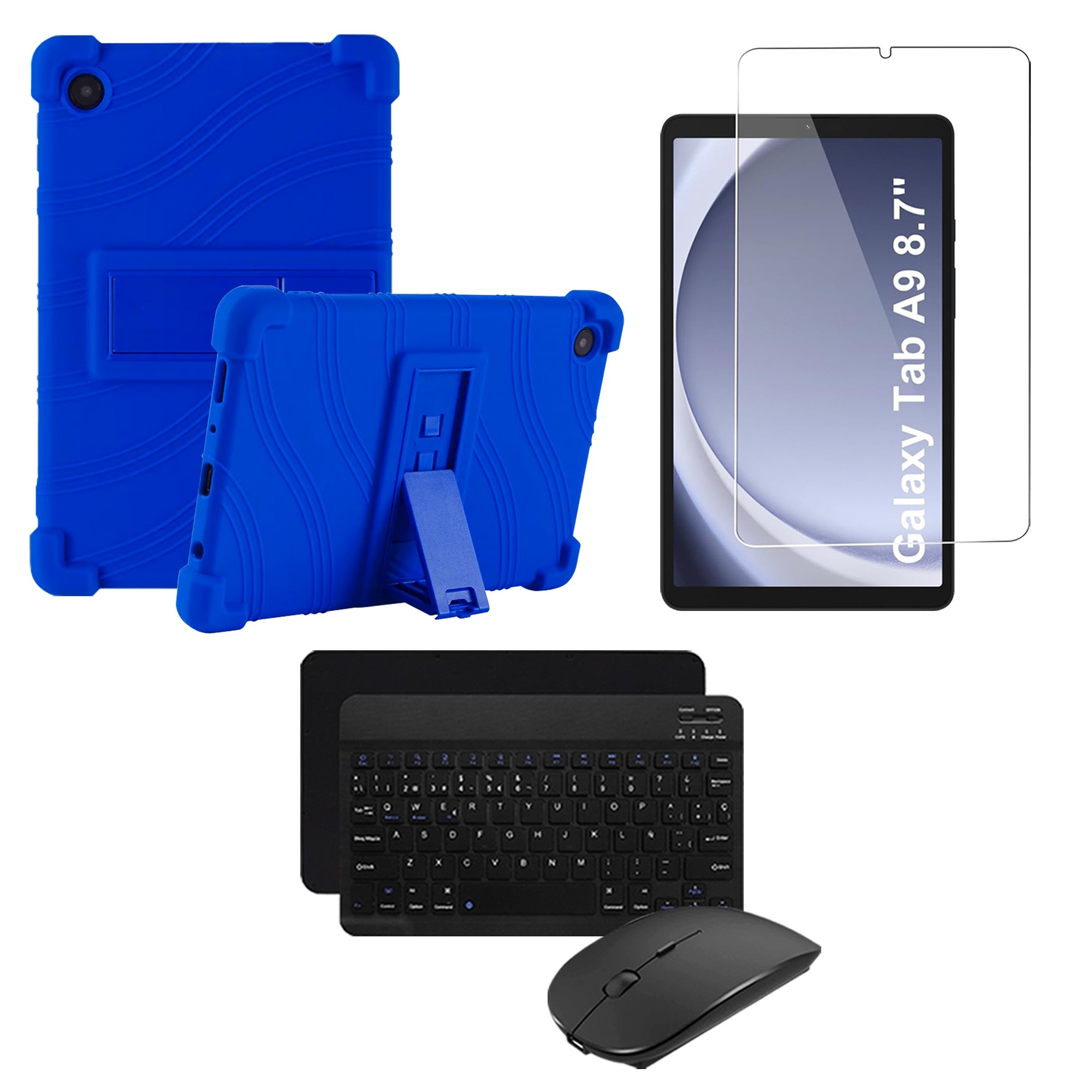 Kit Vidrio templado + Estuche Protector Goma + Teclado Bluetooth Tablet Samsung Galaxy Tab A9 8.7 Pulgadas SM-X110 / X115