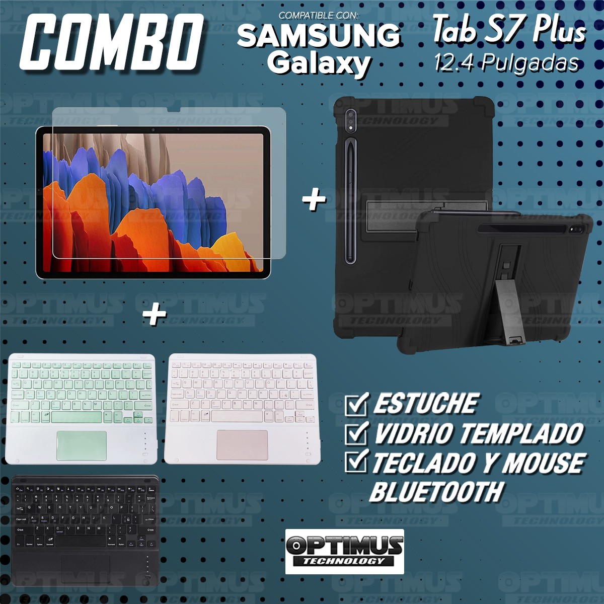 Los ¡Nuevos Kits de Estuche + Vidrio + Teclado + Mouse Touchpad Bluetooth de OPTIMUS™ Le brindan a tu Tablet una alta protección y funcionalidad completa!