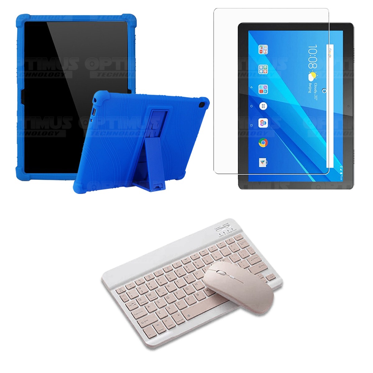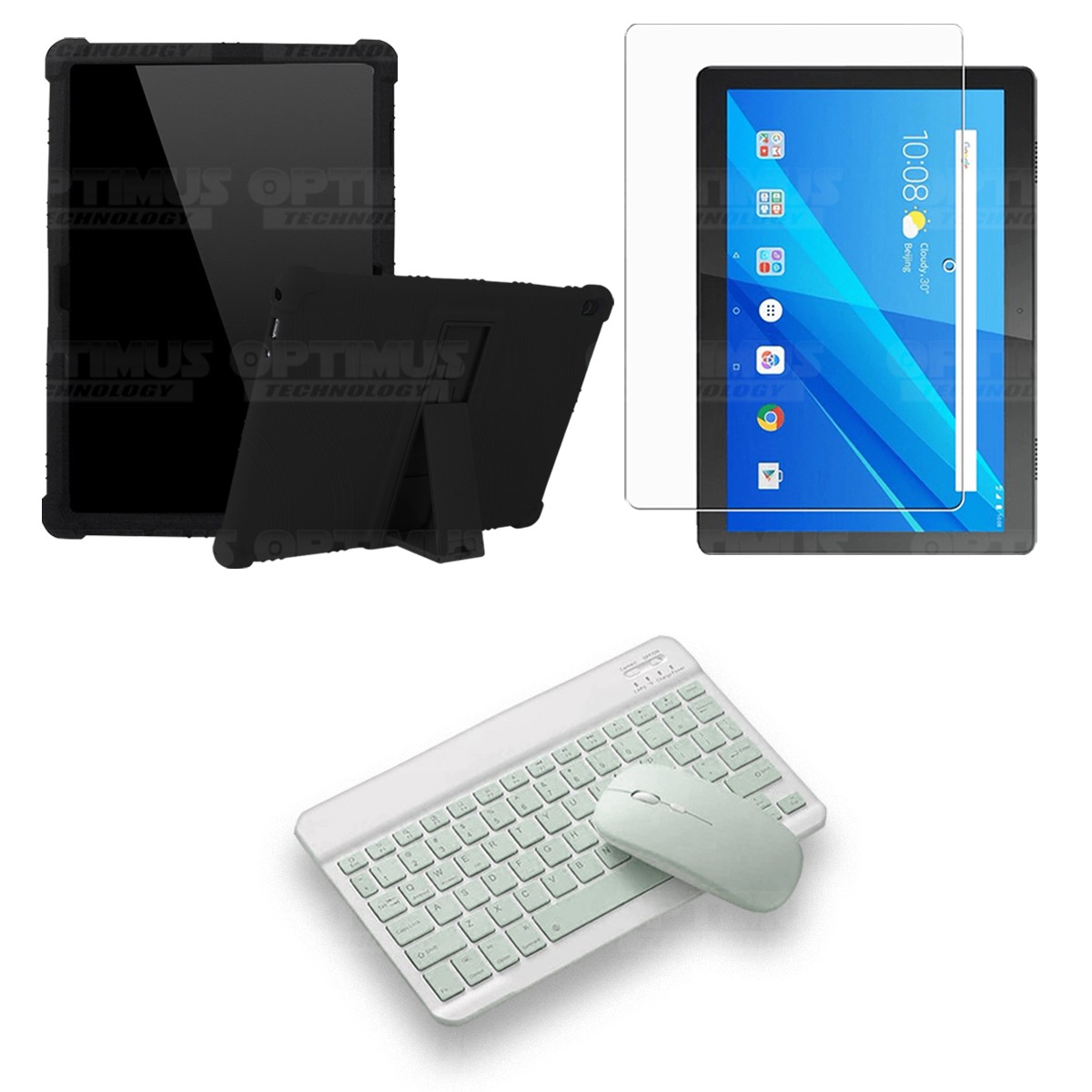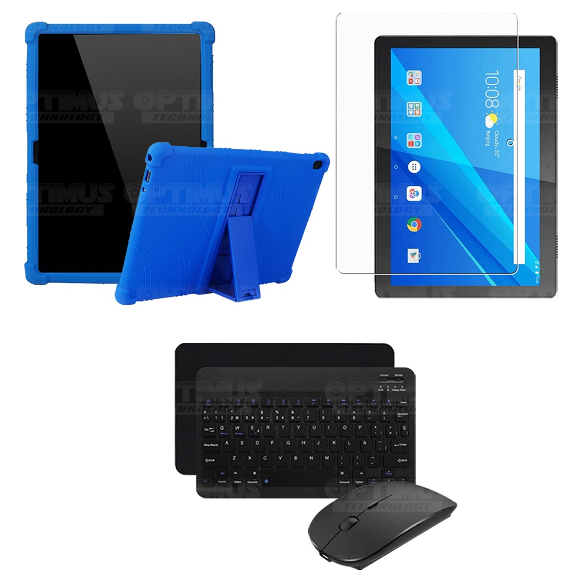 Kit Vidrio templado + Estuche Protector Goma + Teclado y Mouse Bluetooth para Tablet Lenovo Tab M10 Tb-x505f