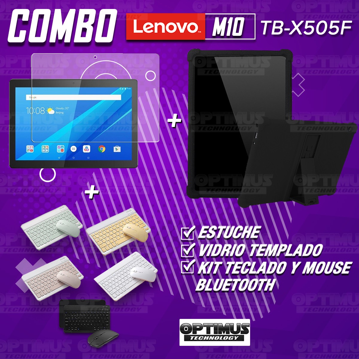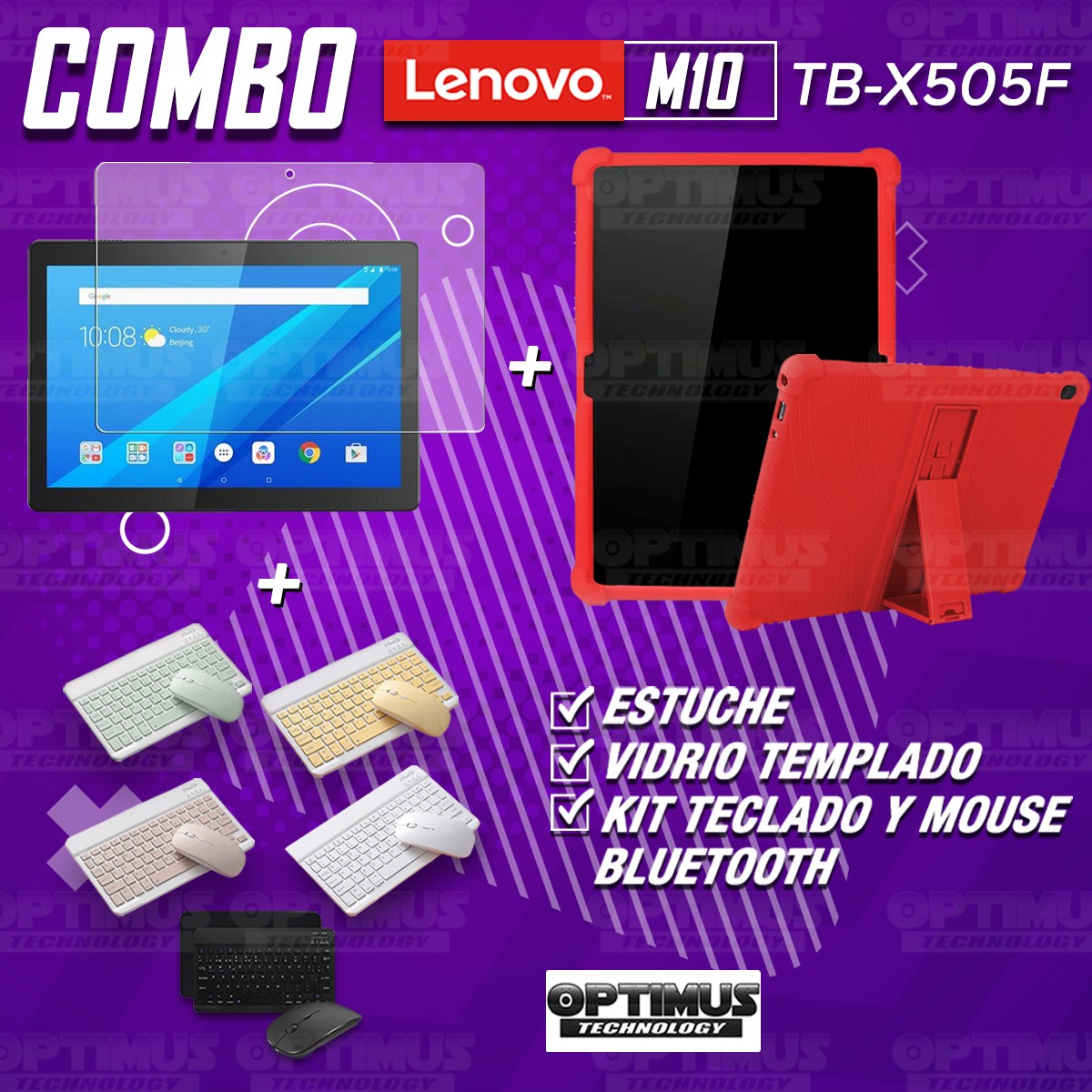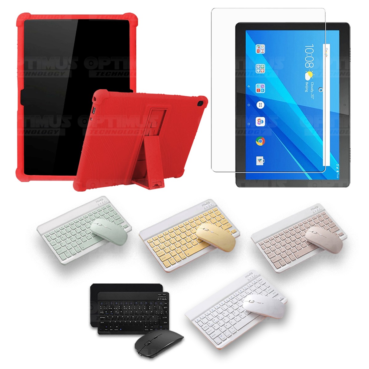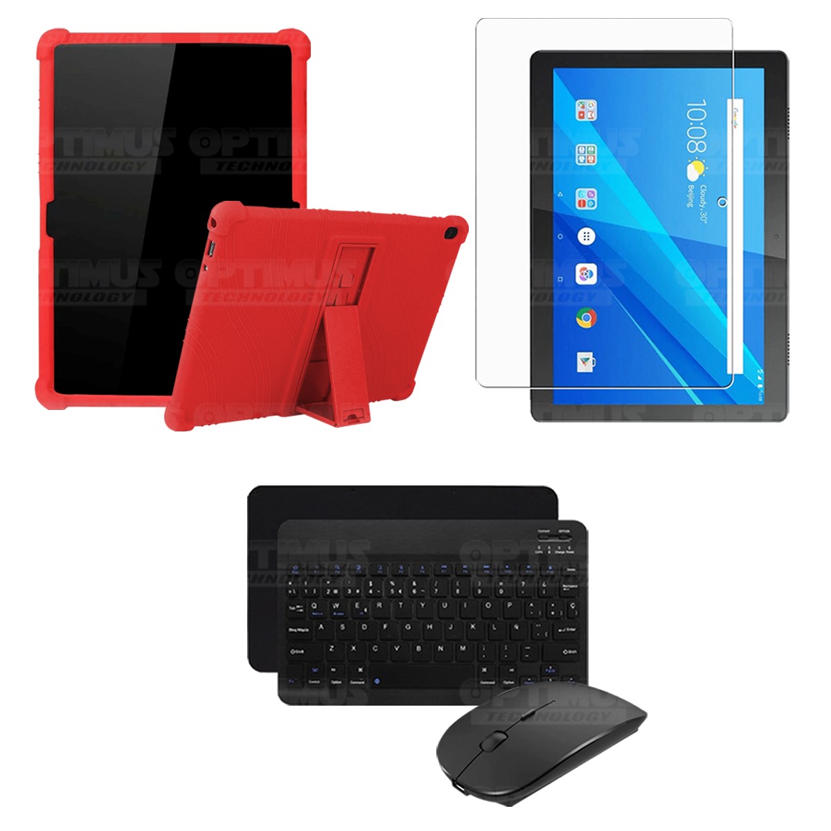 Los ¡Nuevos Kits de Estuche + Vidrio + Teclado + Mouse Bluetooth de OPTIMUS™ Le brindan a tu Tablet una alta protección y funcionalidad completa!