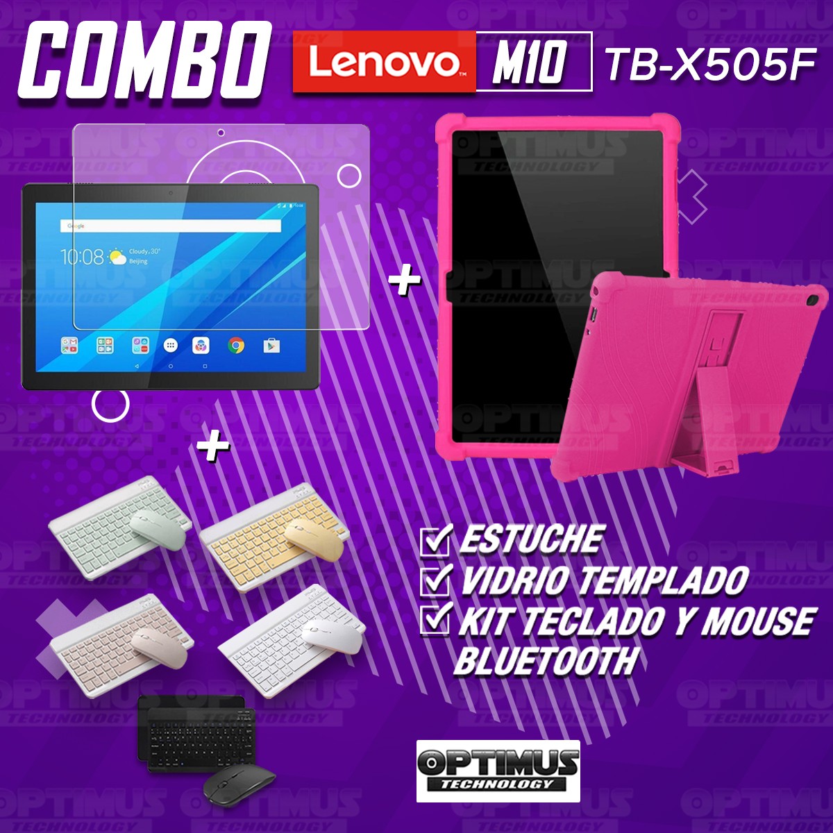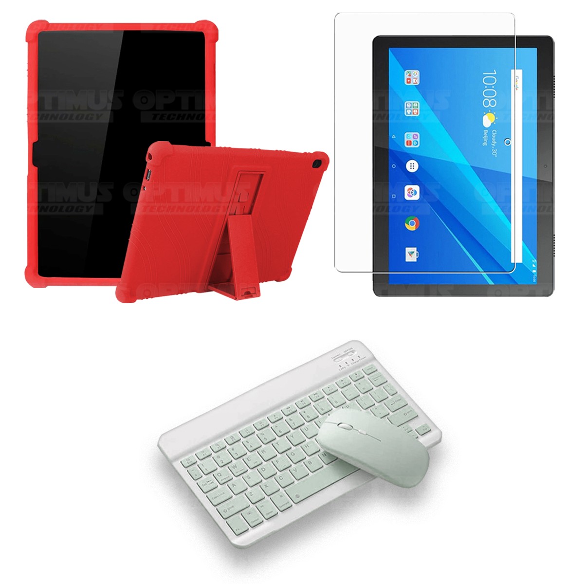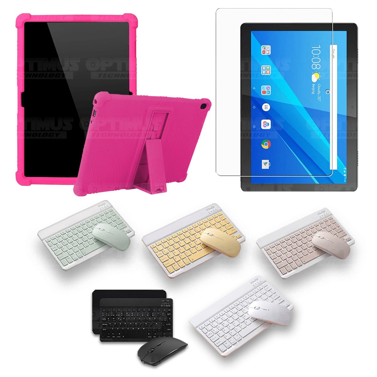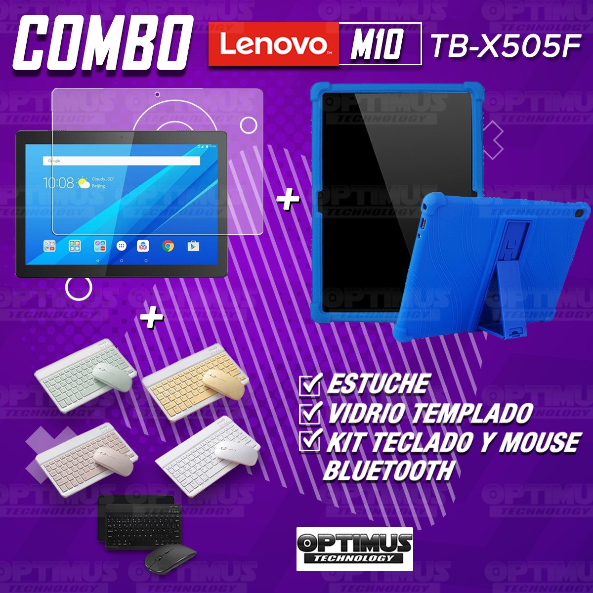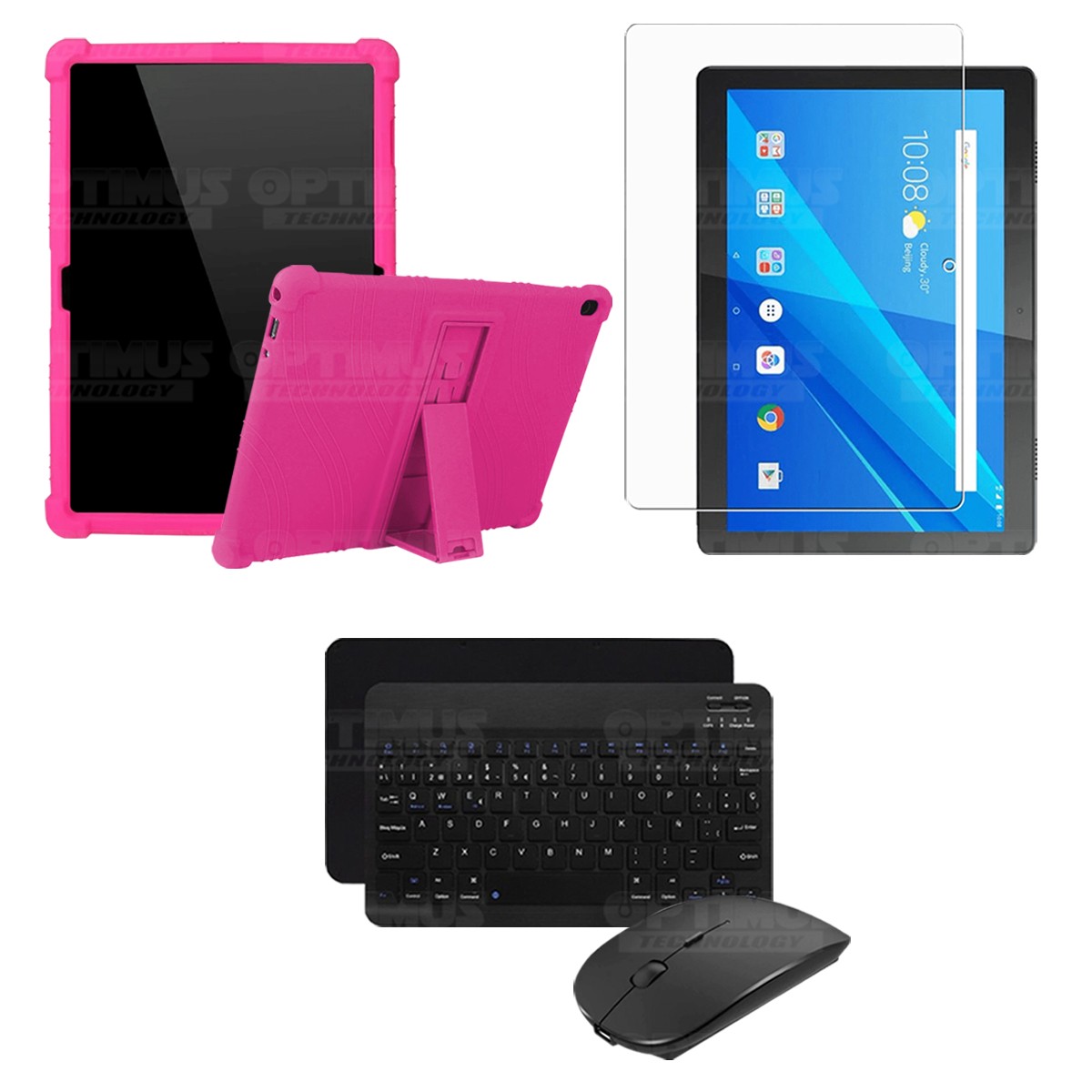 Los ¡Nuevos Kits de Estuche + Vidrio + Teclado + Mouse Bluetooth de OPTIMUS™ Le brindan a tu Tablet una alta protección y funcionalidad completa!