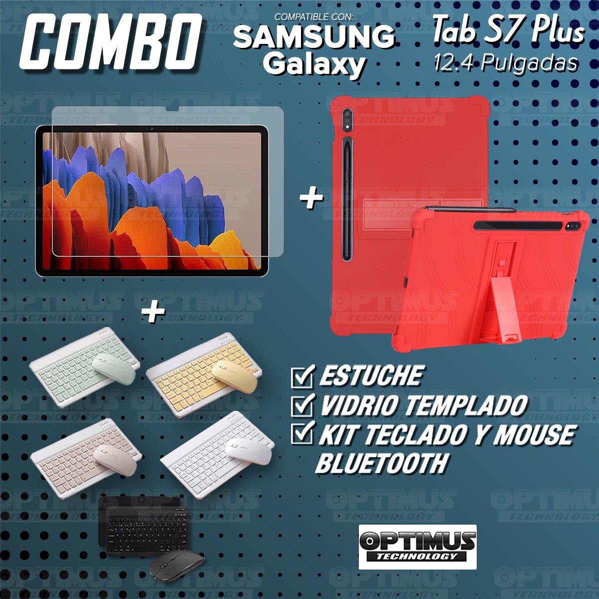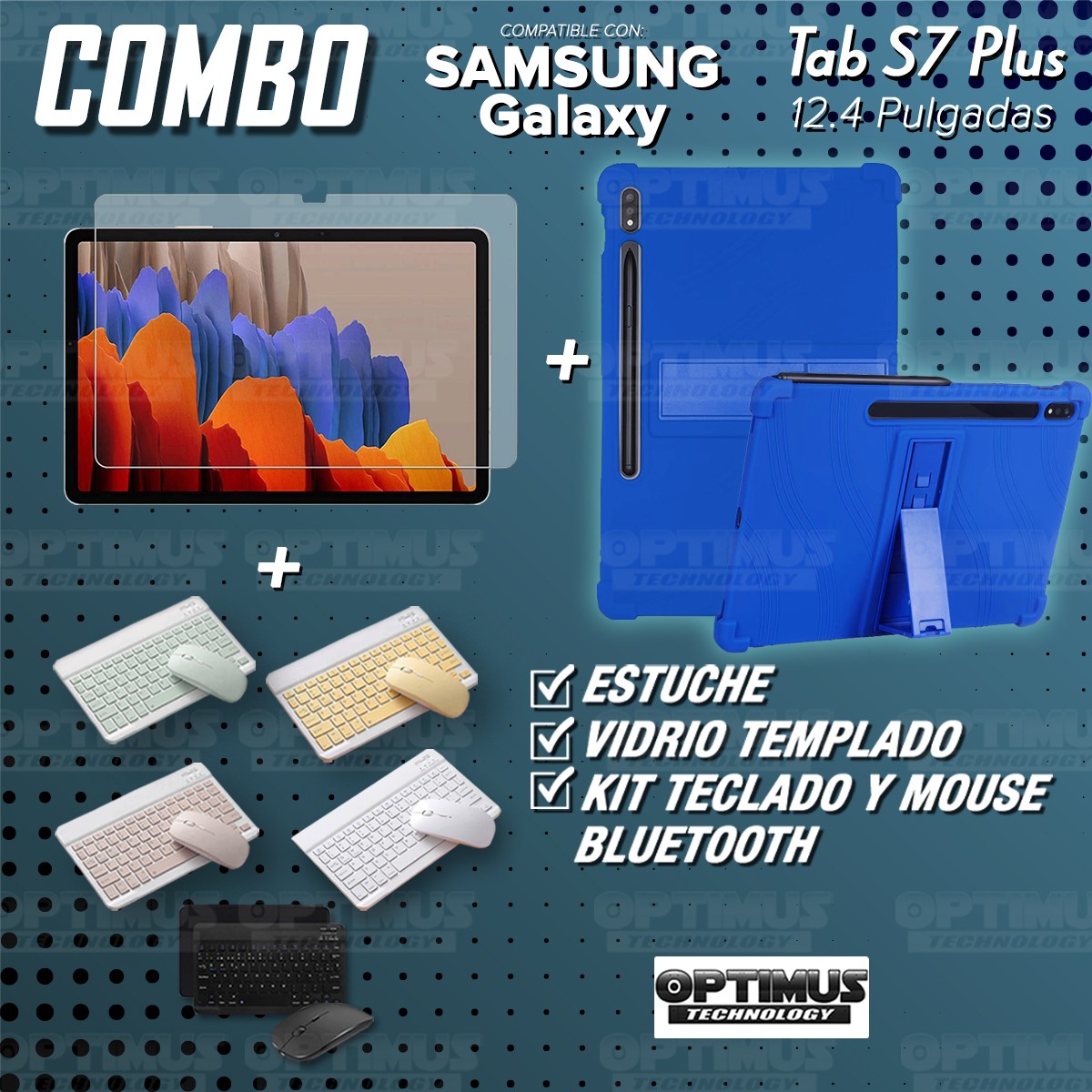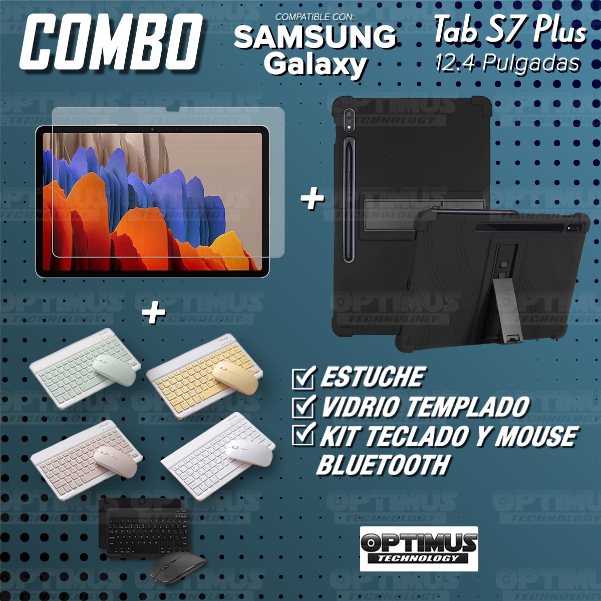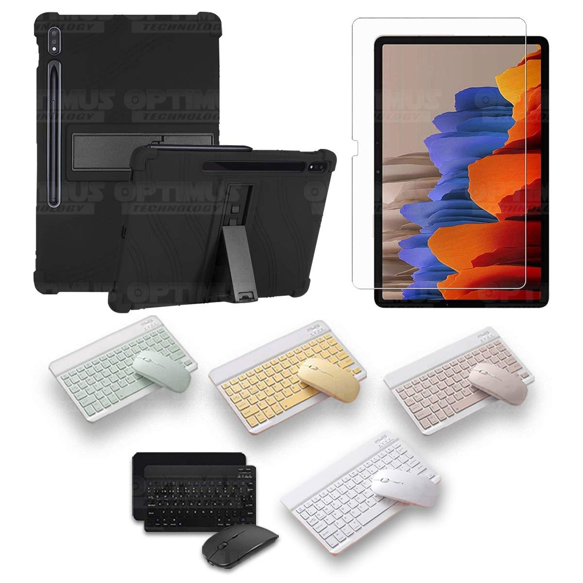 Los ¡Nuevos Kits de Estuche + Vidrio + Teclado + Mouse Bluetooth de OPTIMUS™ Le brindan a tu Tablet una alta protección y funcionalidad completa!