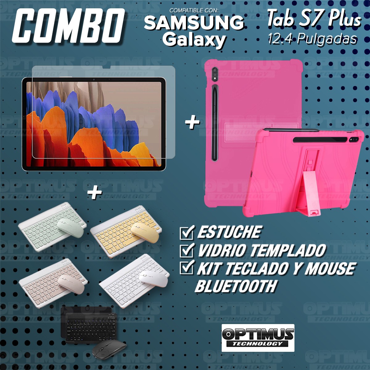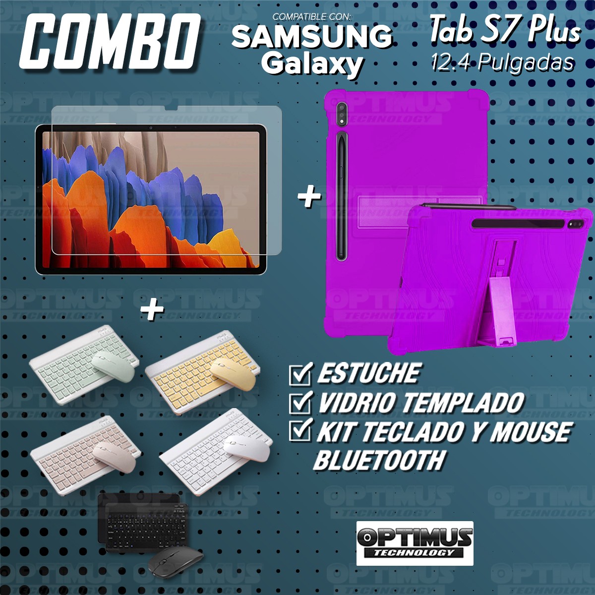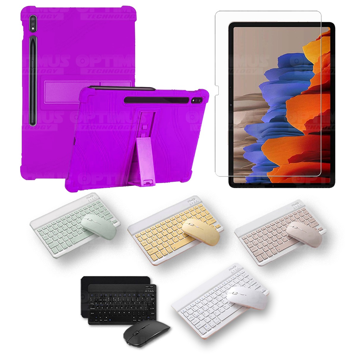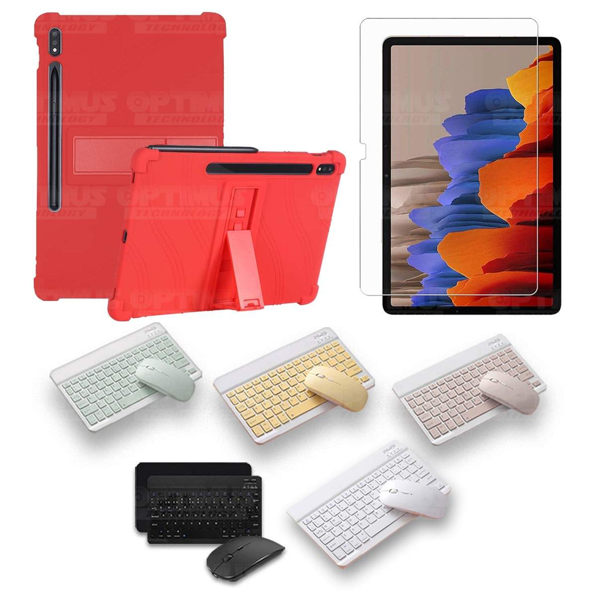 Los ¡Nuevos Kits de Estuche + Vidrio + Teclado + Mouse Bluetooth de OPTIMUS™ Le brindan a tu Tablet una alta protección y funcionalidad completa!