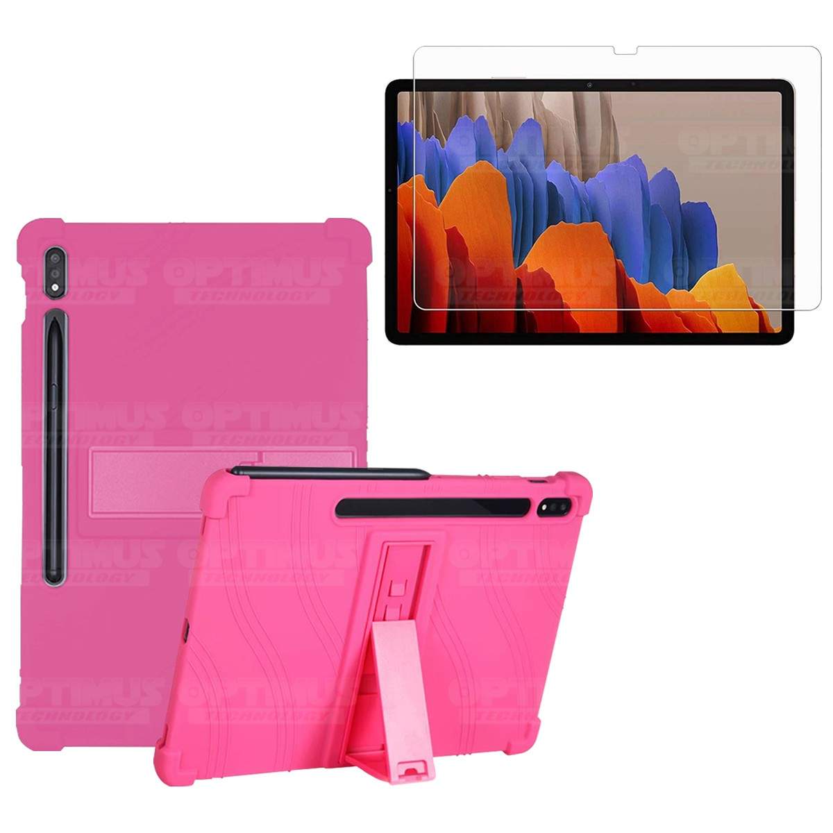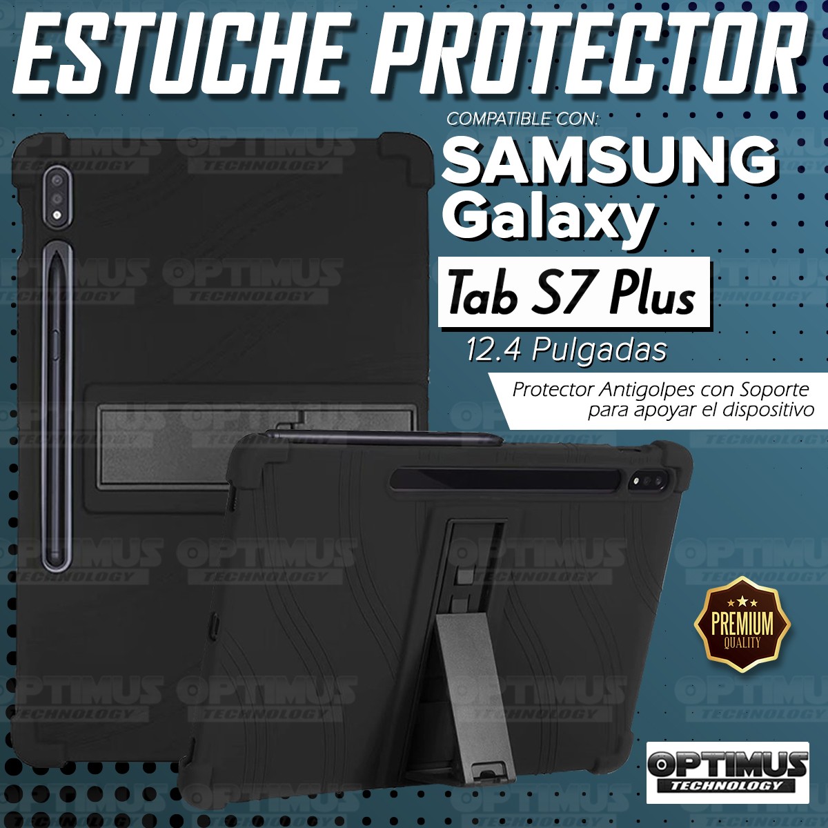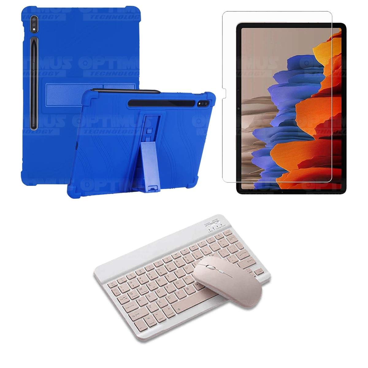 Kit Vidrio templado + Estuche Protector Goma + Teclado y Mouse Bluetooth para Tablet Samsung Galaxy Tab S7 Plus 12.4 Pulgadas