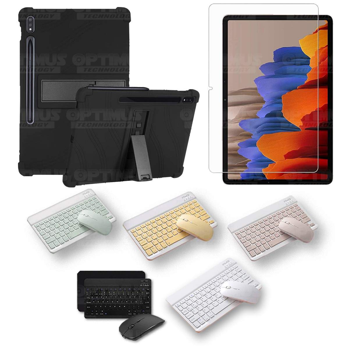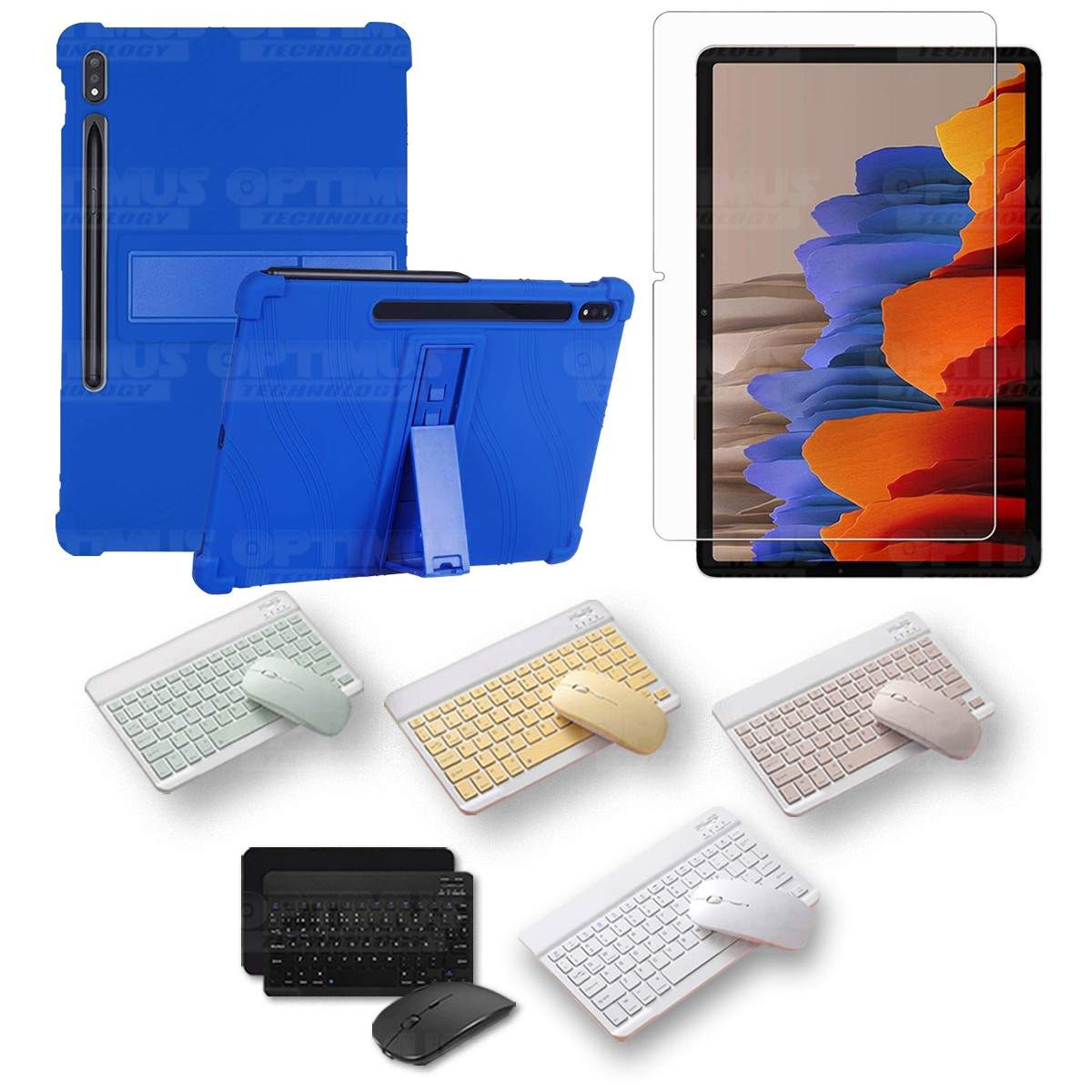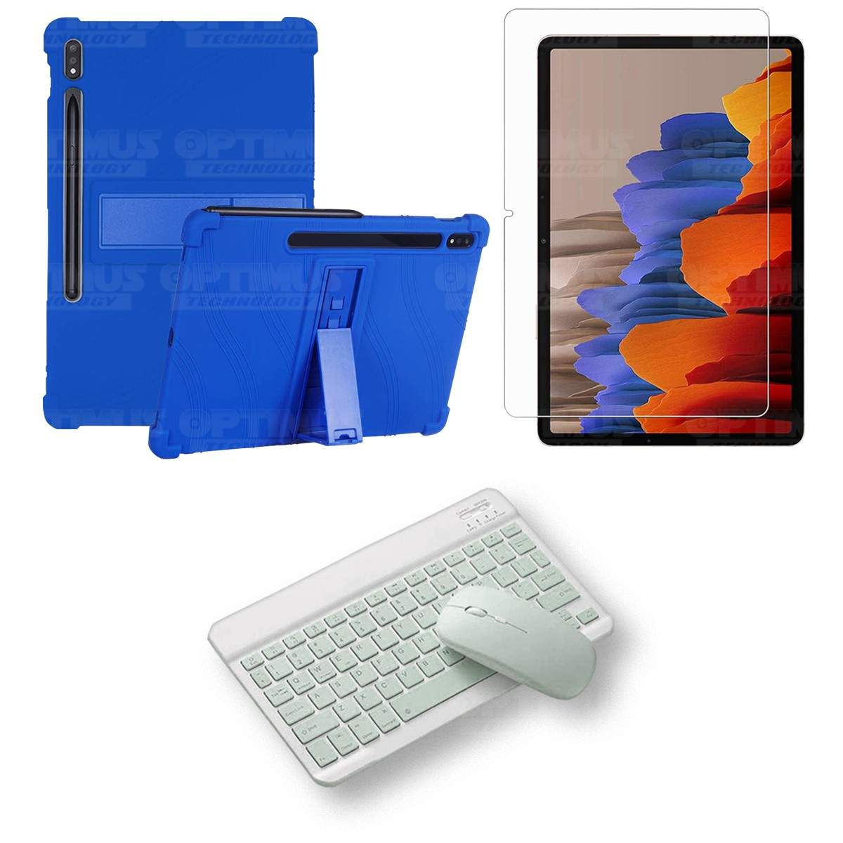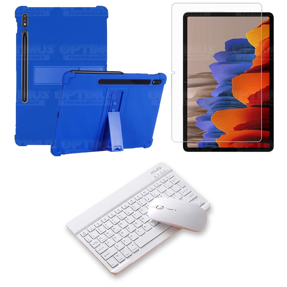 Kit Vidrio templado + Estuche Protector Goma + Teclado y Mouse Bluetooth para Tablet Samsung Galaxy Tab S7 Wifi 11 Pulgadas
