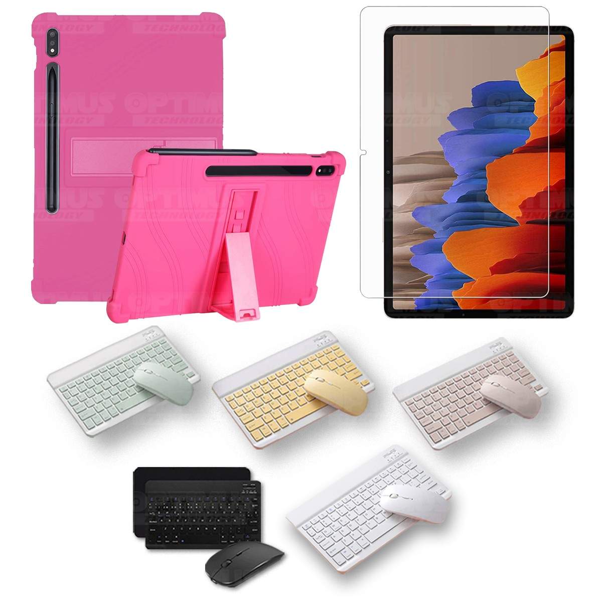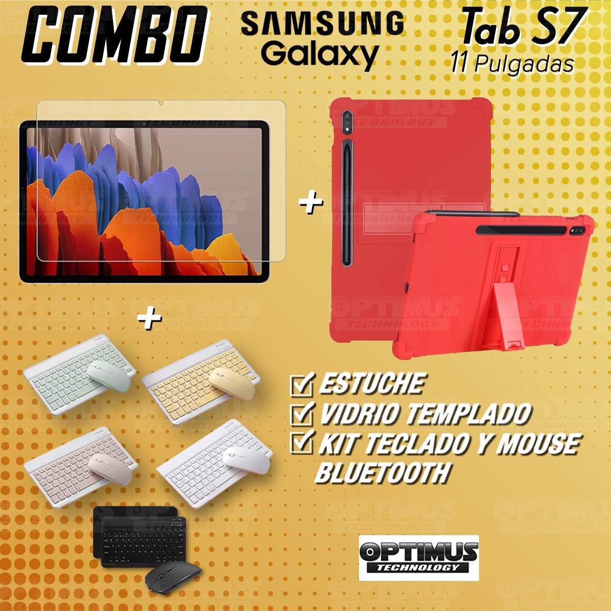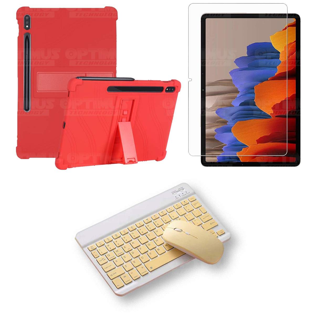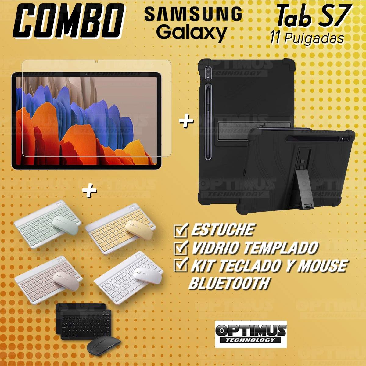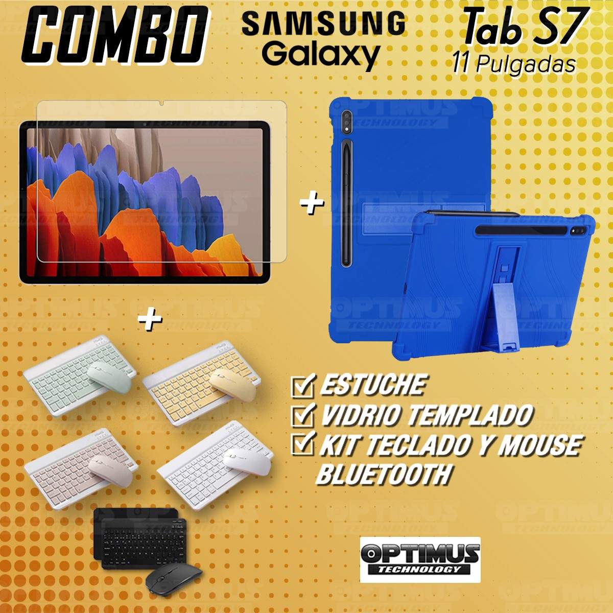 Kit Vidrio templado + Estuche Protector Goma + Teclado y Mouse Bluetooth para Tablet Samsung Galaxy Tab S7 Wifi 11 Pulgadas