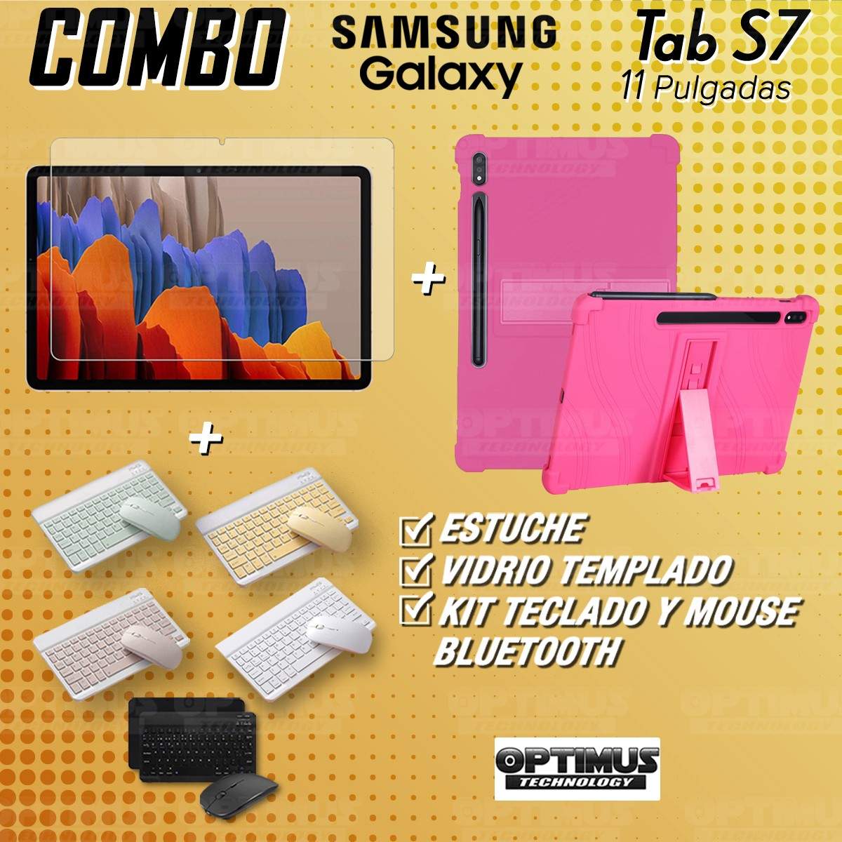 Los ¡Nuevos Kits de Estuche + Vidrio + Teclado + Mouse Bluetooth de OPTIMUS™ Le brindan a tu Tablet una alta protección y funcionalidad completa!