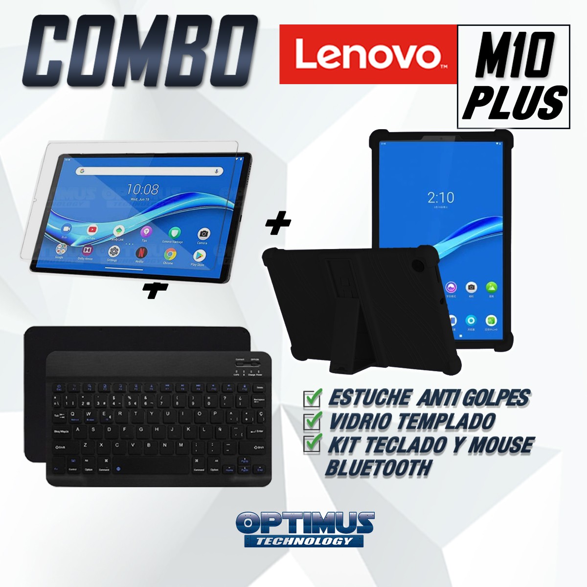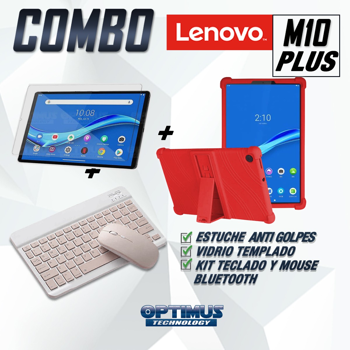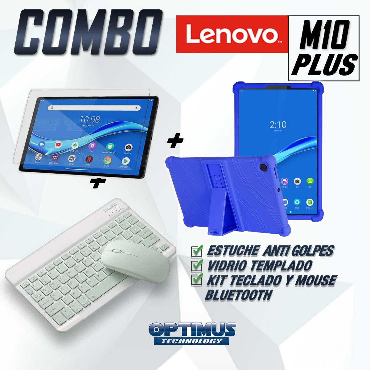 Los ¡Nuevos Kits de Estuche + Vidrio + Teclado + Mouse Bluetooth de OPTIMUS™ Le brindan a tu Tablet una alta protección y funcionalidad completa!