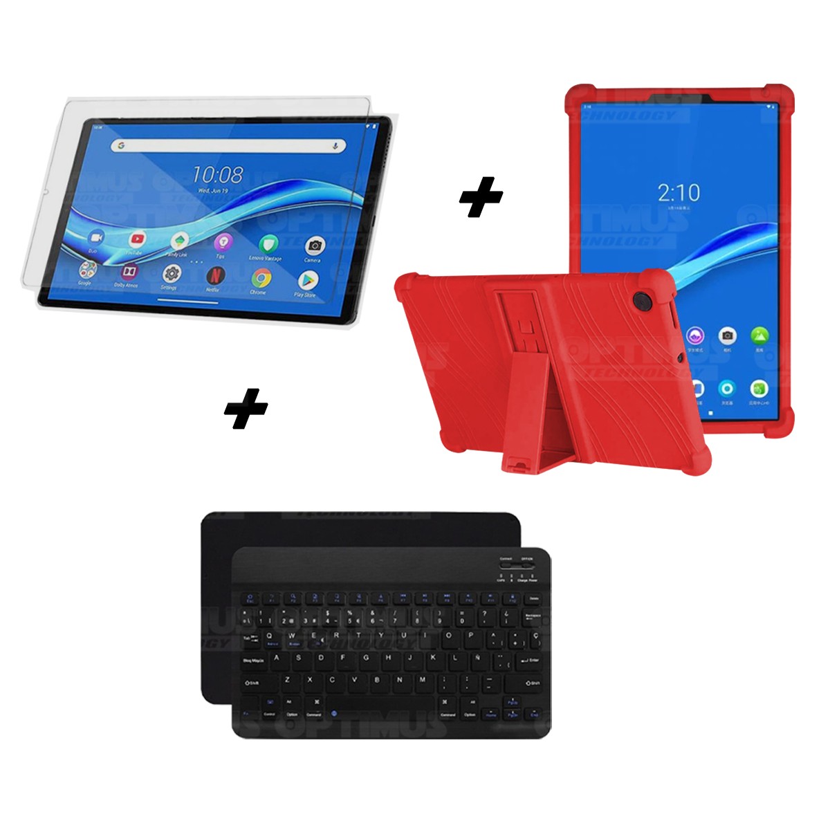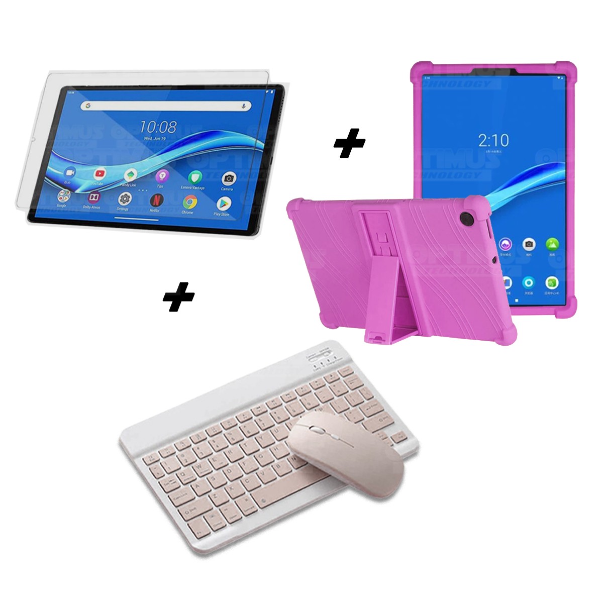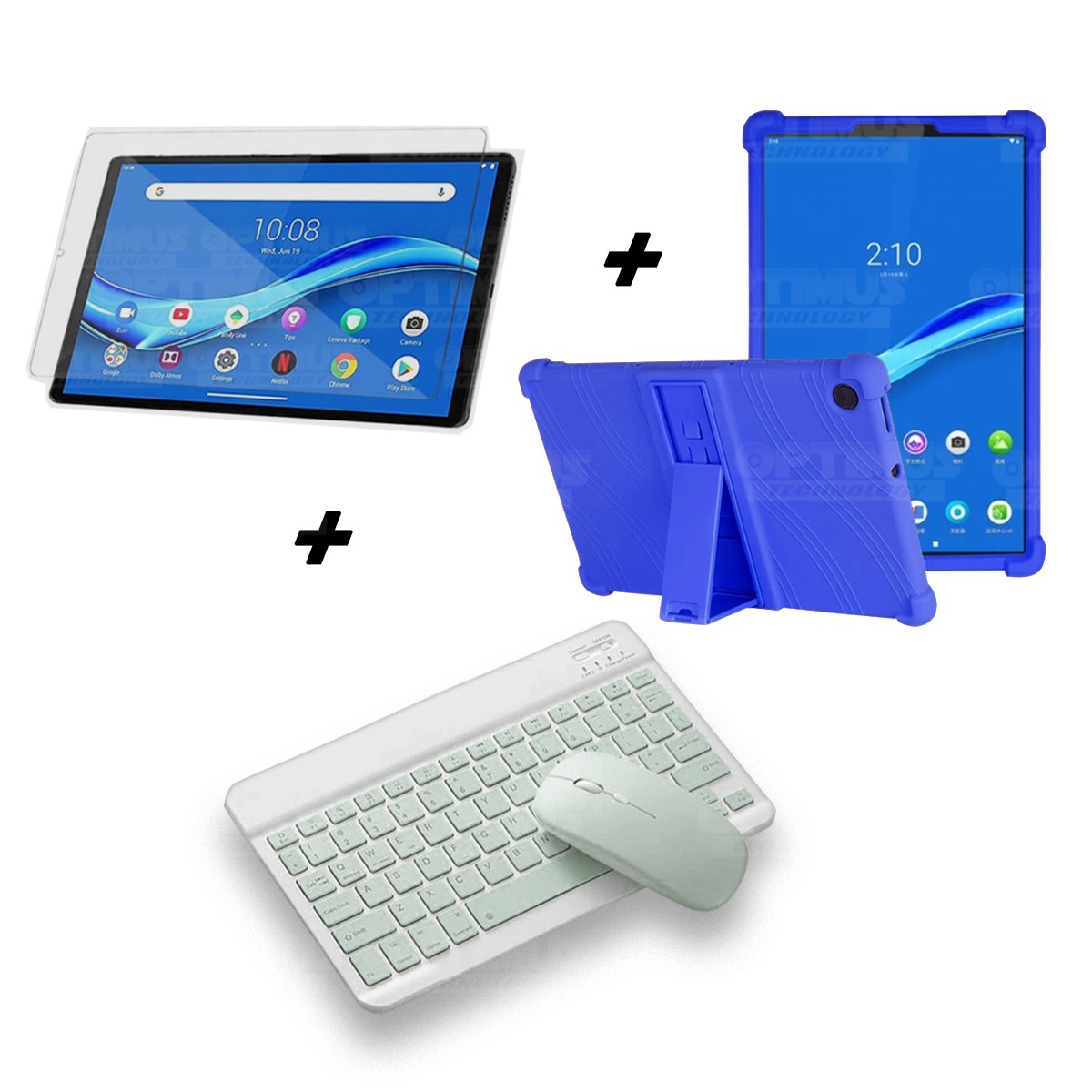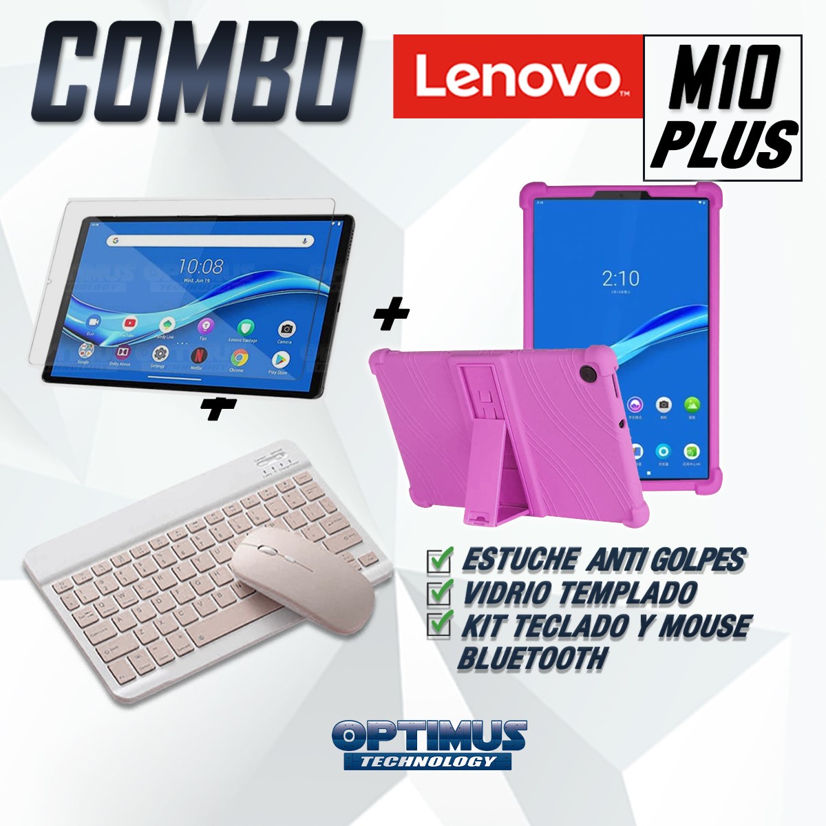 Los ¡Nuevos Kits de Estuche + Vidrio + Teclado + Mouse Bluetooth de OPTIMUS™ Le brindan a tu Tablet una alta protección y funcionalidad completa!