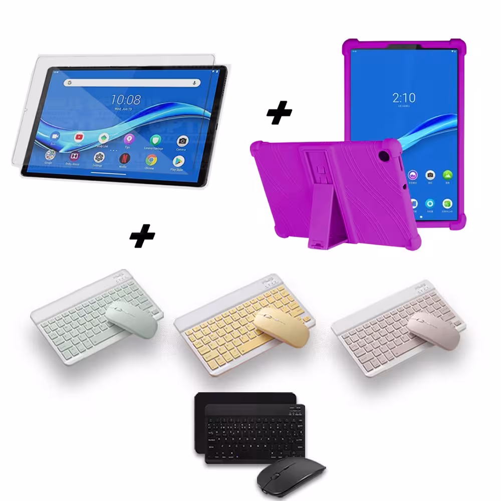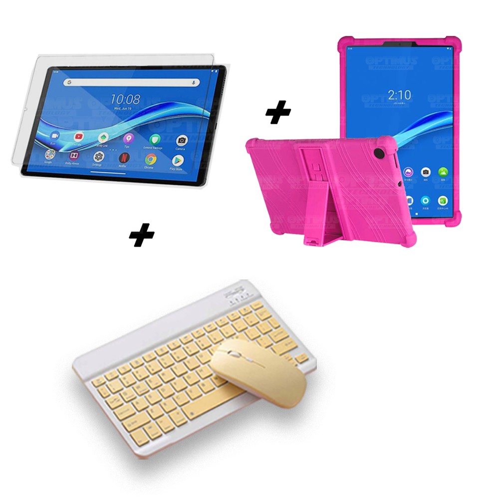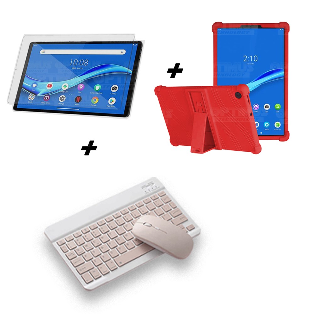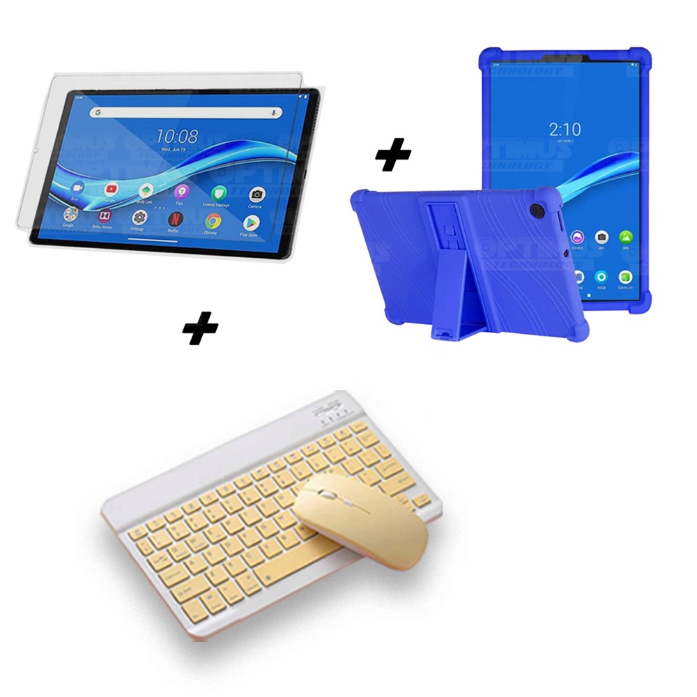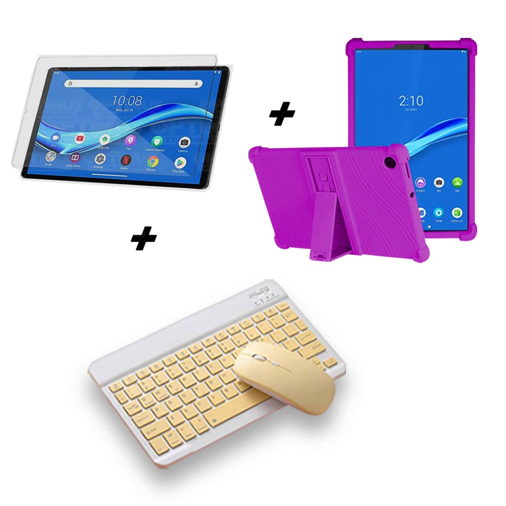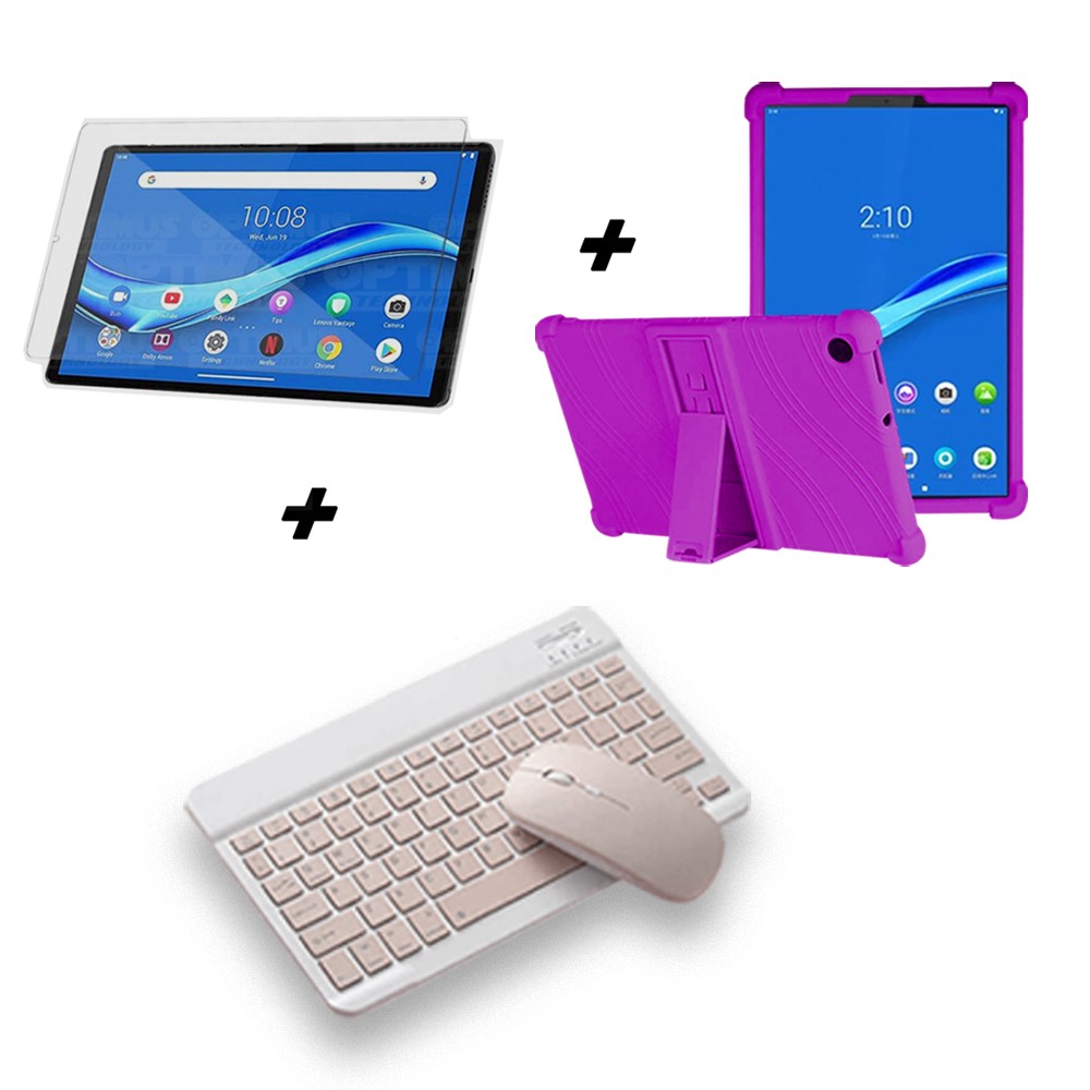 Kit Vidrio templado + Estuche Protector Goma + Teclado y Mouse Ratón Bluetooth para Tablet Lenovo M10 Plus Tb-x606f