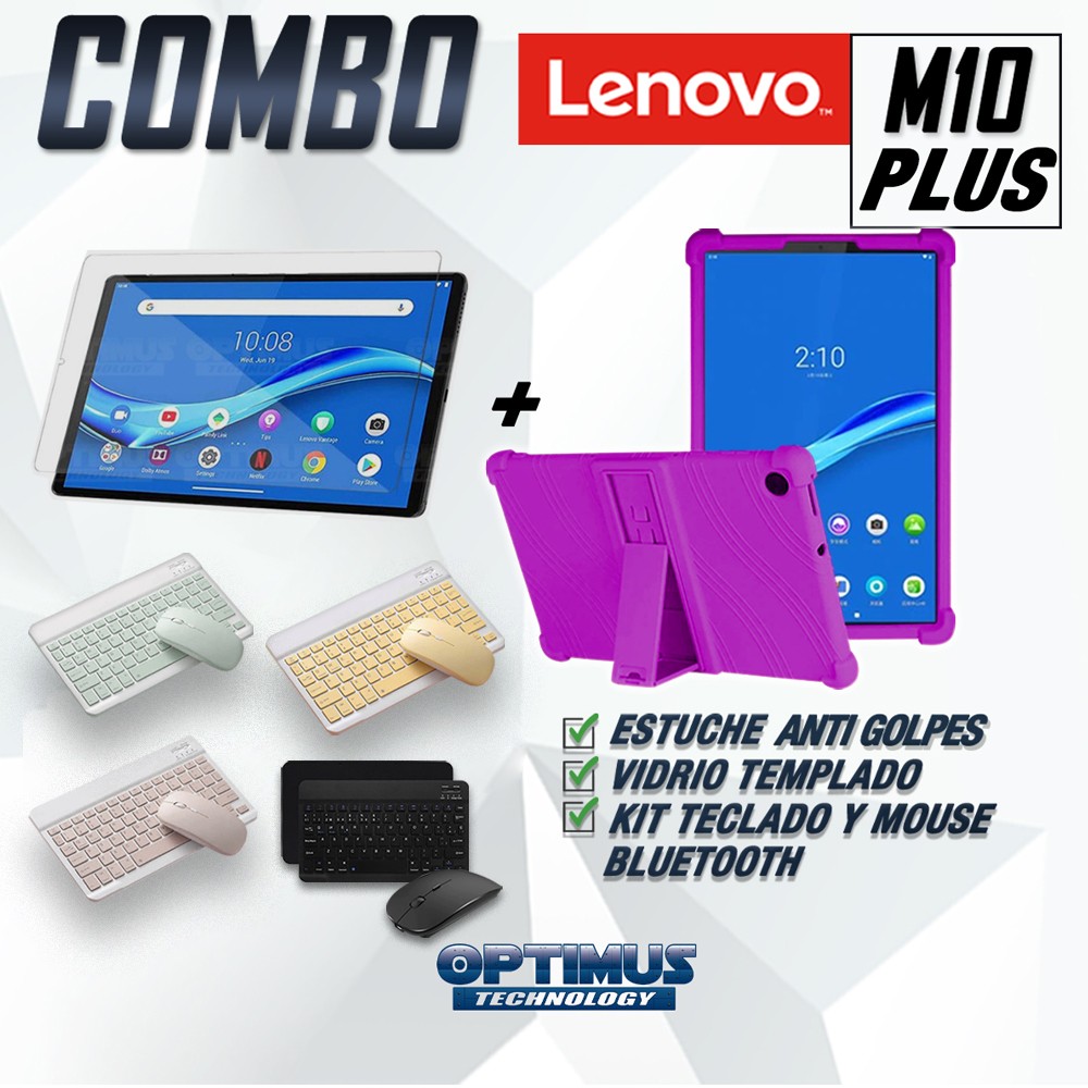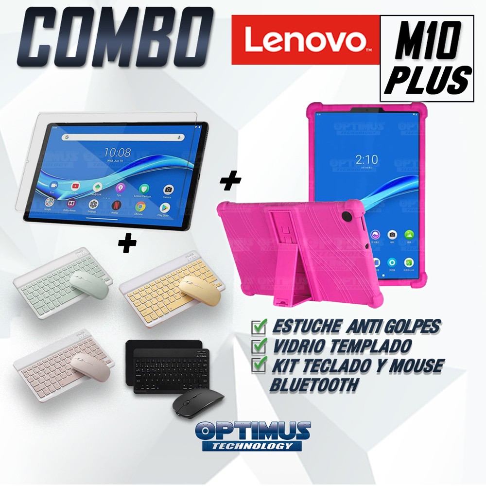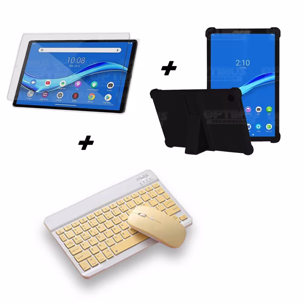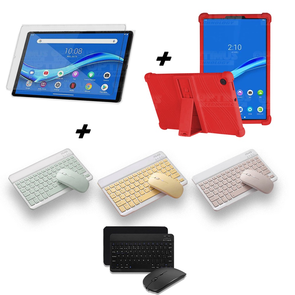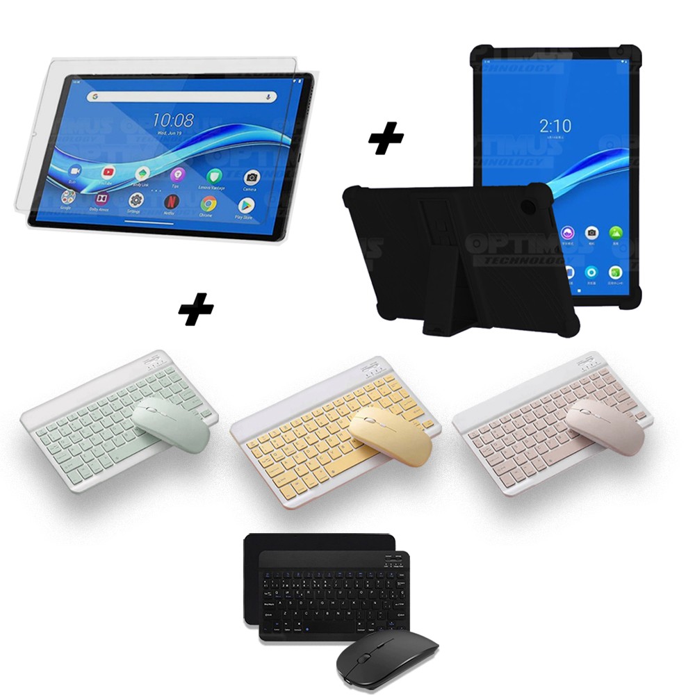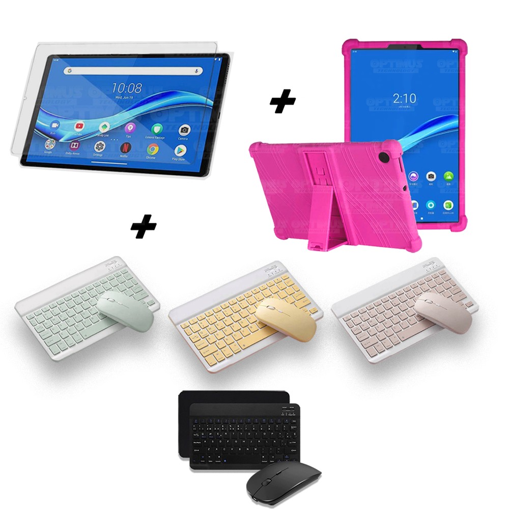 Kit Vidrio templado + Estuche Protector Goma + Teclado y Mouse Ratón Bluetooth para Tablet Lenovo M10 Plus Tb-x606f